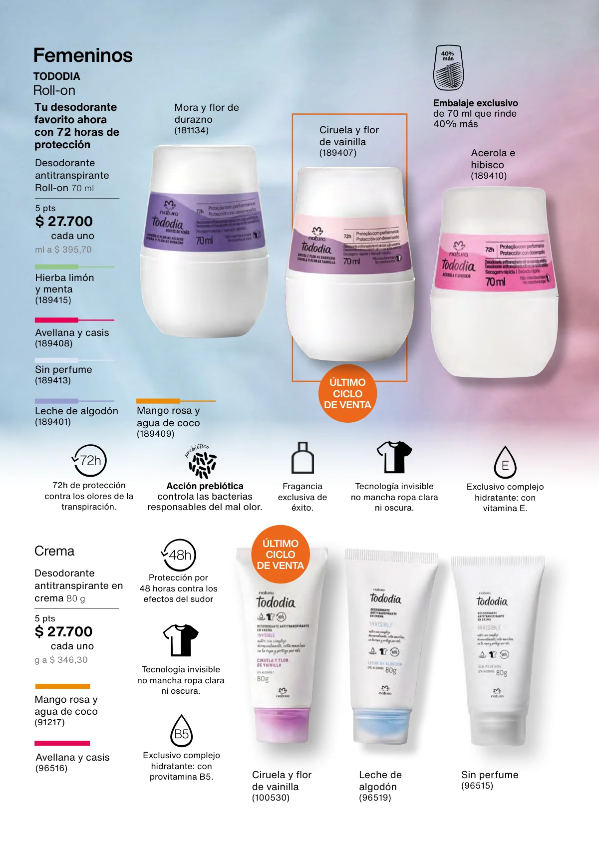 • Desodorantes antitranspirantes en crema, variadas fragancias, en presentación de 80g.