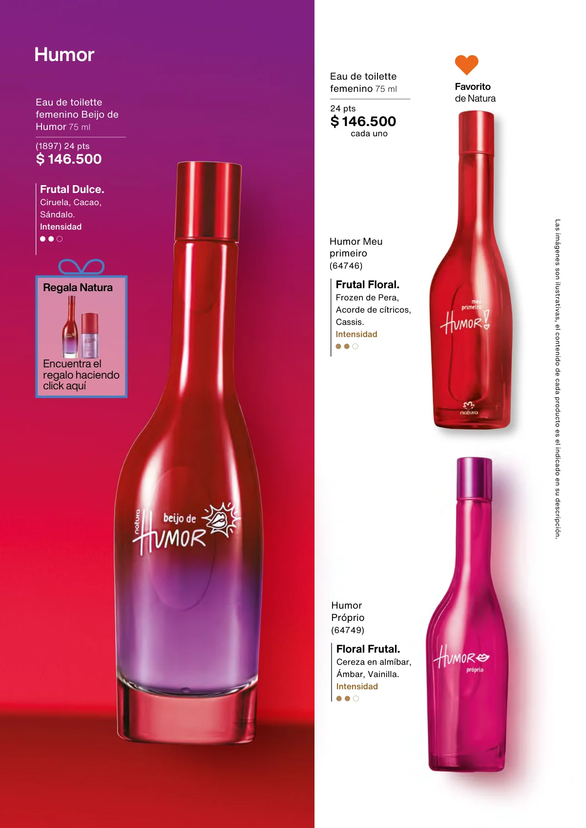• Meu primeiro Humor: Eau de toilette femenino floral, mediana intensidad de 75ml y Ekos Maracuyá de 150ml; ambas fragancias con 30% de descuento.
