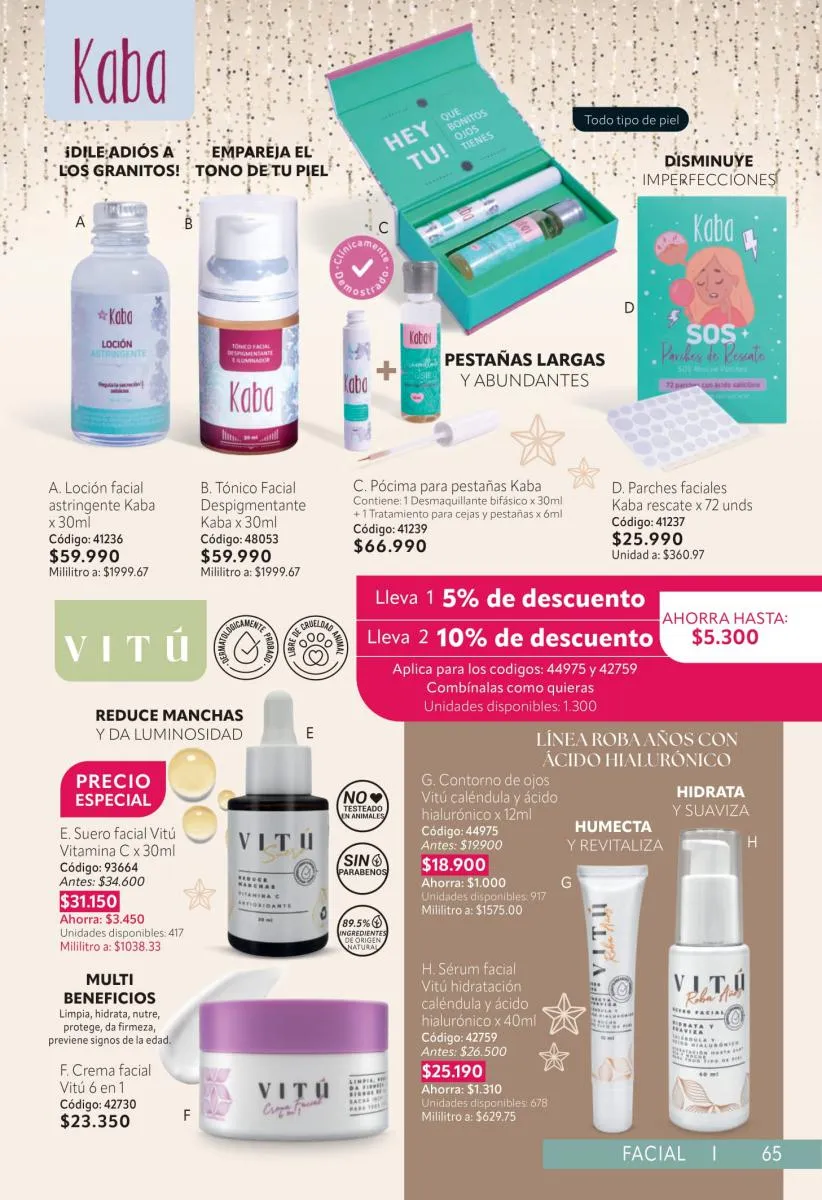No hemos olvidado lo importante de cuidar tu rostro y esta campaña de Novaventa tiene productos especiales que no debes perderte: Nude con su bronceador en gel, las cremas faciales de Teatrical son imperdibles, al igual que las de Neutrógena. Y Vitú sigue siendo líder en sérum y limpiadores y claro, maquillaje.