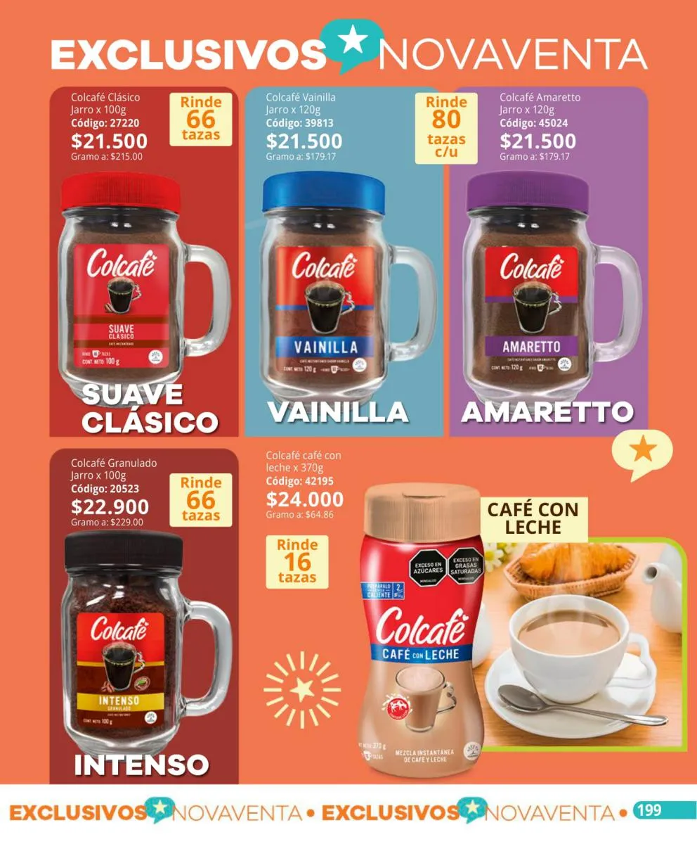 Todo para que tu familia disfrute de las exquisiteces más apreciadas en la cocina colombiana, lo tiene Novaventa. ¿El café más rico para empezar bien el día? Del de Sello Rojo, Matiz y Colcafé. El chocolate para esas tardes apacibles o para consentir a los más chicos, pues el de Corona o Choco Listo.