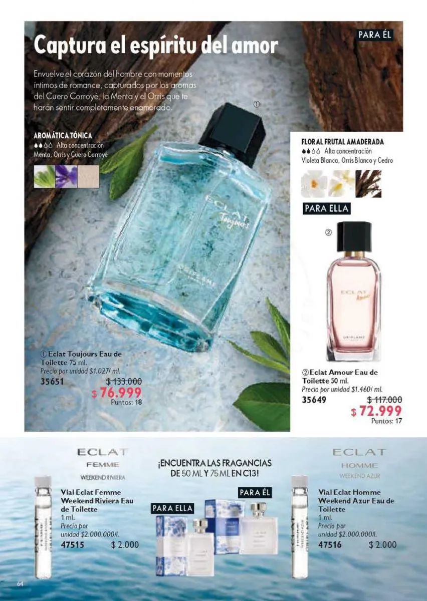 Los aromas refrescantes que te brinda el catálogo Oriflame campaña 12 2025 Colombia, evocan la libertad de las frescas aguas marinas combinadas con esencias encantadoras y elegantes.