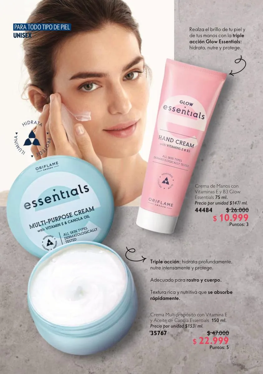 Tanto el rostro como las manos son nuestras máximas representaciones. Oriflame amaa consentirnos y por eso en esta catálogo Oriflame campaña 14 2025 Colombia trae el exfoliante y crema de manos de Milk and Honey y la crema con vitamina E de Glow Essentials.