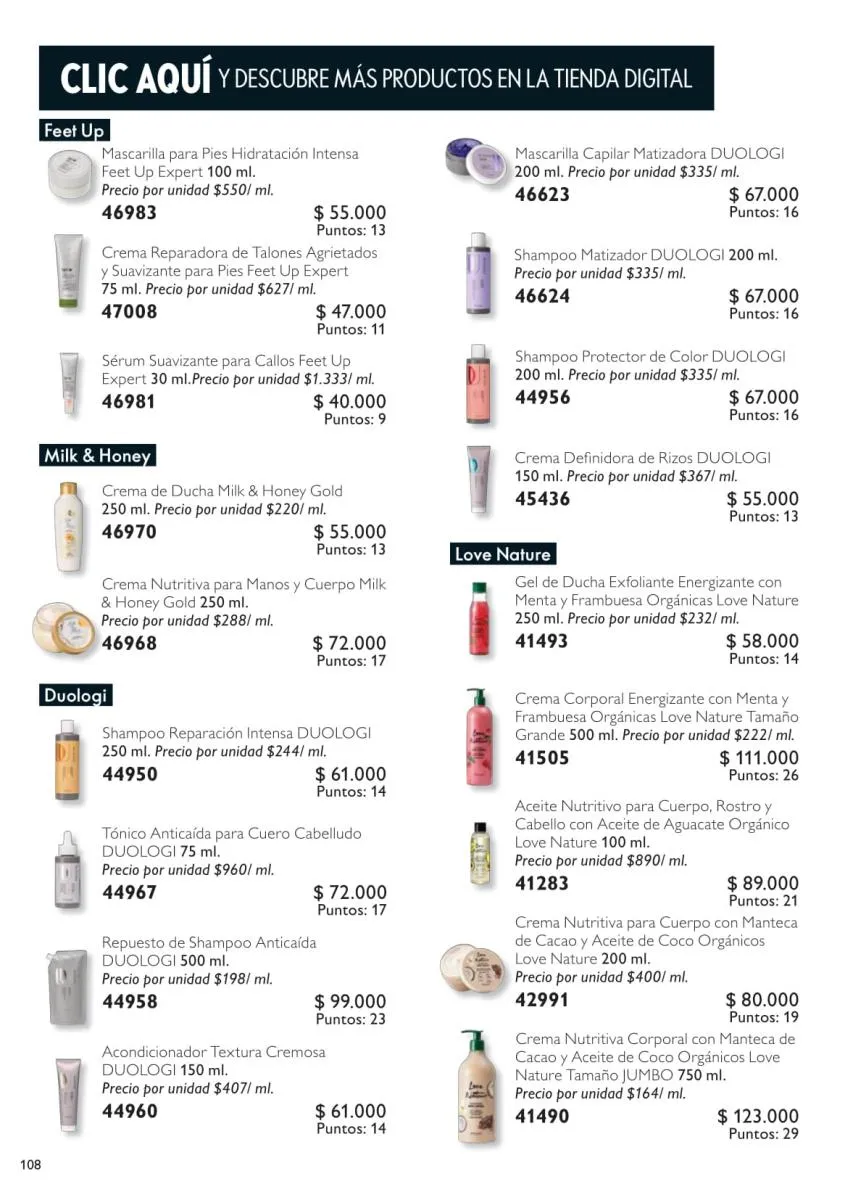Todas las líneas de cuidado corporal y capilar de esta catálogo Oriflame campaña 15 2025, están a precios Black Offers. Para el cabello tenemos: Hairx y Milk & Honey con sus fórmulas especiales de shampoo y acondicionador para fortalecer y evitar la caída del cabello.