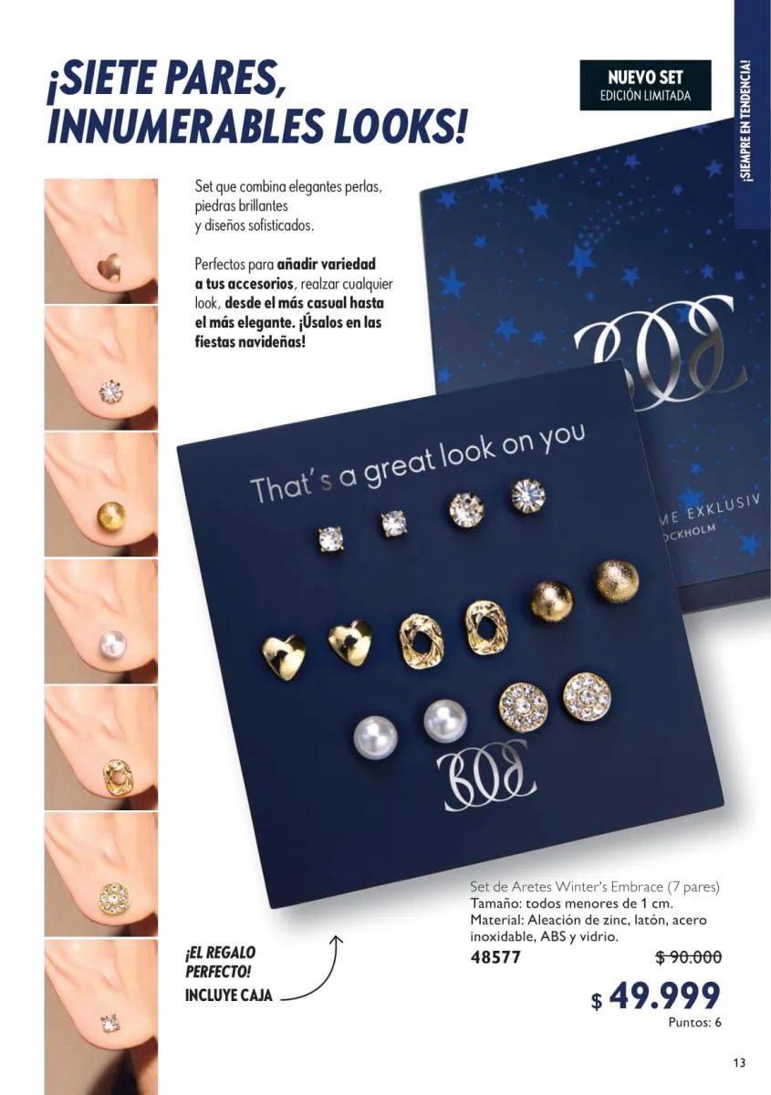 - 3 pares de aretes. Diseño glamoroso para usar en esas reuniones y fiestas o incluso para regalar en estas navidades. A un precio fantástico de $ 29,999.