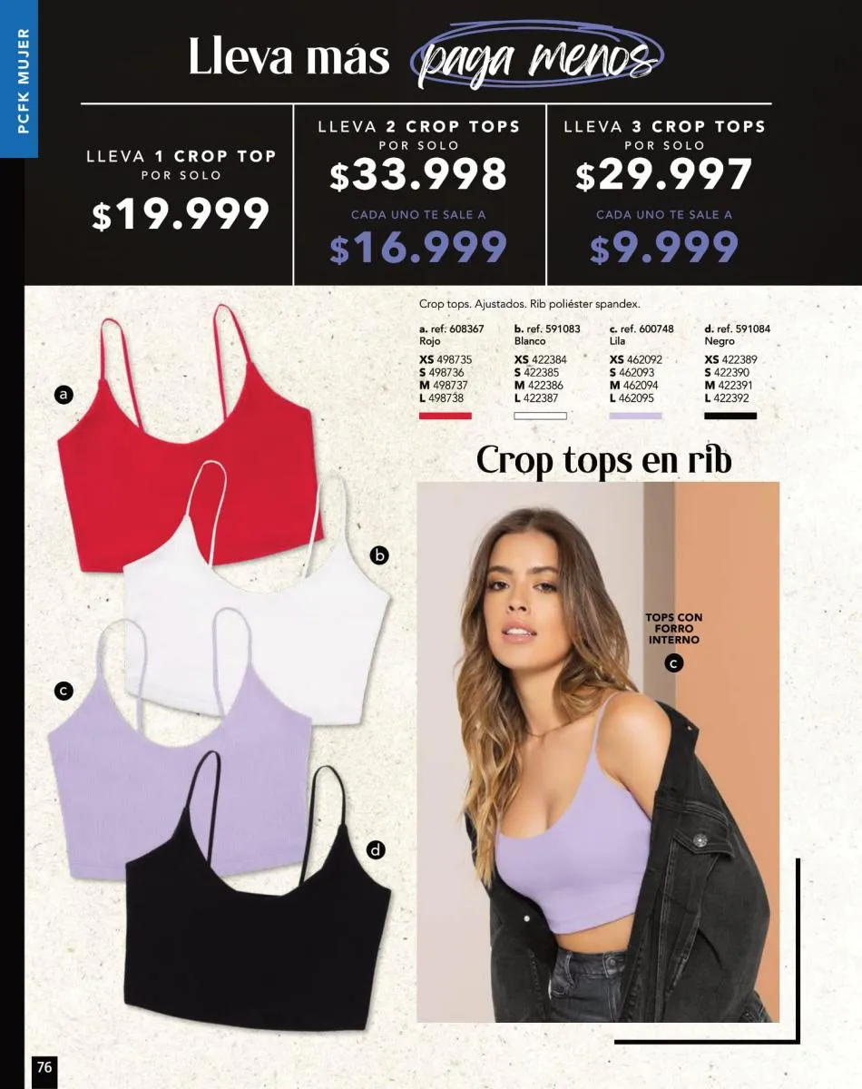 - Crop Tops ajustado al cuerpo, confeccionado con tejido algodón, modelo disponible en color blanco, talla XS/XL. Pag 2.