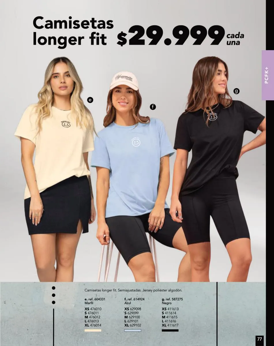 - Camiseta silueta semi ajustada, elaborada en Jersey poliéster algodón, modelo en color marfil, talla XS/XL. Pag 92.