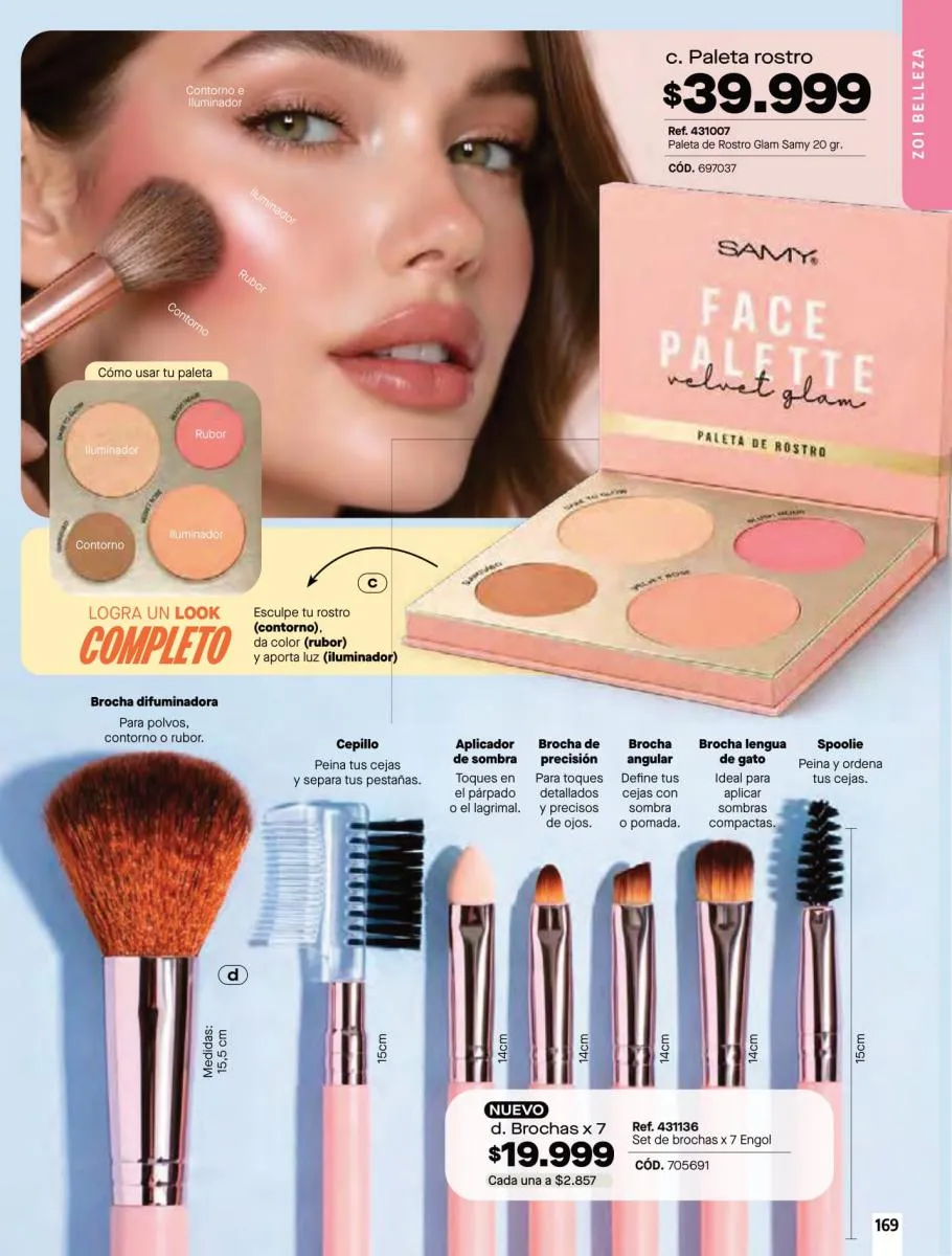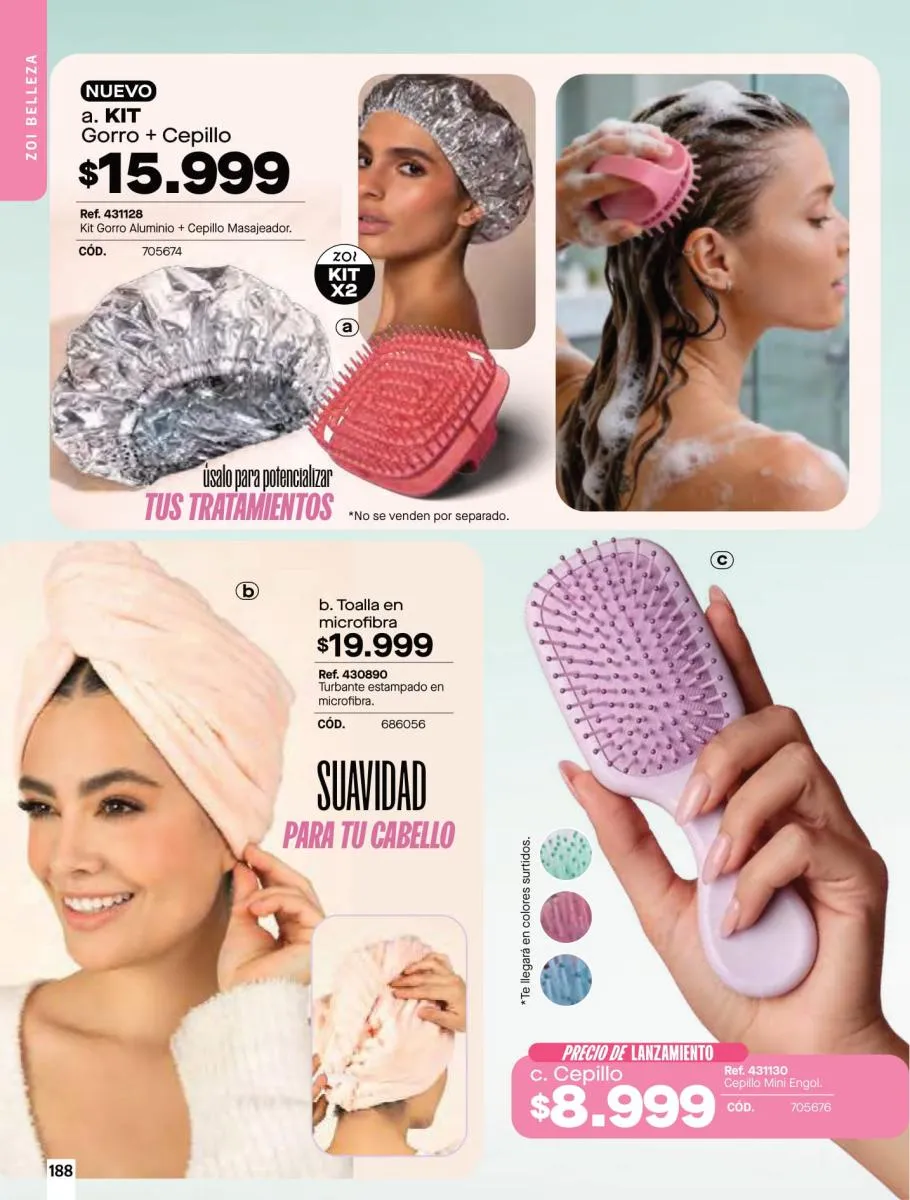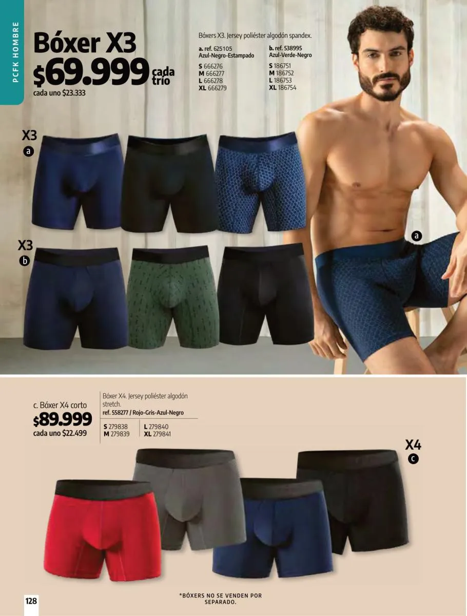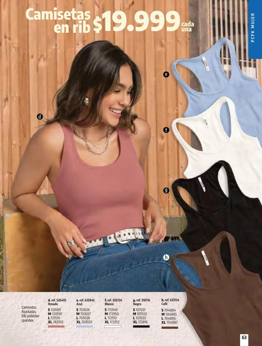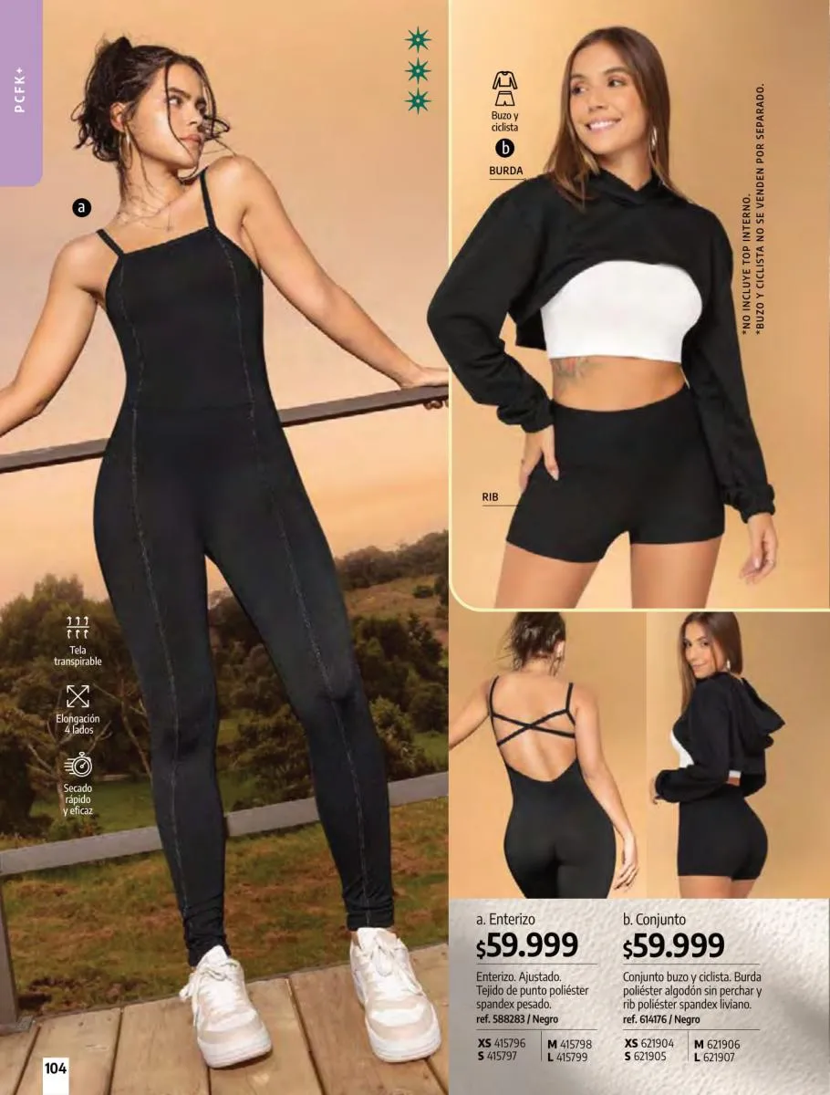 • Brassier con copa sin varilla, elaborado en tela Jersey poliéster algodón stretch, disponible en colores: Azul claro, azul oscuro y con diseño de estampado floral, talla 32/38. Pag 67.