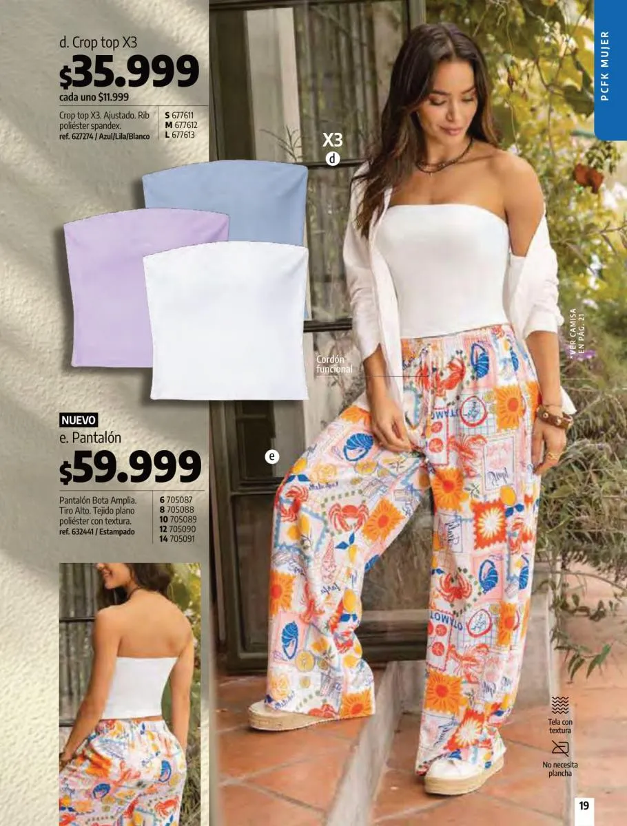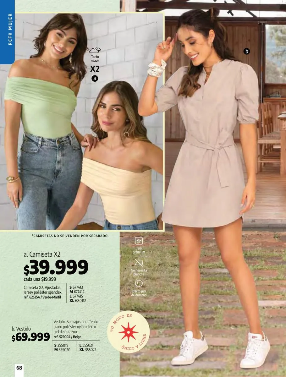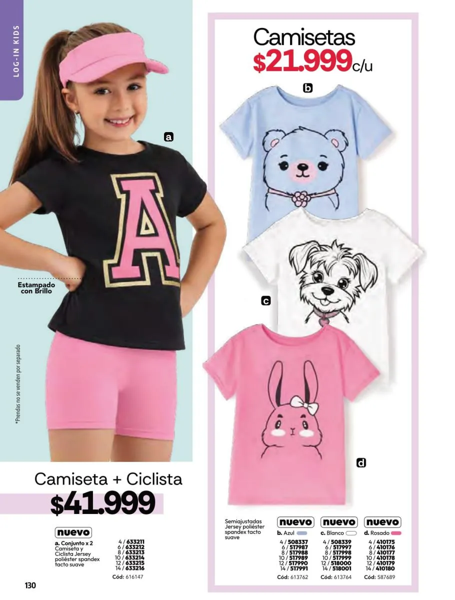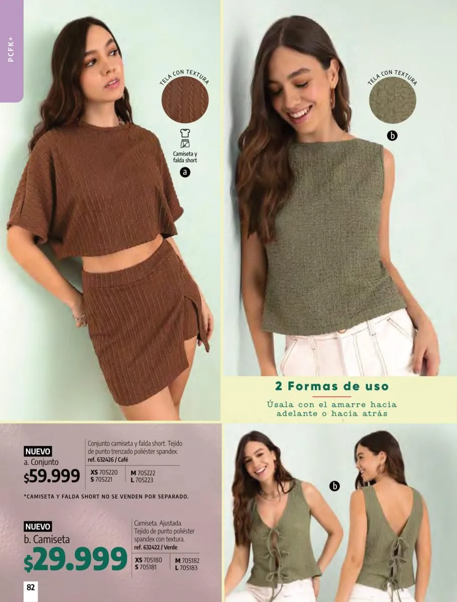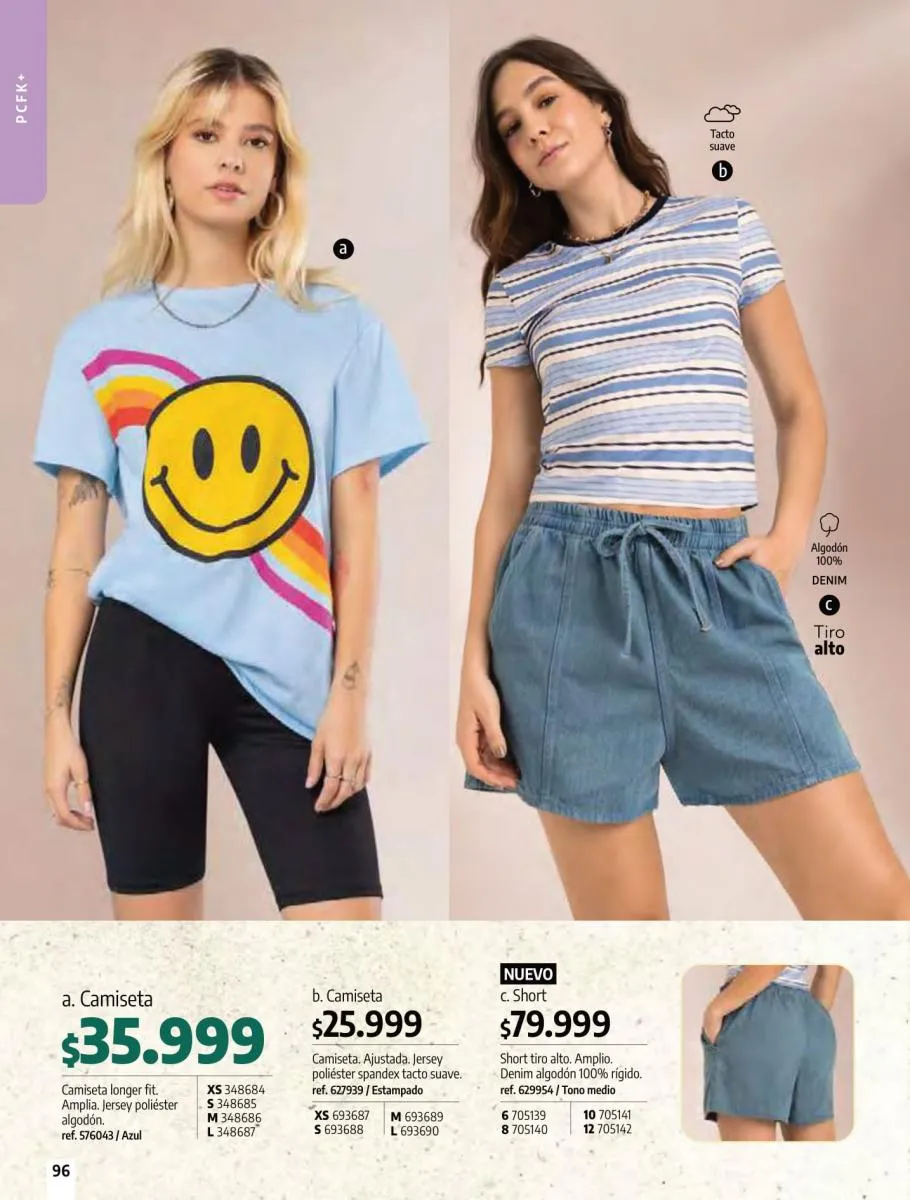 • Camiseta manga corta, elaborada en tela Jersey poliéster viscosa con estampado floral, silueta semi ajustada al cuerpo, talla XS/XL. Pag 10.