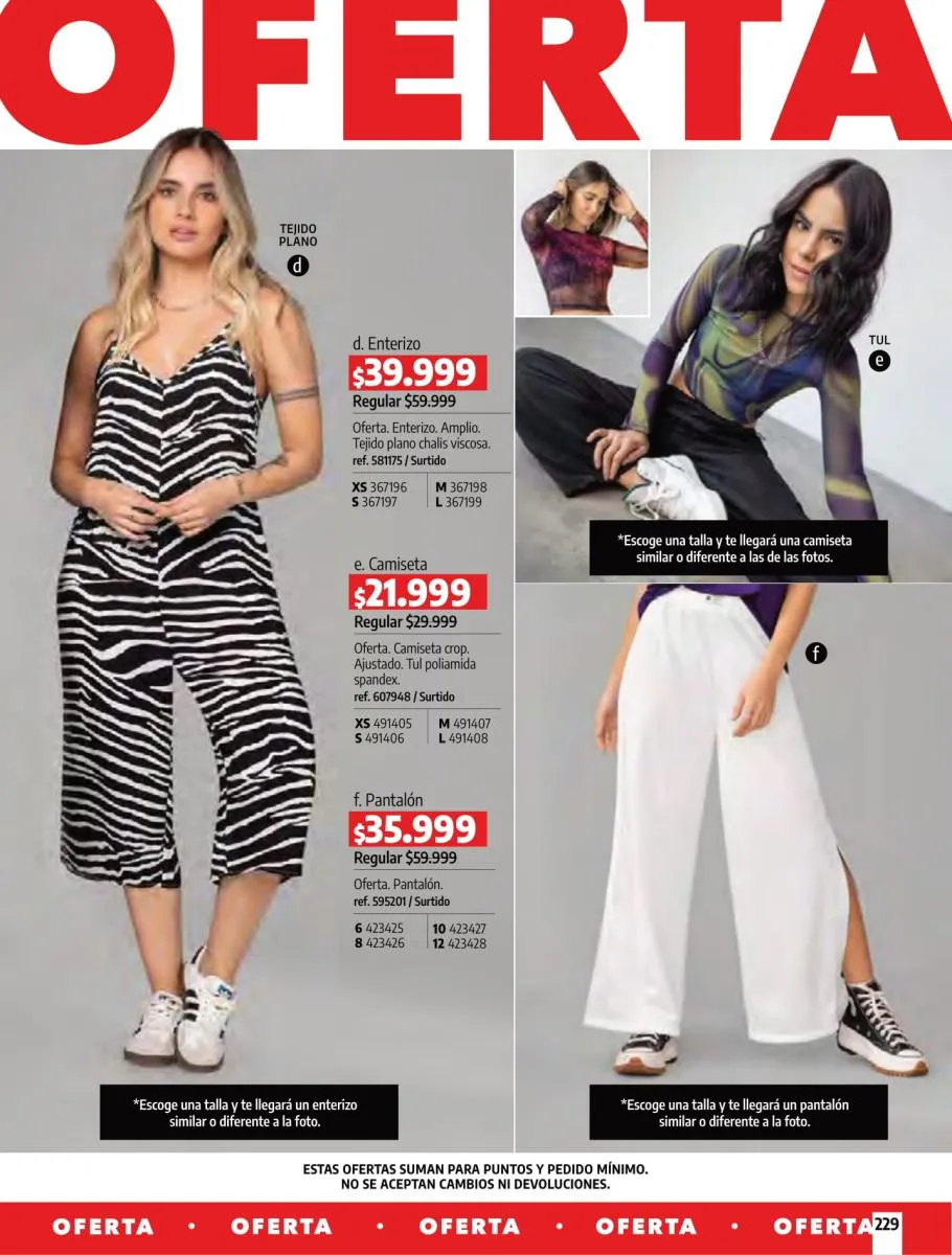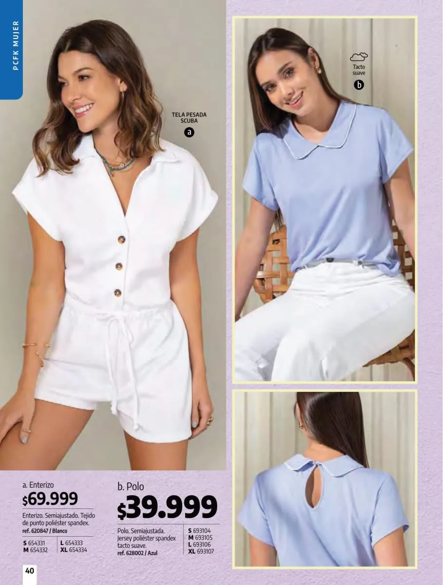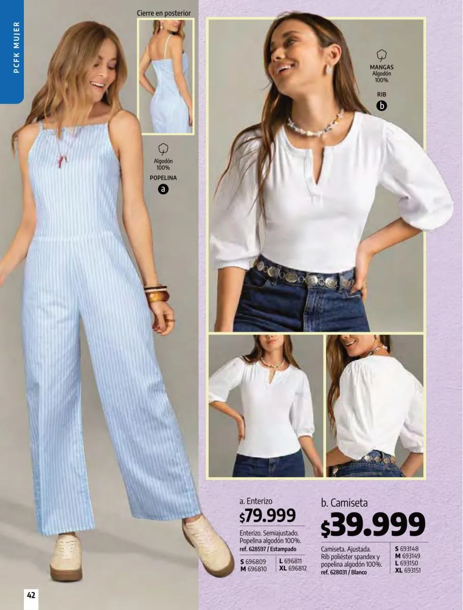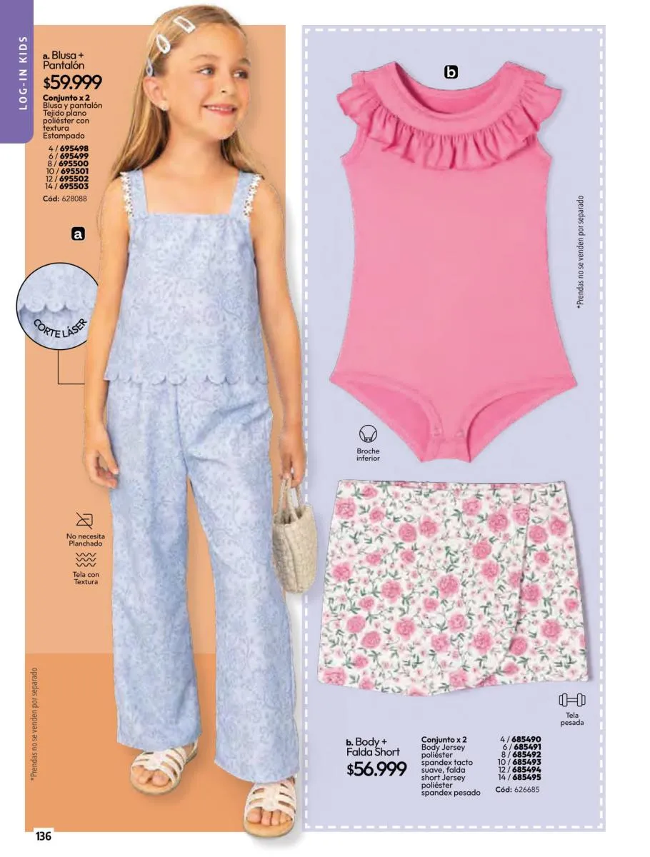 • Camiseta manga corta, elaborada en tela Jersey poliéster viscosa con estampado floral, silueta semi ajustada al cuerpo, talla XS/XL. Pag 10.