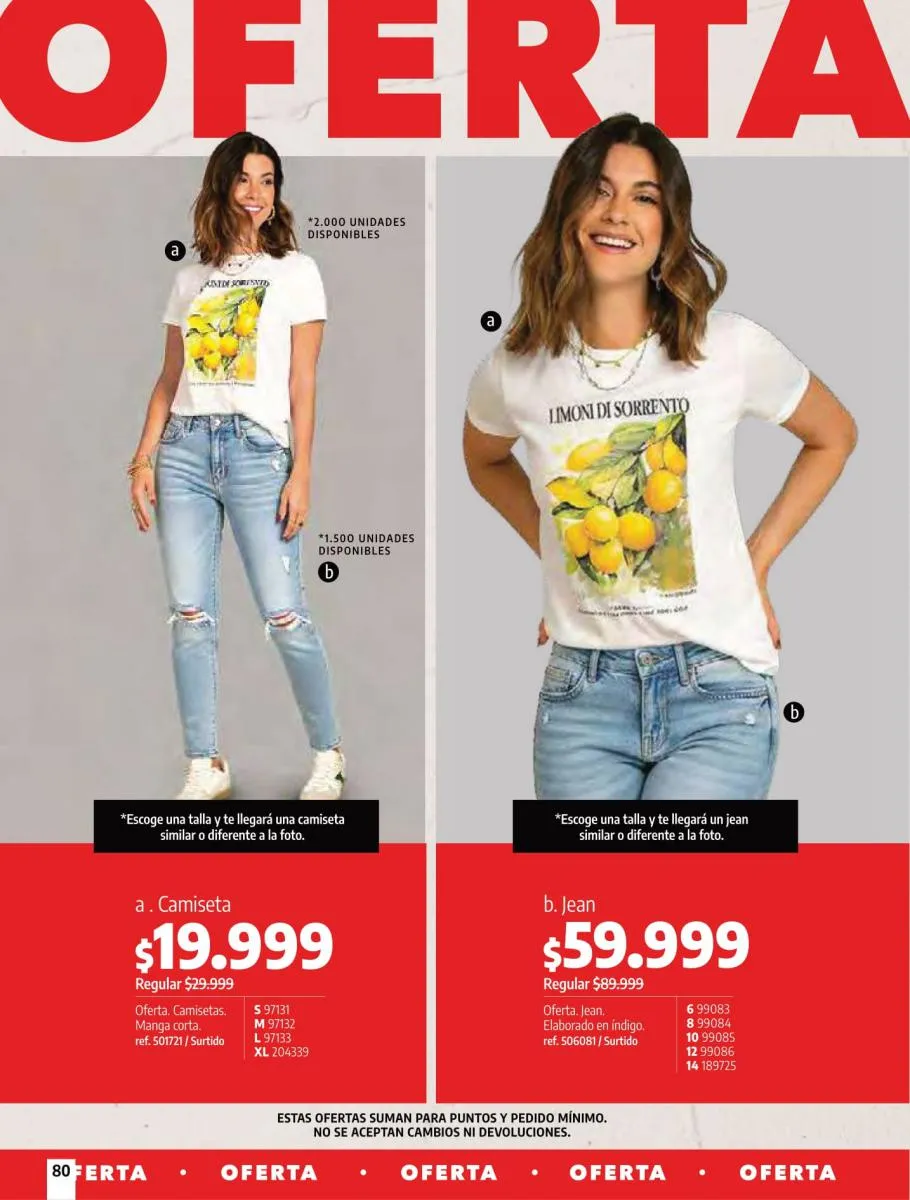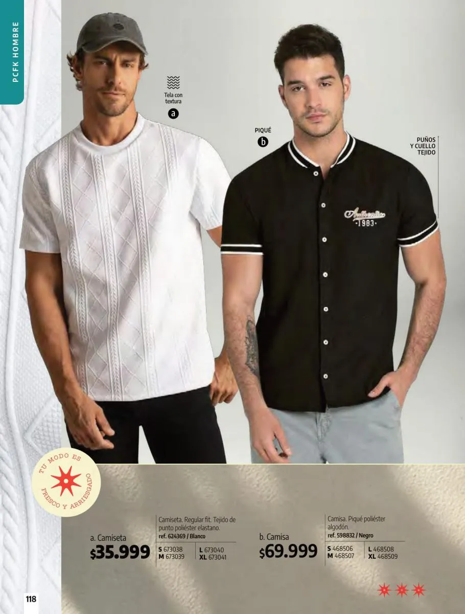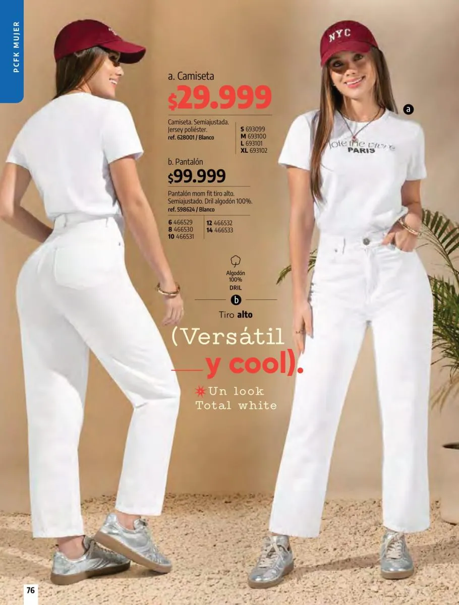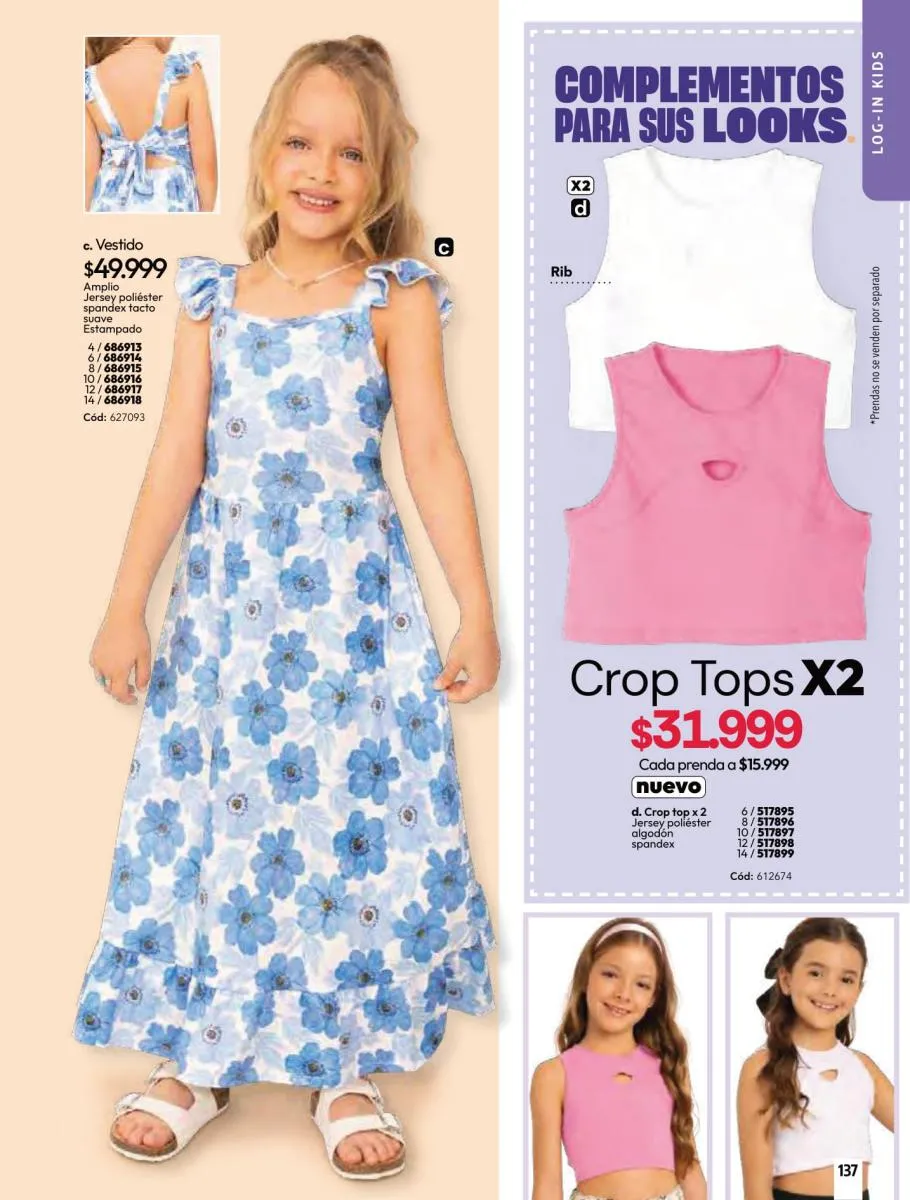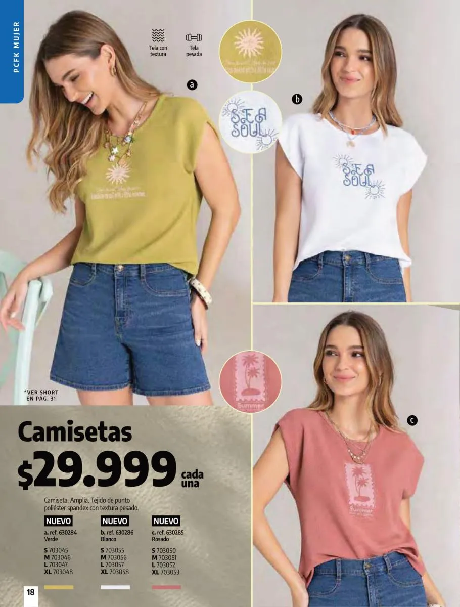 • Camiseta manga corta, elaborada en tela Jersey poliéster viscosa con estampado floral, silueta semi ajustada al cuerpo, talla XS/XL. Pag 10.
