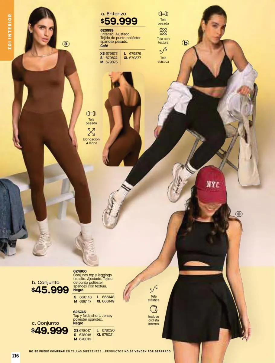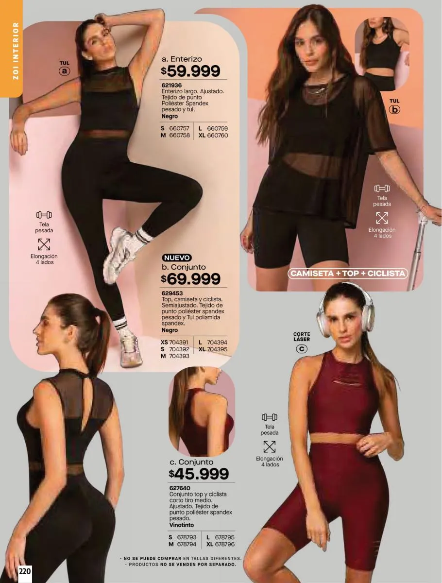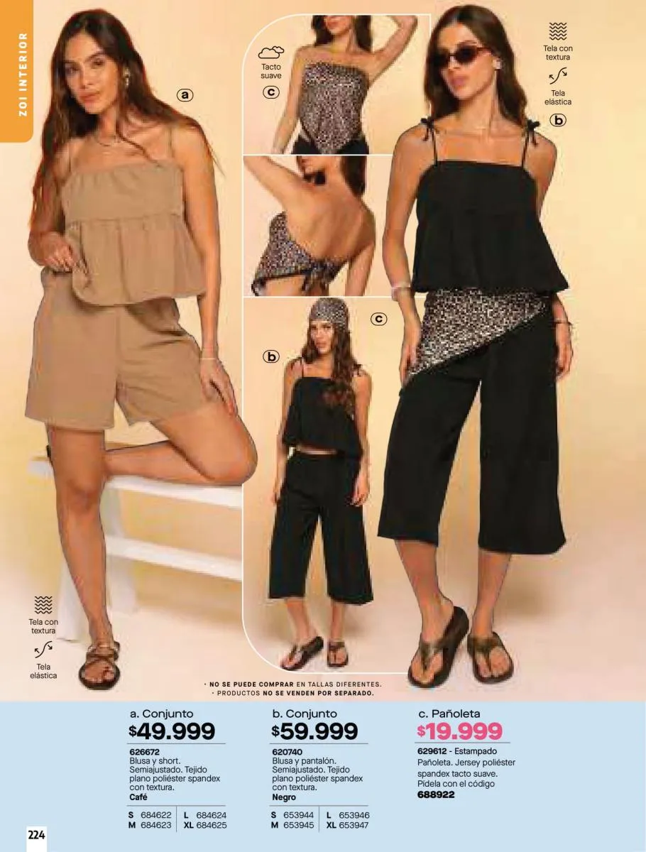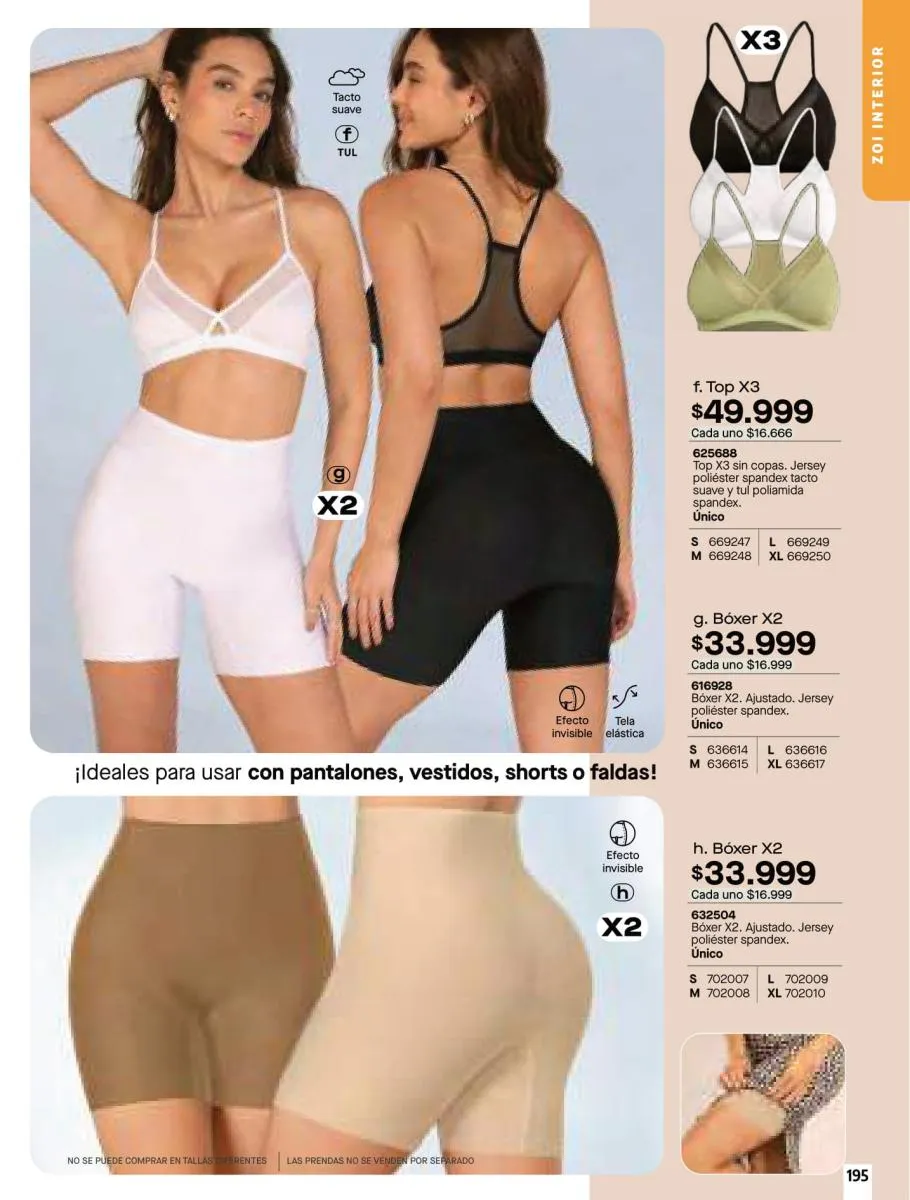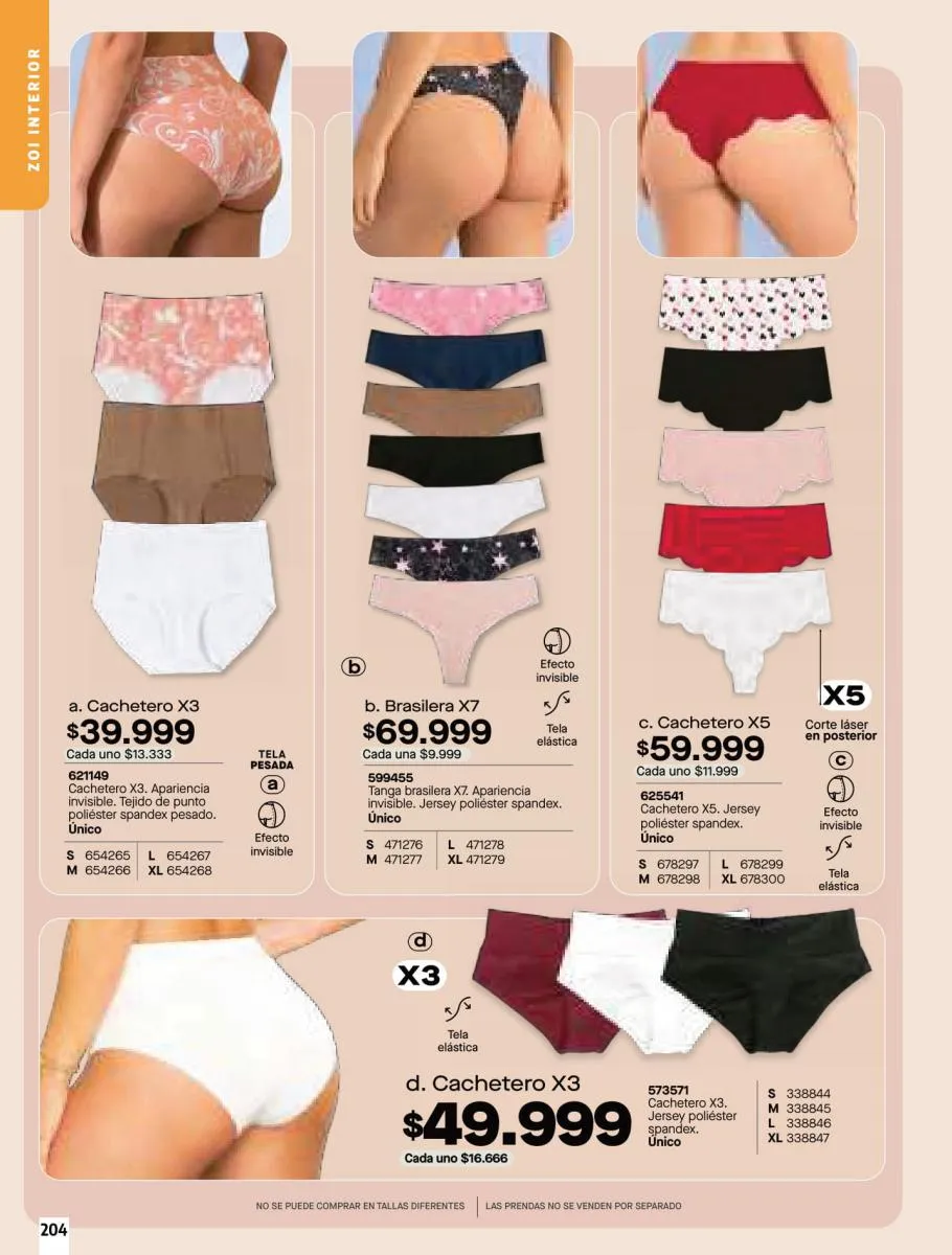 • Brasileras X3 conjunto elaborado en tela Jersey poliéster algodón stretch y encaje en poliamida stretch. Creados con las mejores telas, disponible en colores: Verde, marfil y negro, talla XS/XL. Pag 79.