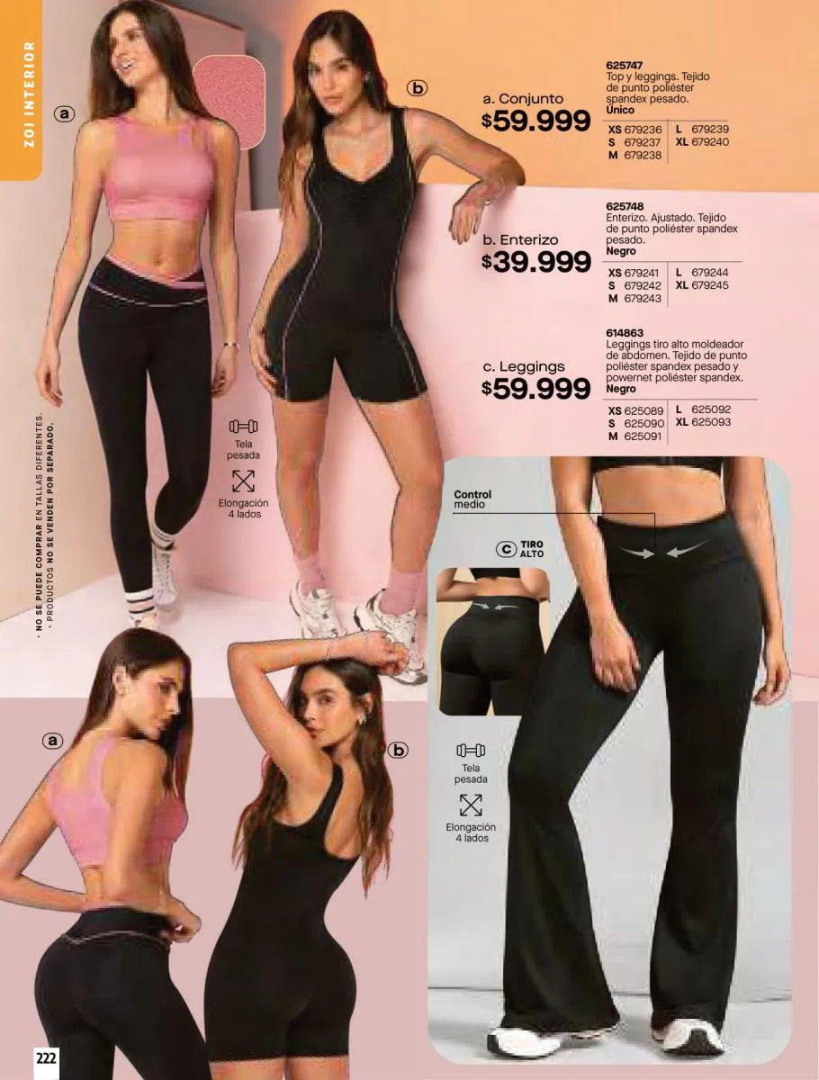 • Brassier con copa sin varilla, elaborado en tela Jersey poliéster algodón stretch, disponible en color: Verde, negro y marfil, talla 32/38. Pag 79.