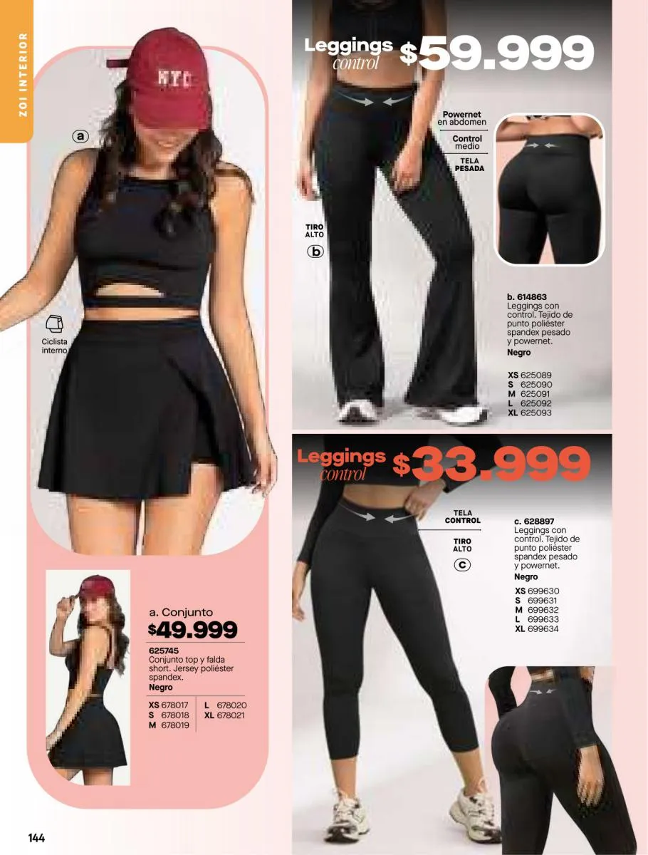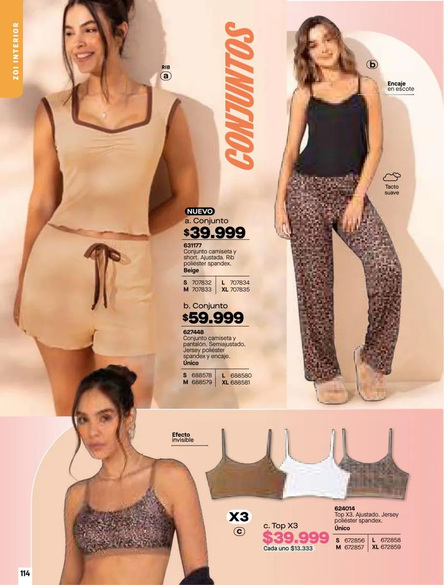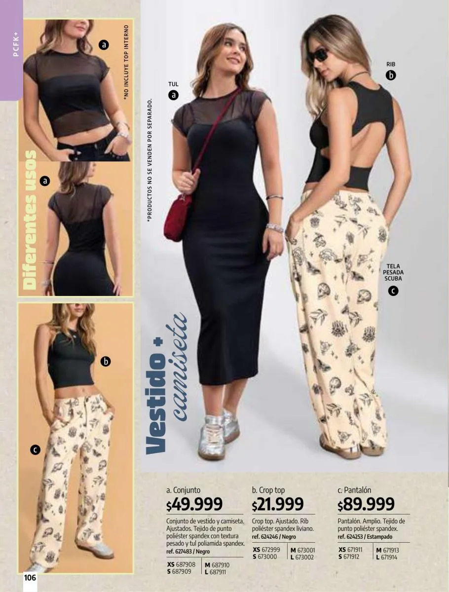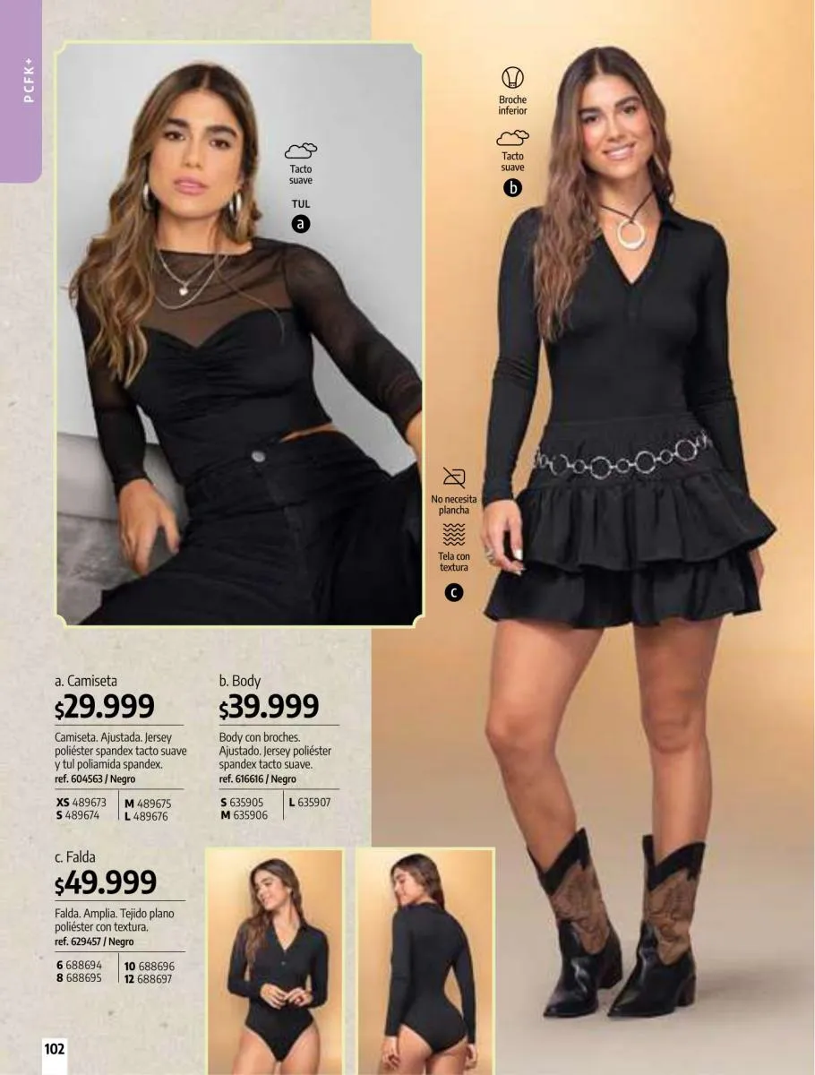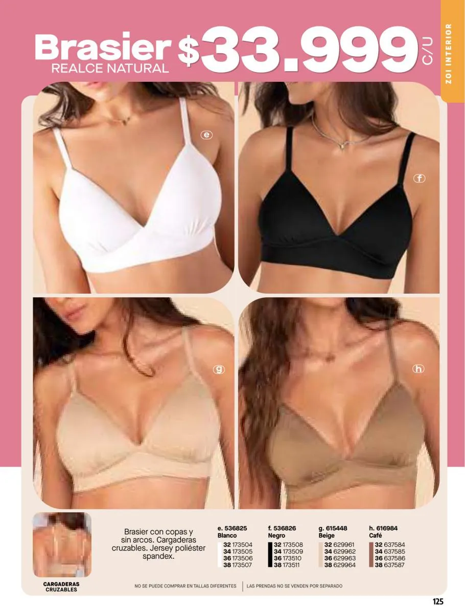 - Crop tops corto sin copa, con detalle de encaje elaborado en poliamida stretch, disponible en color negro, talla XS/XL. Pag 60.