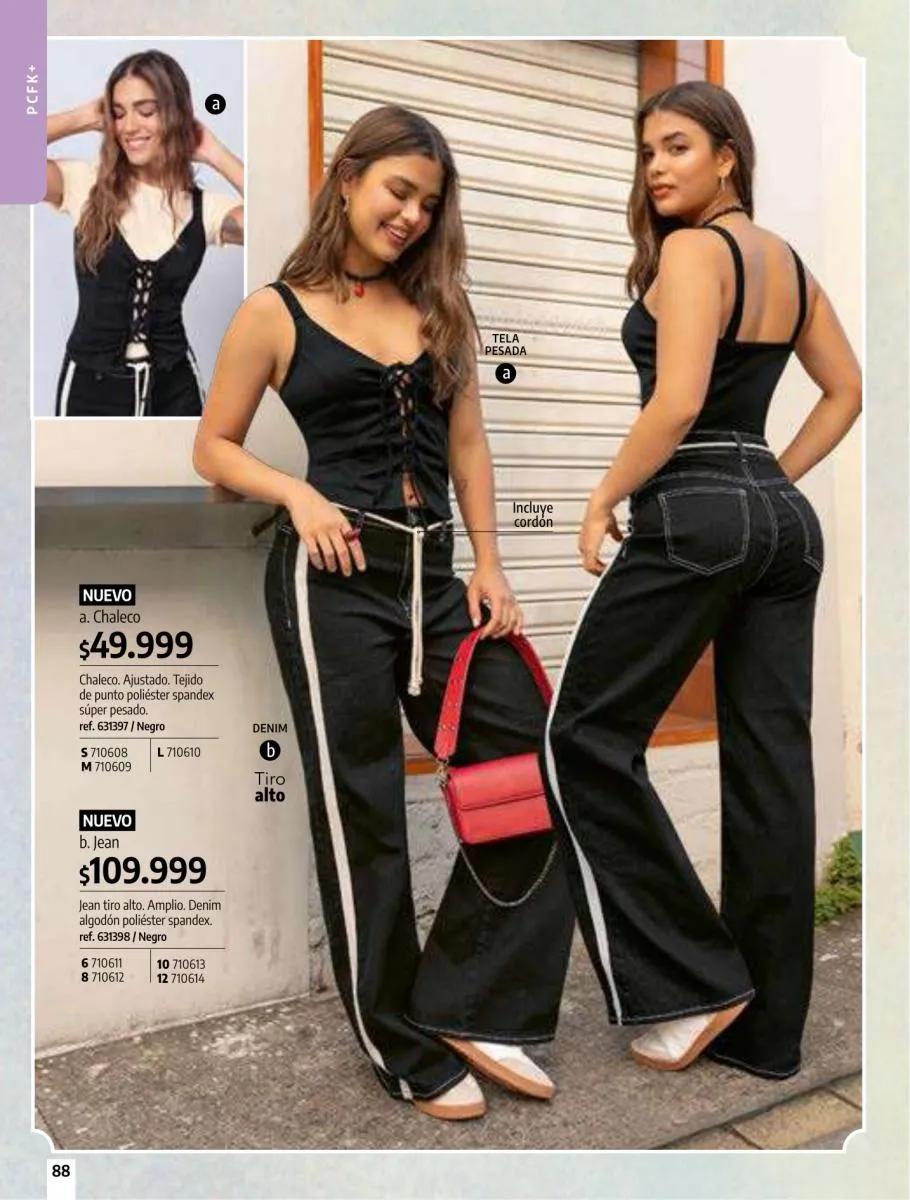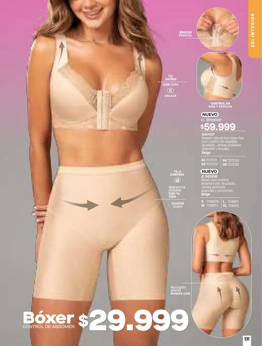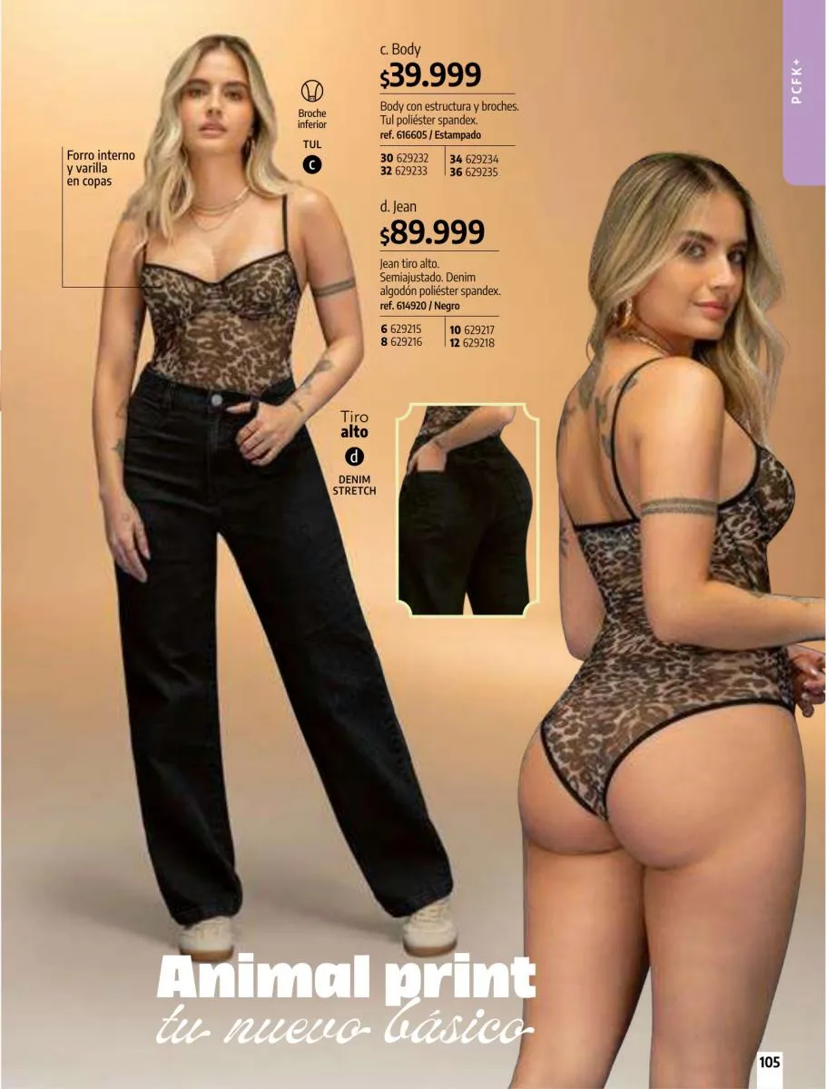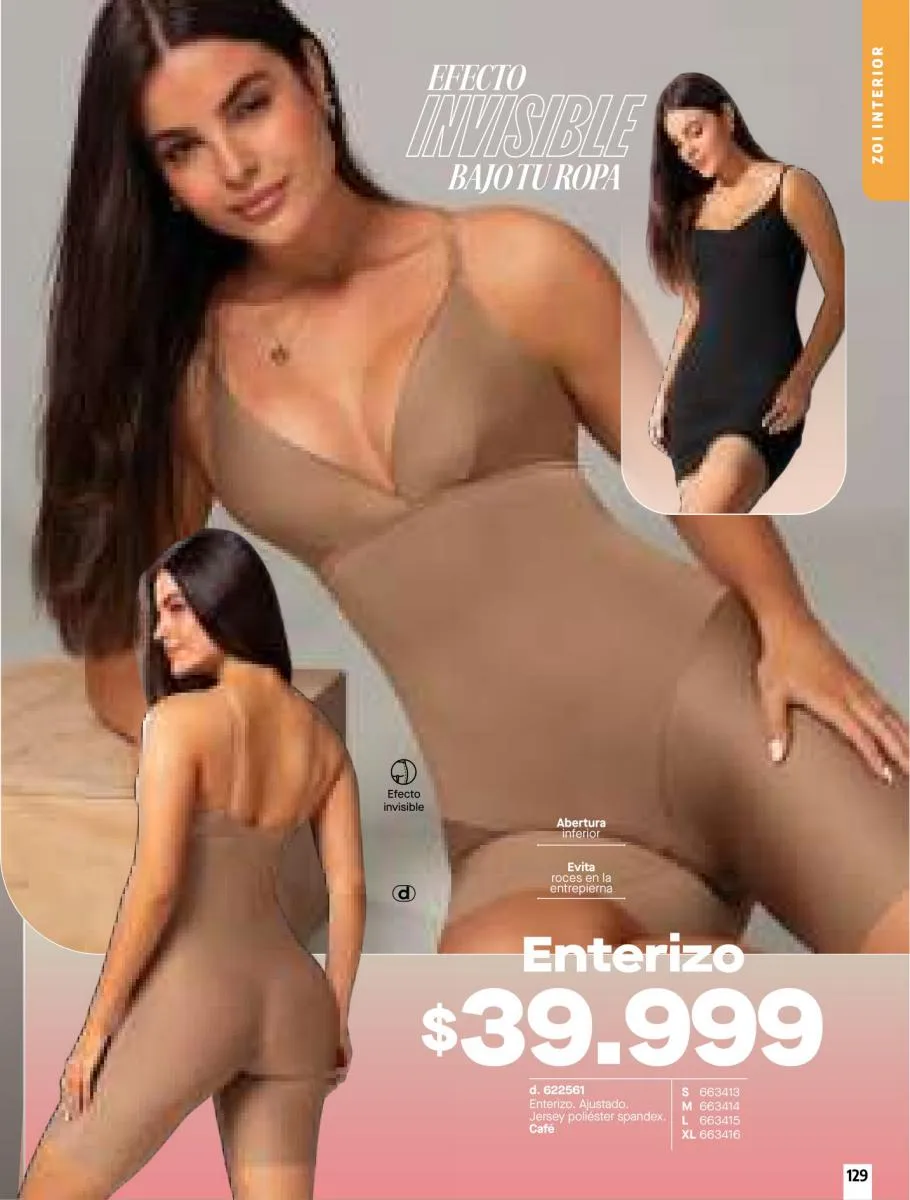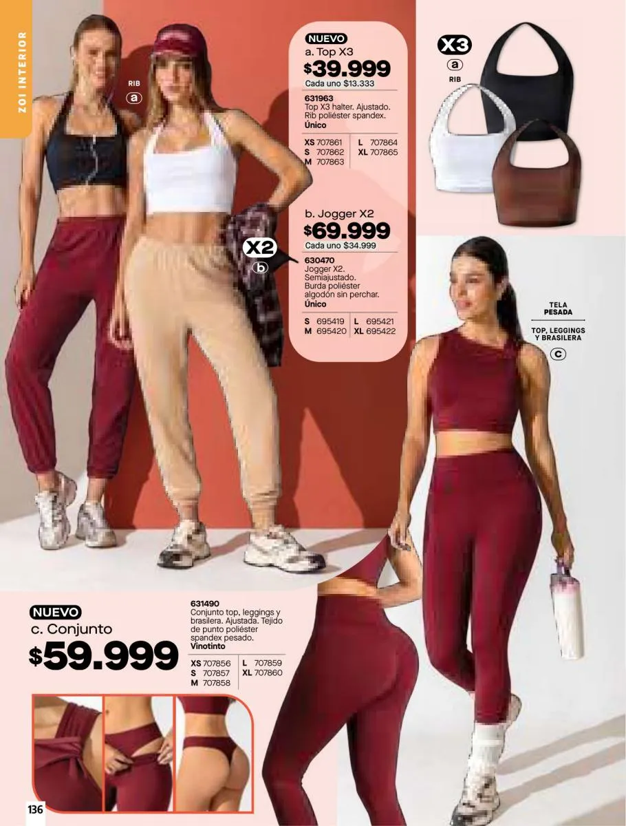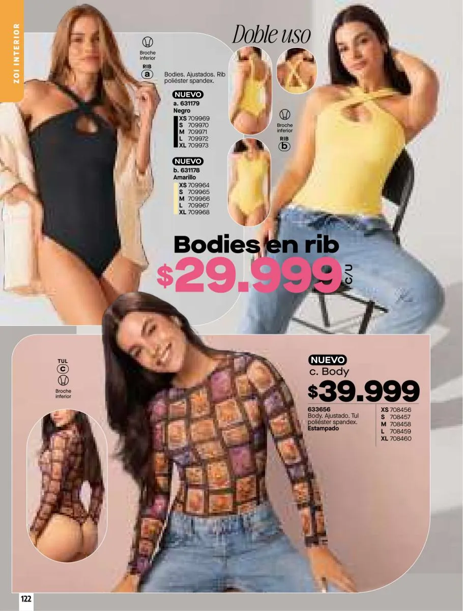 - Crop tops corto sin copa, con detalle de encaje elaborado en poliamida stretch, disponible en color negro, talla XS/XL. Pag 60.