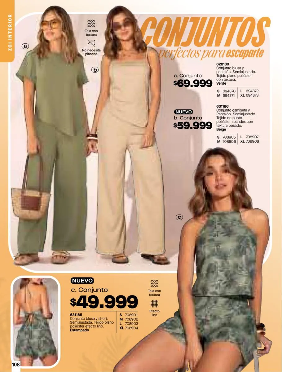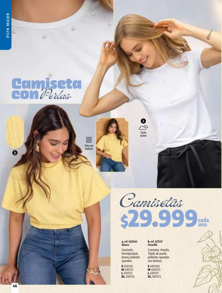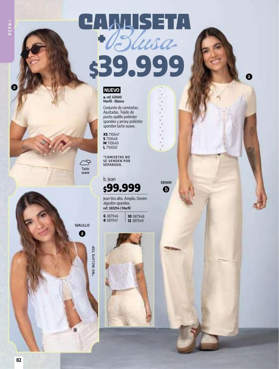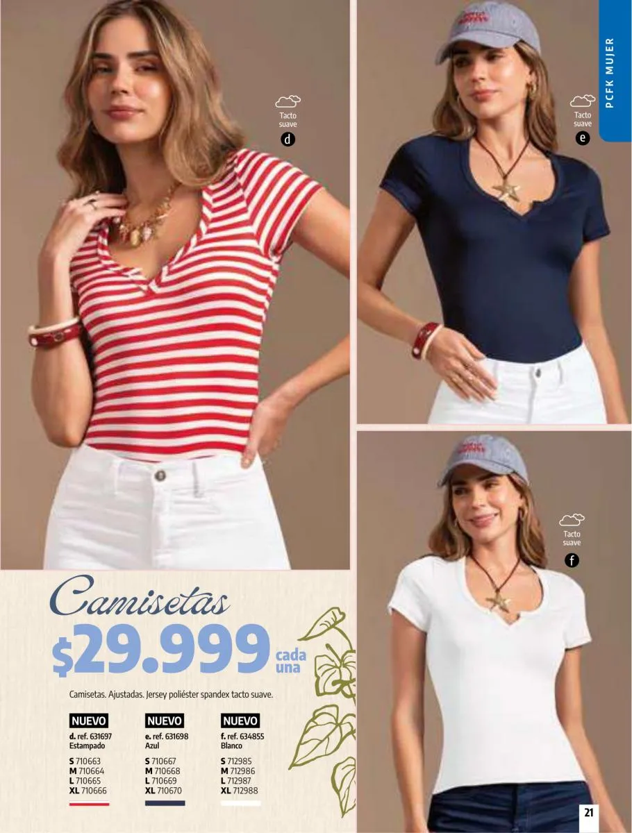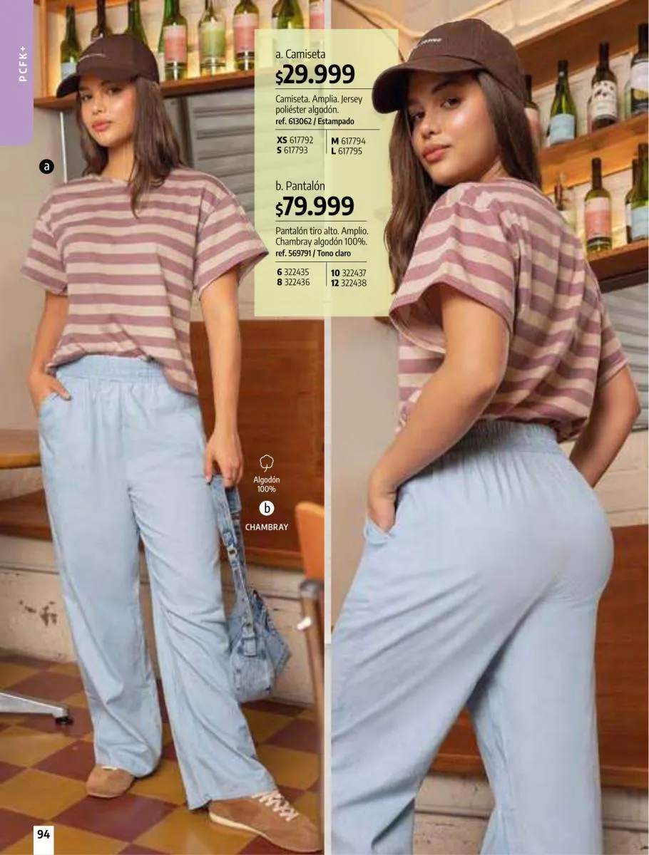 - Conjunto para niña, conformado por: camiseta y short, elaborados en burda liviana poliéster y algodón sin perchar, disponible en color azul, talla 6/14 y conjunto Mujer conformado por camiseta y short ambas piezas elaboradas en burda liviana poliéster y algodón sin perchar, silueta semi ajustada, en color azul, talla XS/XL. Pag 117.