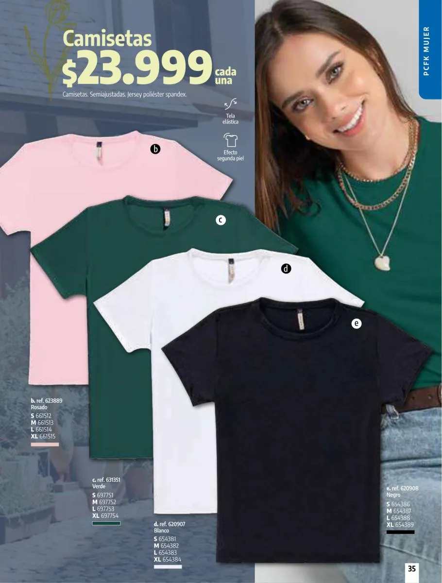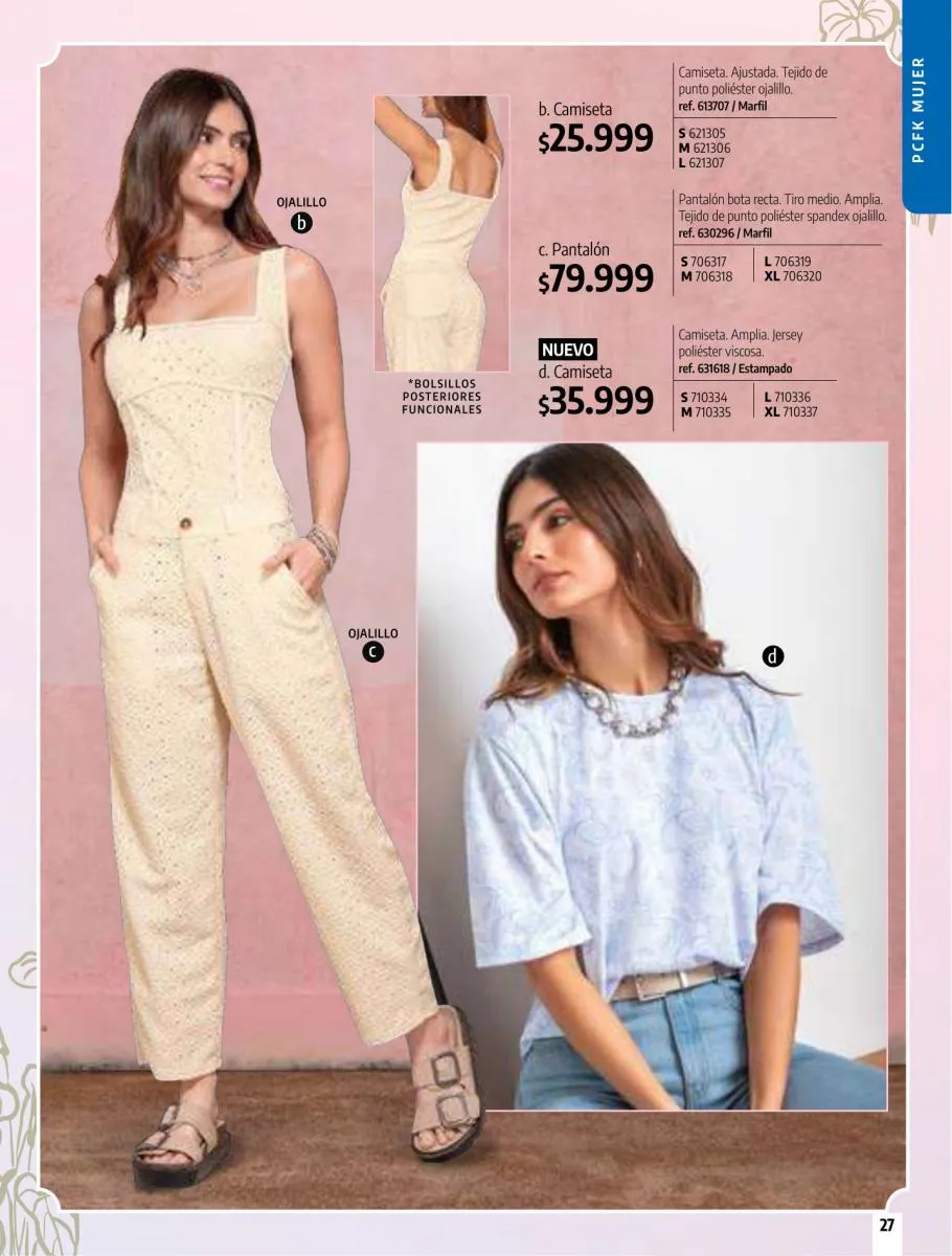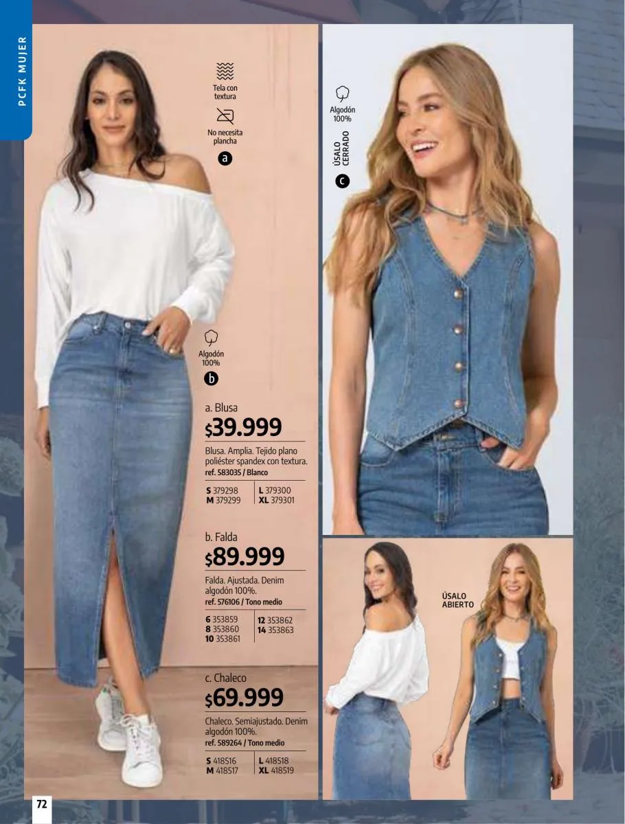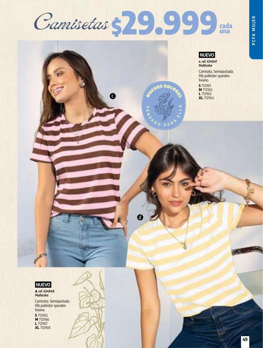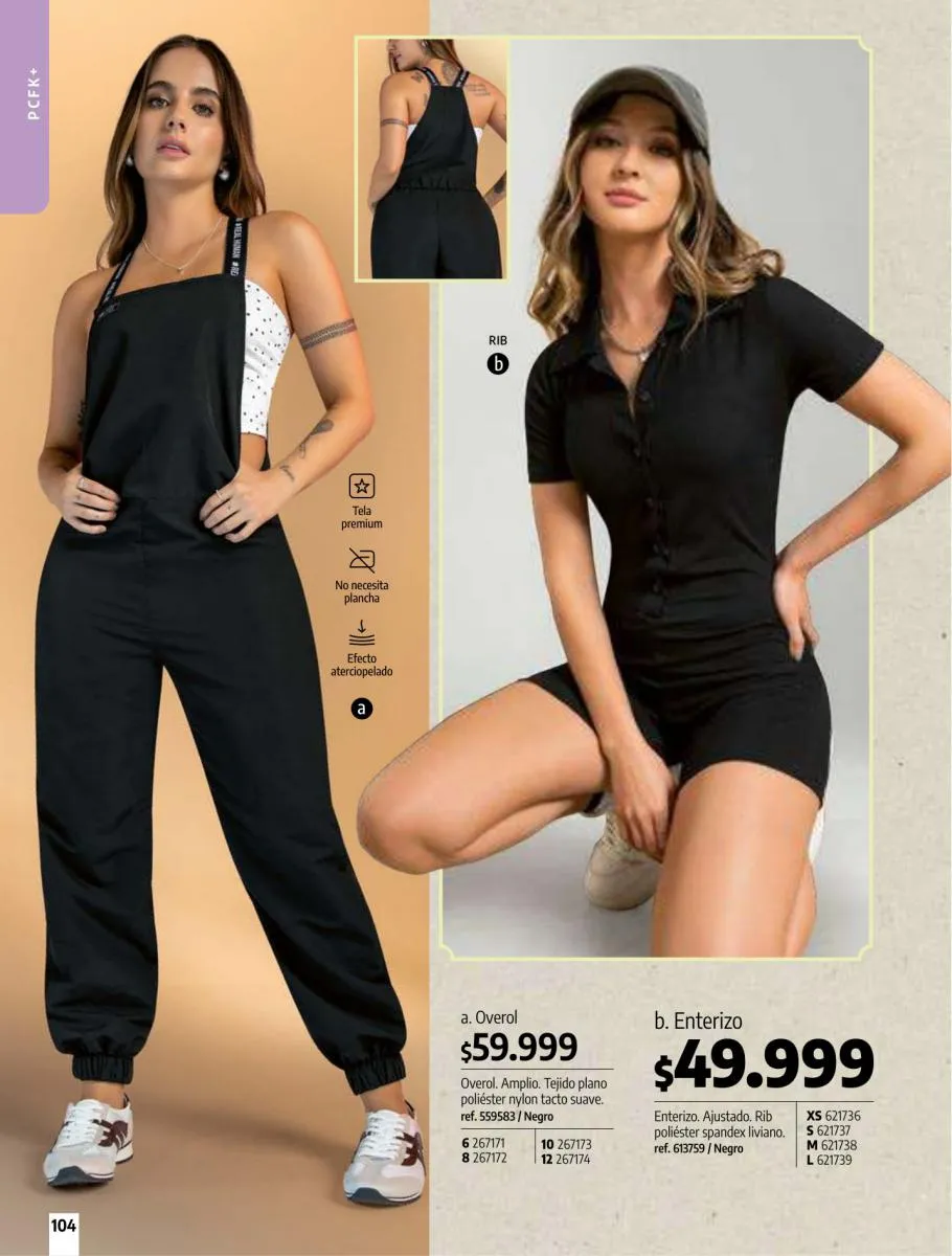 - Conjunto para niña, conformado por: camiseta y short, elaborados en burda liviana poliéster y algodón sin perchar, disponible en color azul, talla 6/14 y conjunto Mujer conformado por camiseta y short ambas piezas elaboradas en burda liviana poliéster y algodón sin perchar, silueta semi ajustada, en color azul, talla XS/XL. Pag 117.