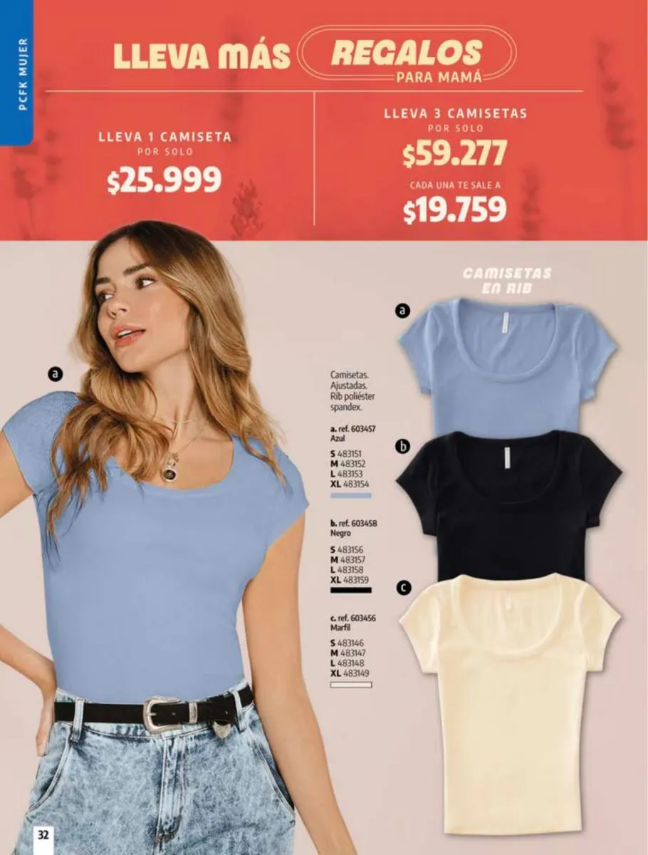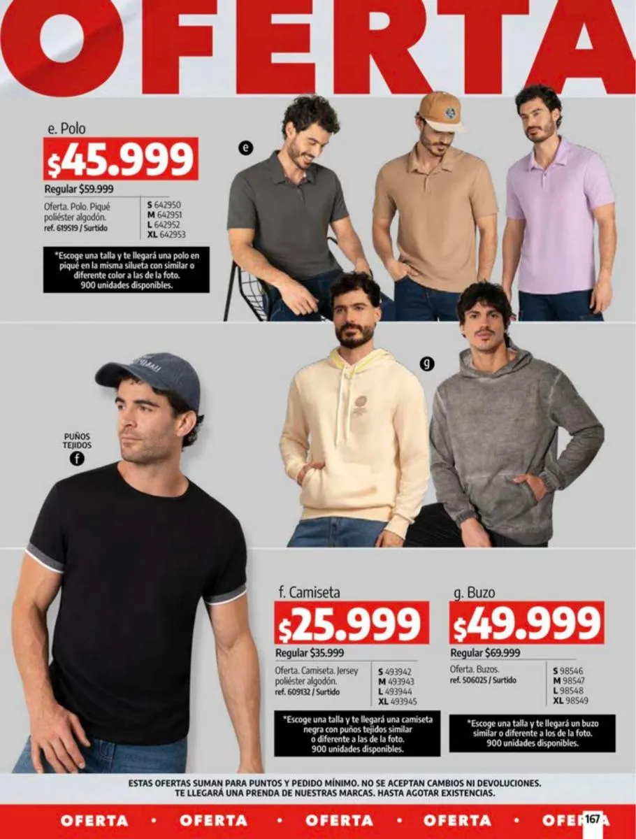 - Oferta de camisetas manga corta, talla XS/XL. Pag 55.