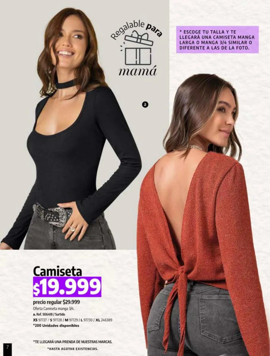- Oferta de blusas manga corta, talla XS/XL. Pag 54.
