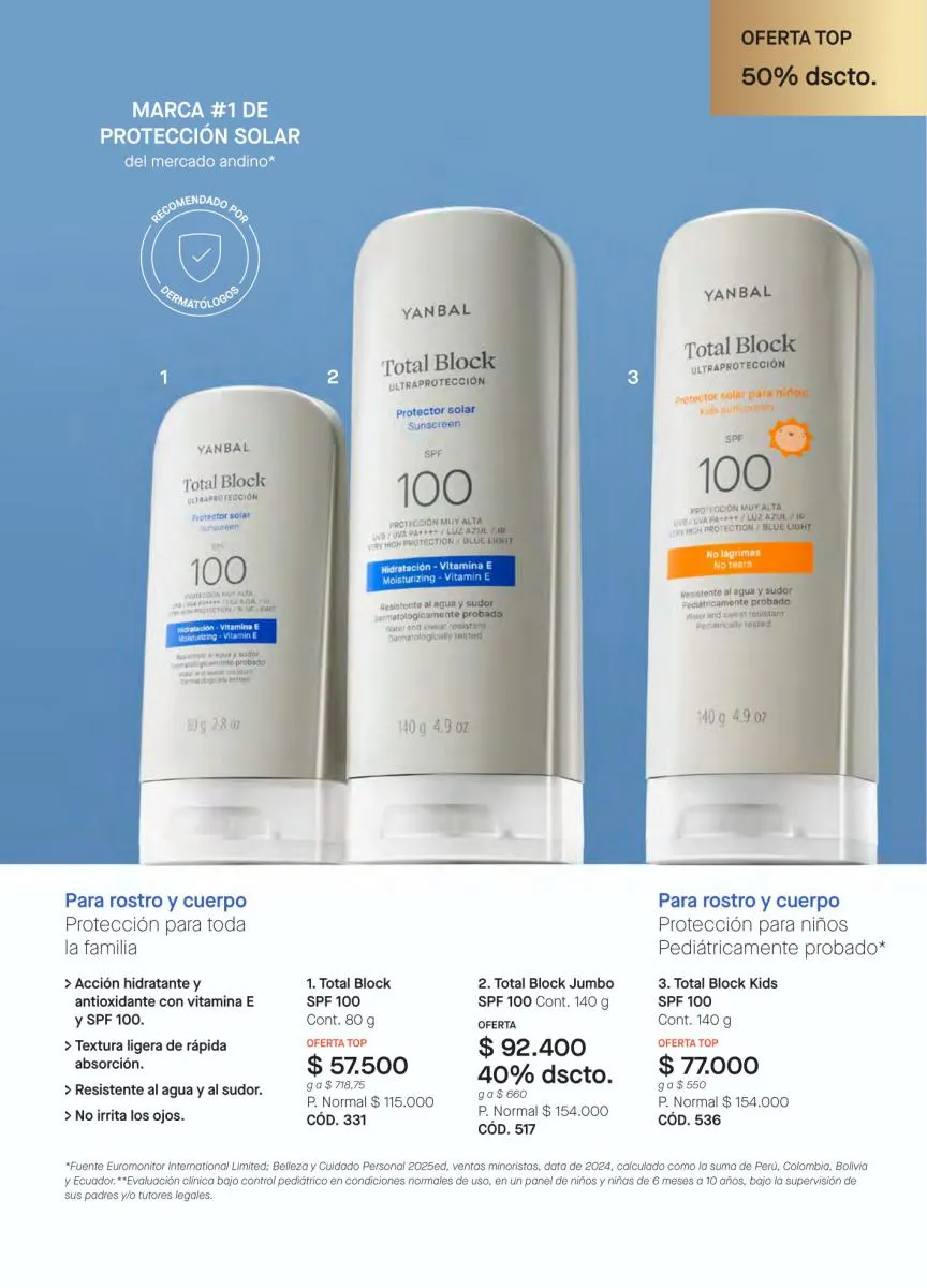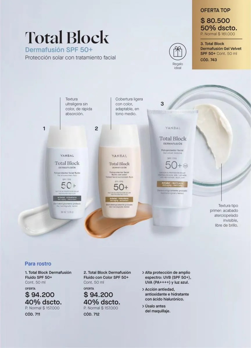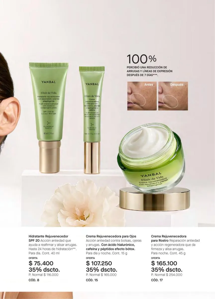 De igual manera, están presentes las líneas de productos como Energía vital, Elixir de Vida, Extracto Divino y Control Blanc, para todas las edades; Totalist, que son cremas 5 en 1 en diferentes versiones y Totalblock, con protector solar.