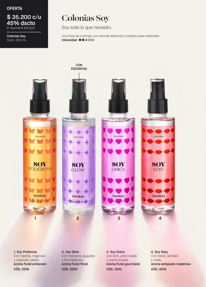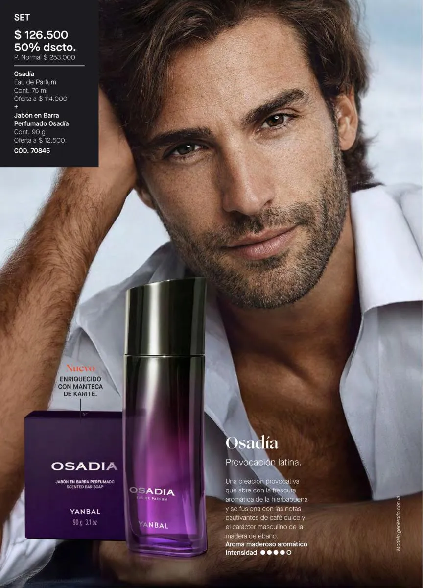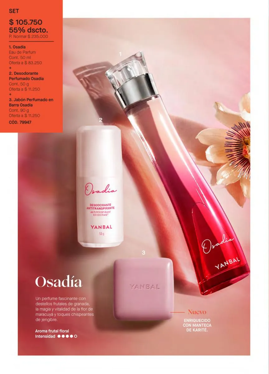 Comenzamos esta sección del catálogo Yanbal campaña 4 2026 Colombia con la promoción de la fragancia Osadía, en diversas versiones, “que nadie viva por ti”. Una fragancia con toques de flor de mimosa, bayas y madera de guayacán.