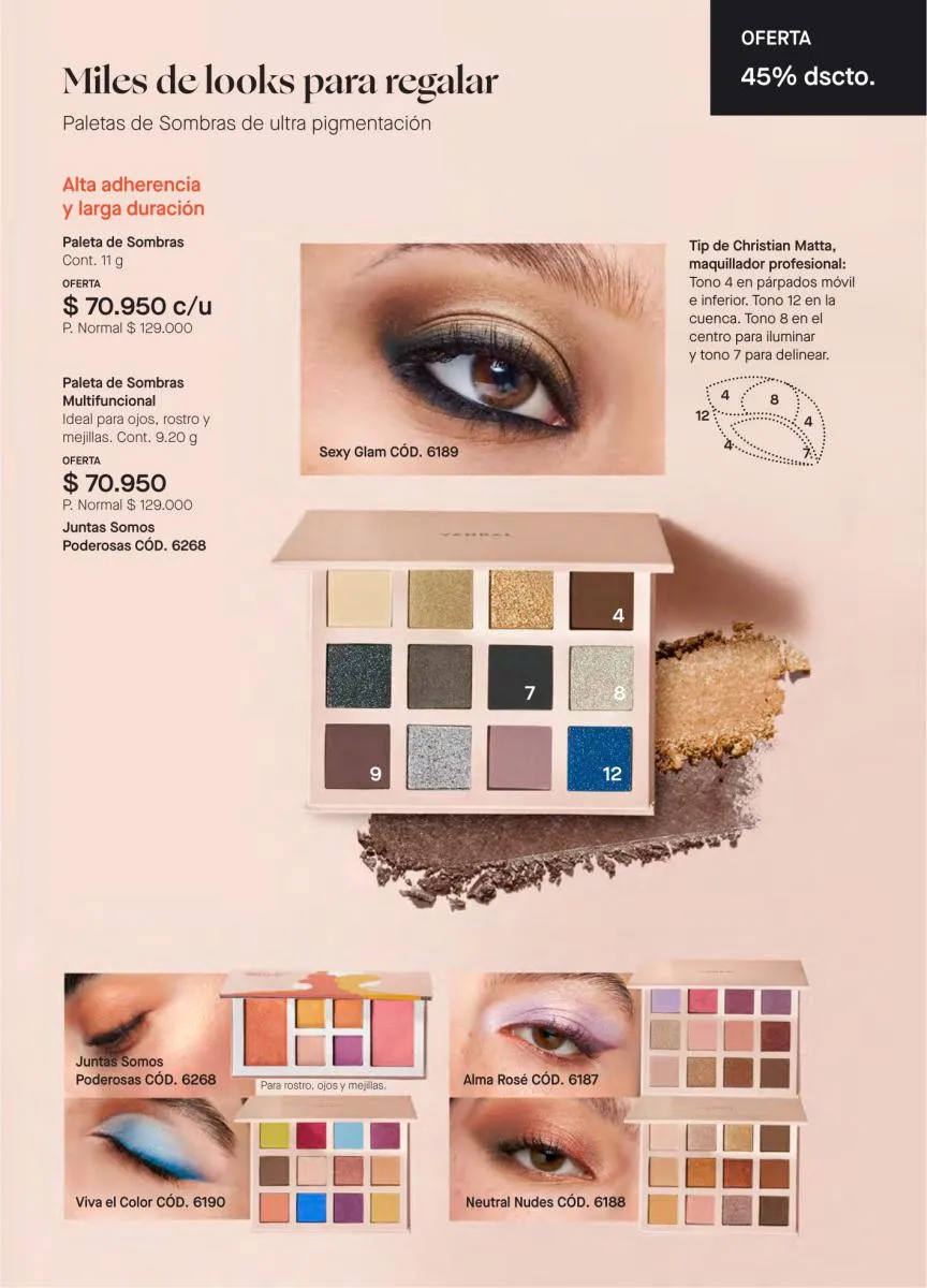 Podrás armar tus líneas de maquillaje con una diversidad de productos, ente sombras, delineadores, esmaltes vibrantes, máscaras, bases, fijadores, labiales y más.