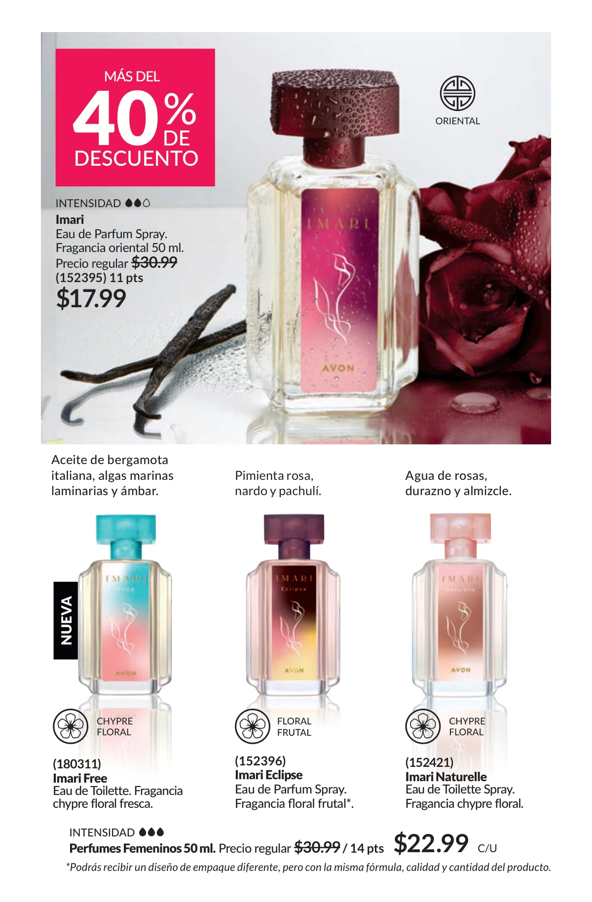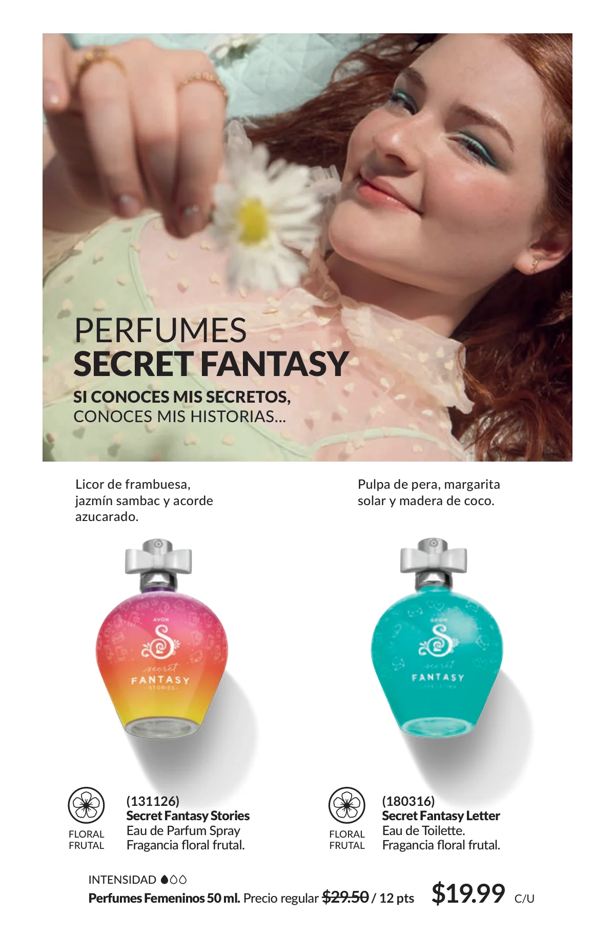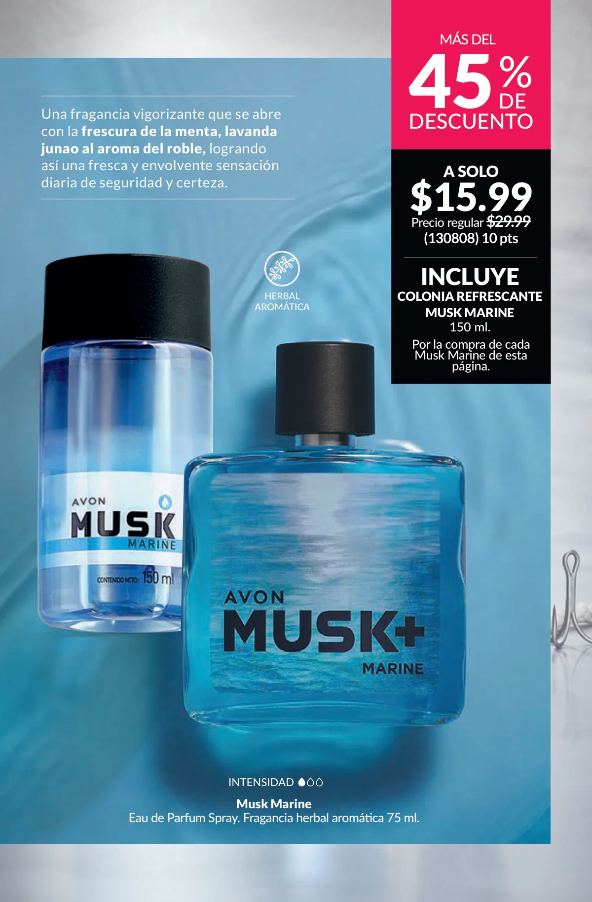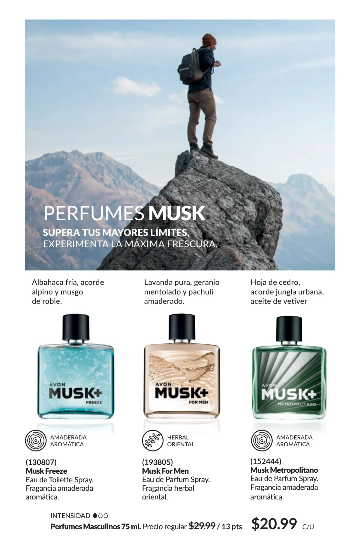 En este mes, las fragancias no quedan por fuera de las promociones de esta Avon campaña 1 2026. Hay muchas especiales para ellas/ellos: Fantasy (30%), Imari y Soft Musk, Far Away o las muy varoniles H o Musk, que las consigues con sus presentaciones de desodorantes y colonias.