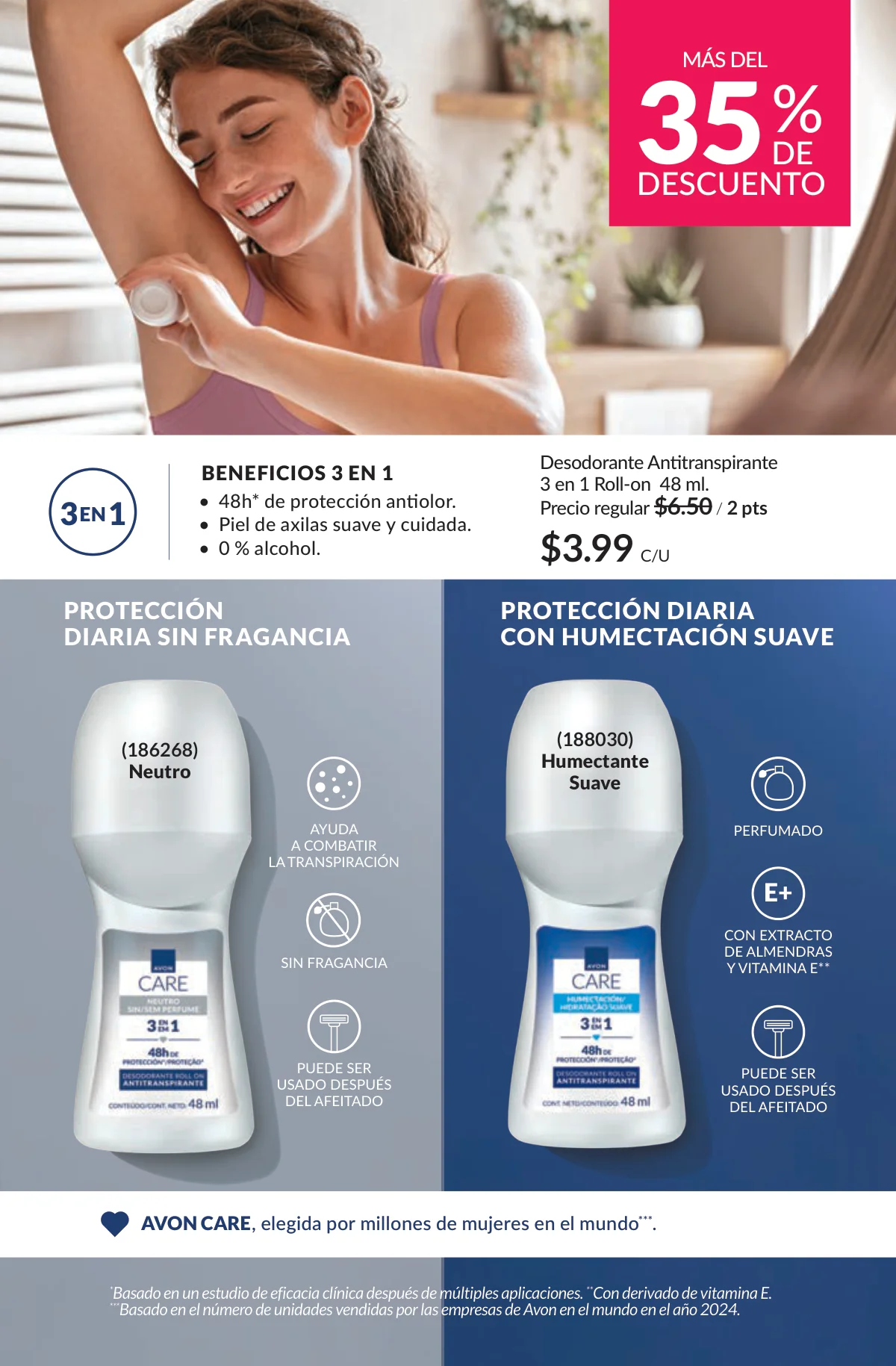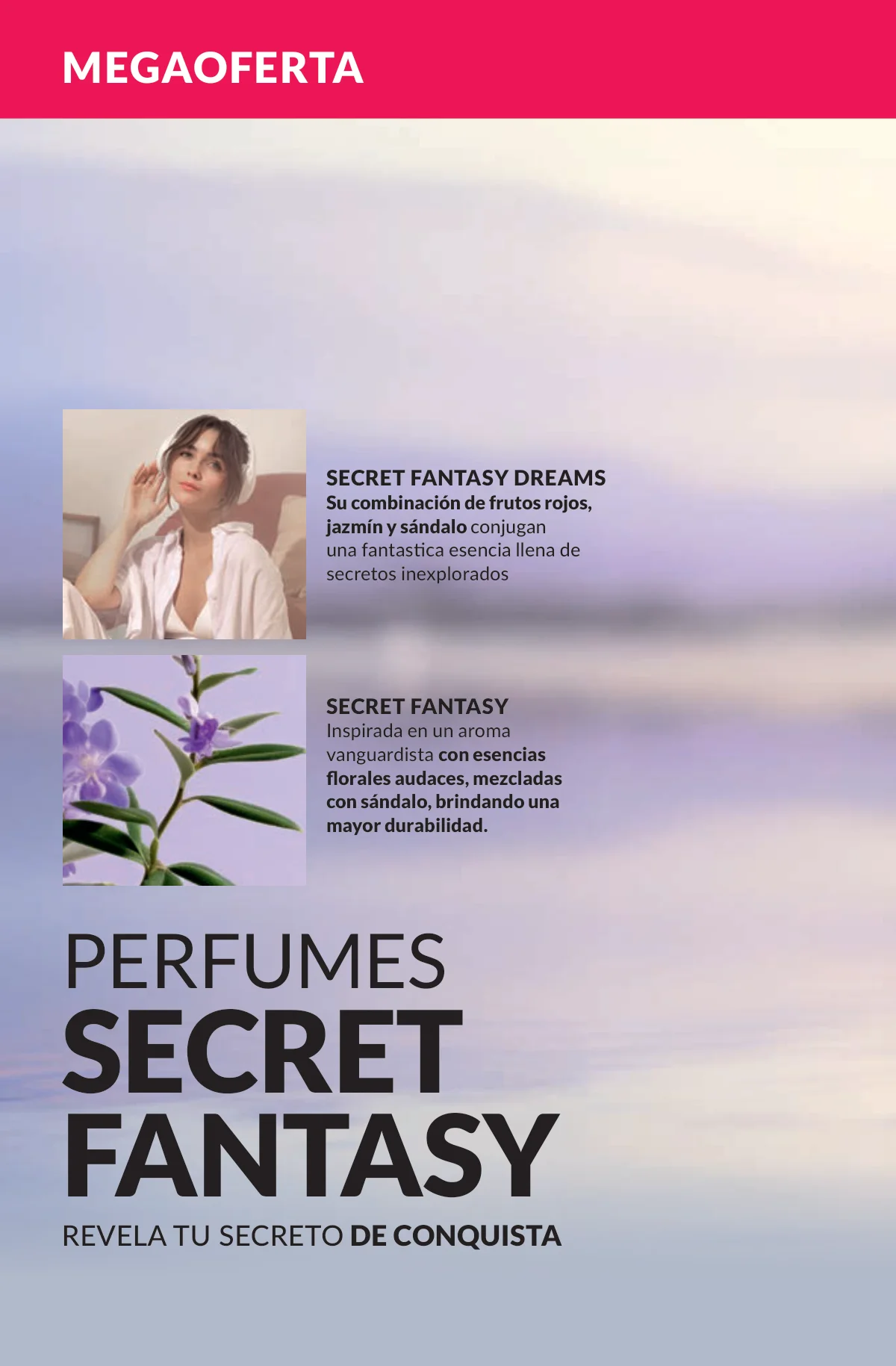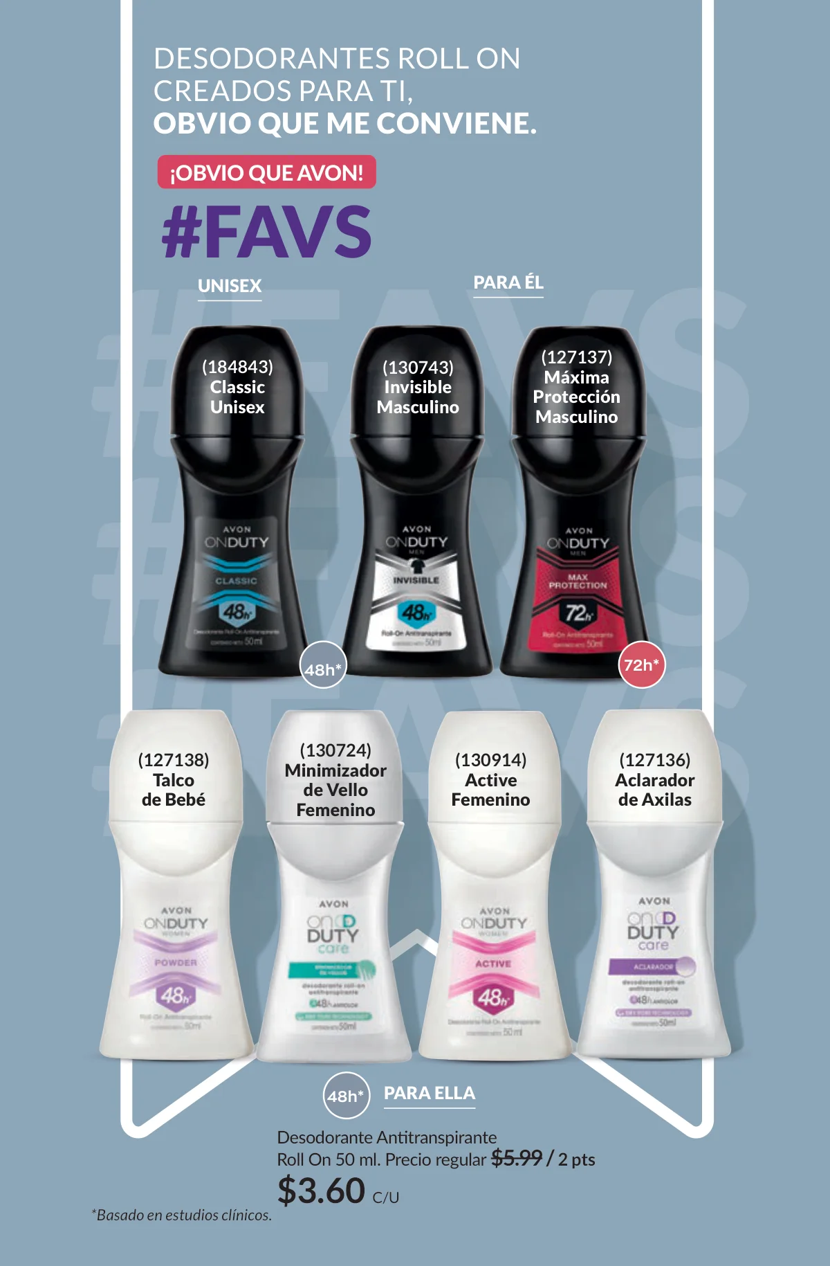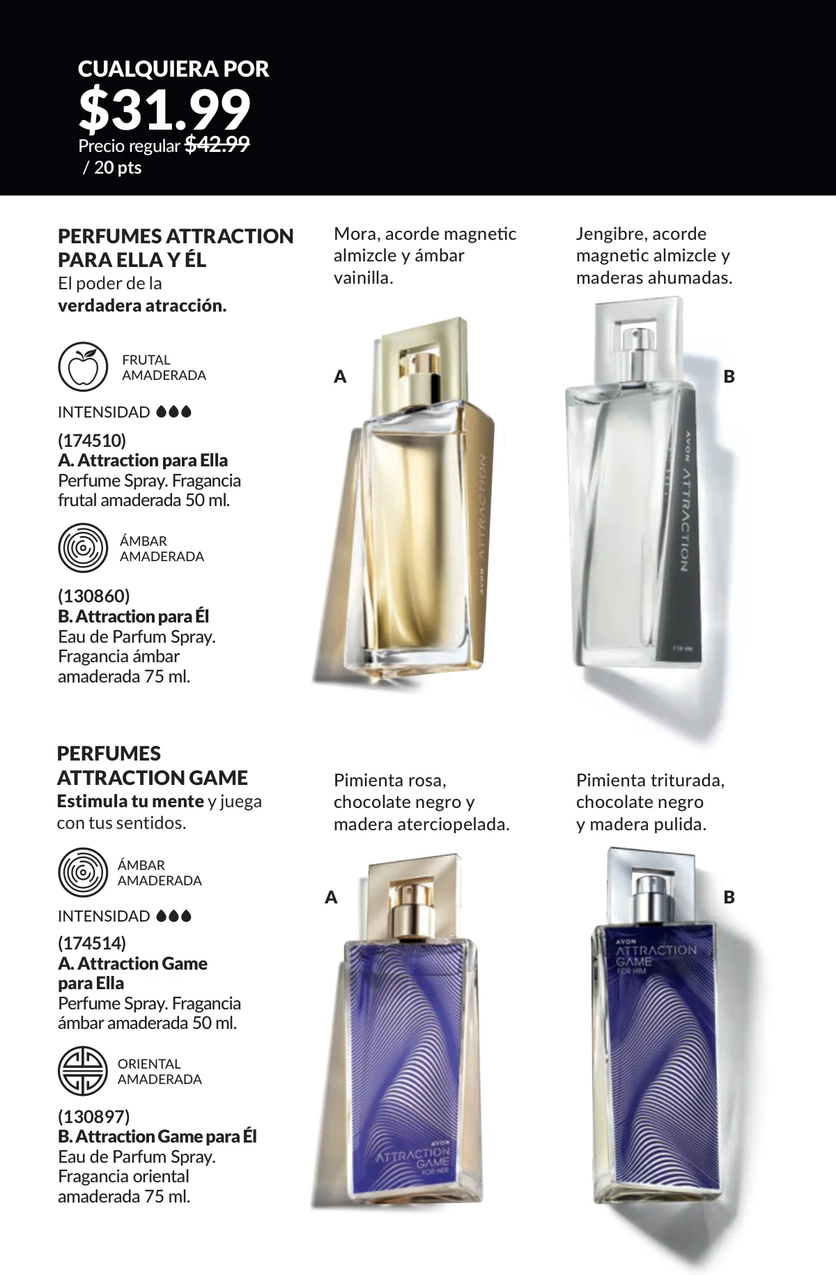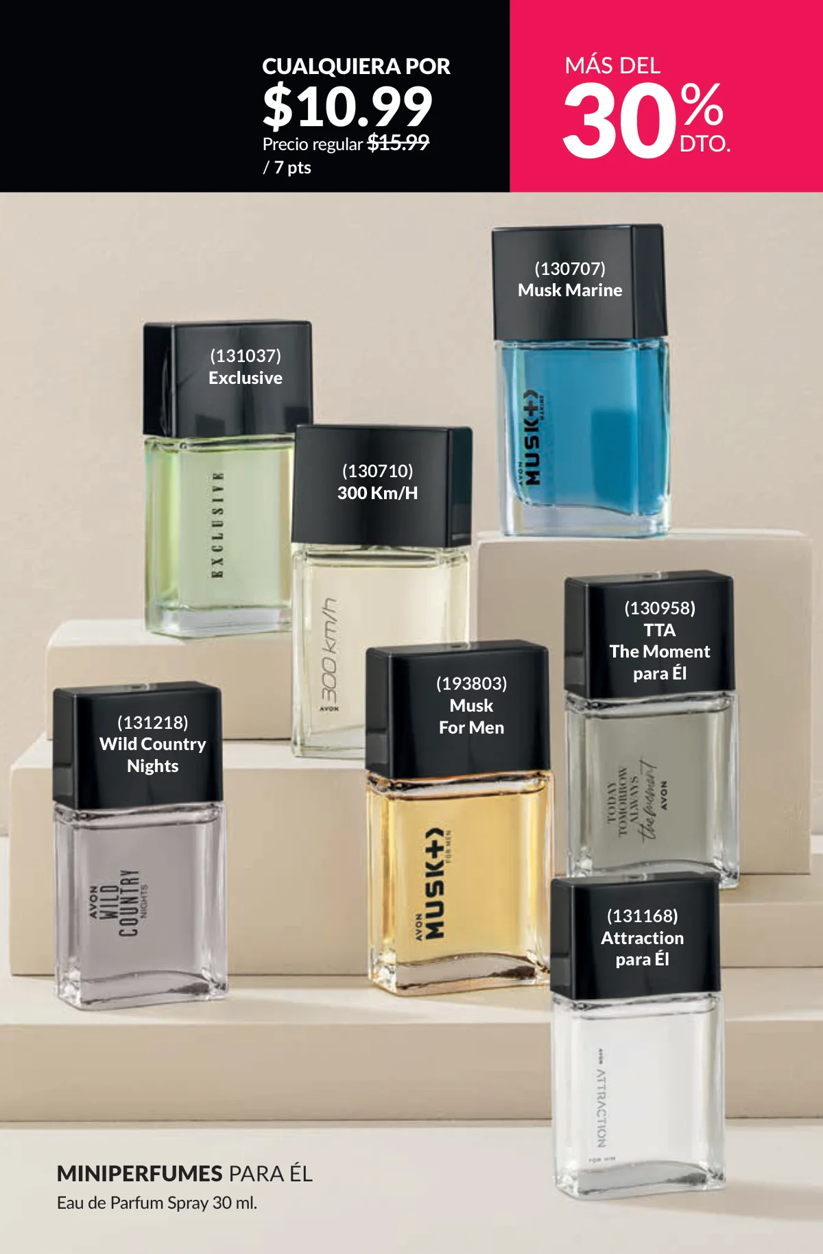 En este mes, las fragancias no quedan por fuera de las promociones de esta Avon campaña 1 2026. Hay muchas especiales para ellas/ellos: Fantasy (30%), Imari y Soft Musk, Far Away o las muy varoniles H o Musk, que las consigues con sus presentaciones de desodorantes y colonias.