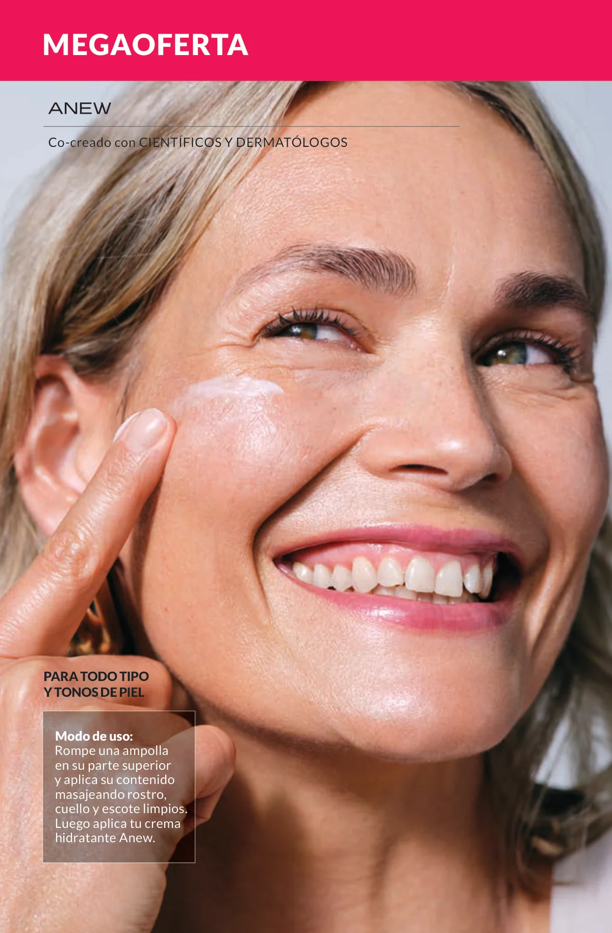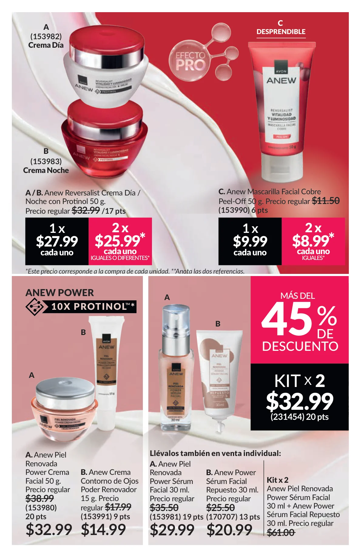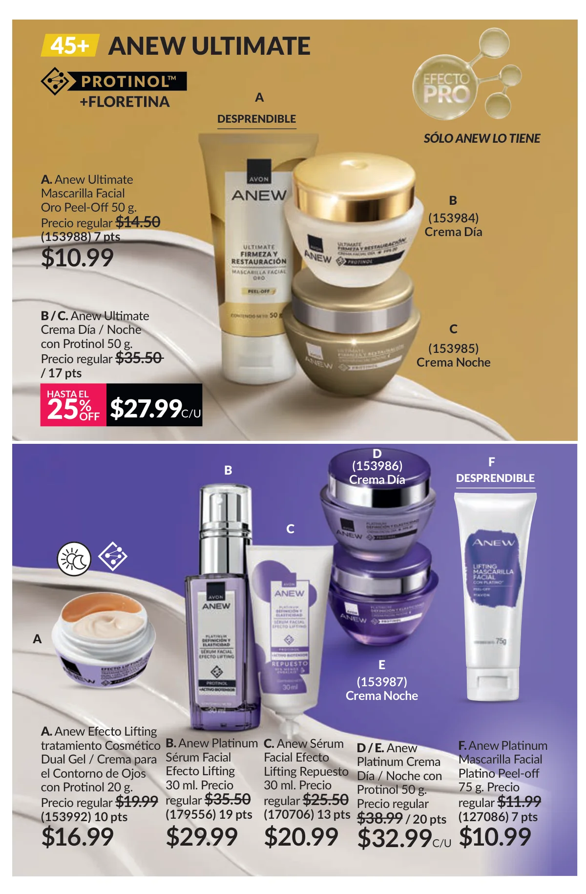 Como es costumbre, los productos Anew son la representación de calidad para el cuidado facial. En esta ocasión la megapromo trae los productos de aclarado de rostro, ojeras y manos, así como la línea de protección solar, la Últimate (+45) y la Platinum (+60).