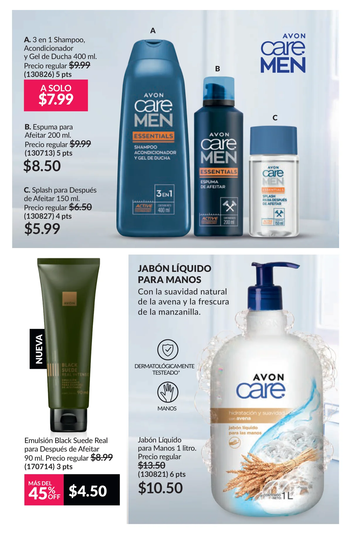 - Care Men y sus presentaciones de espuma para afeitar, shampoo o splash.