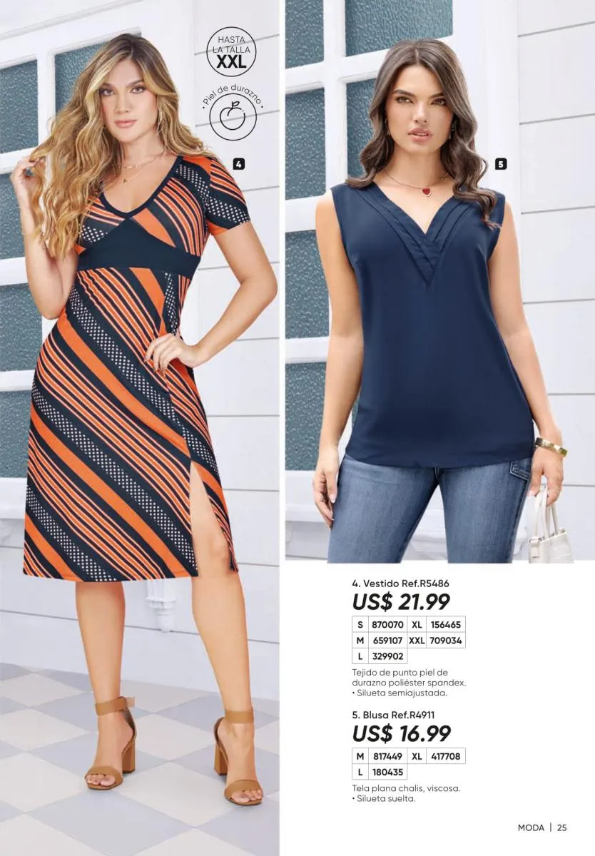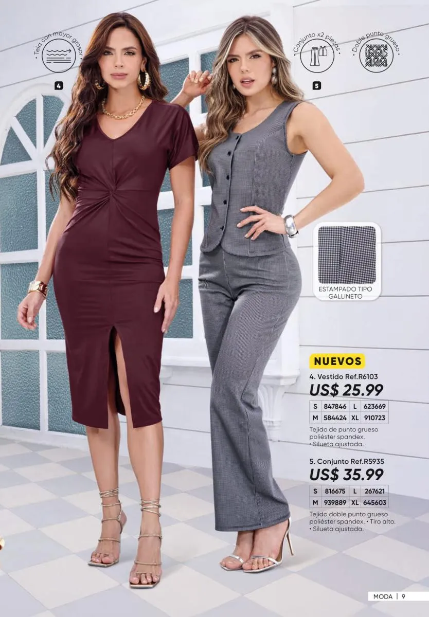 - Los patrones y estampados se imponen en este mes. Para esto puedes escoger entre la variedad de vestidos de cuadros (página 12, modelo Maida) o el estilo del vestido Clix de la colección Elektra de la página 27.