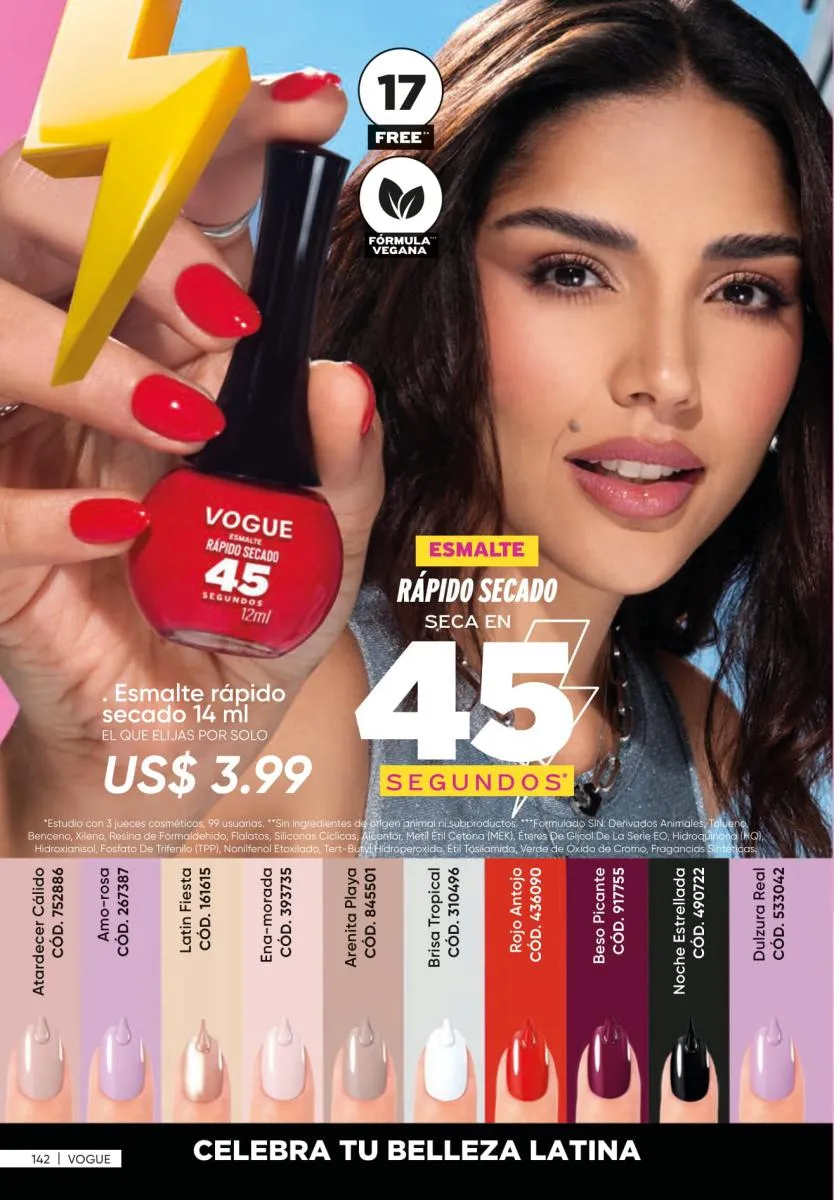 En esta catálogo Azzorti 1 2026 Ecuador puedes llevar los productos de belleza que resaltan tu belleza latina. Busca desde la página 154 los especiales de Vogue (esmalte efecto gel o las máscaras de pestañas más duraderas) a precios realmente increíbles.