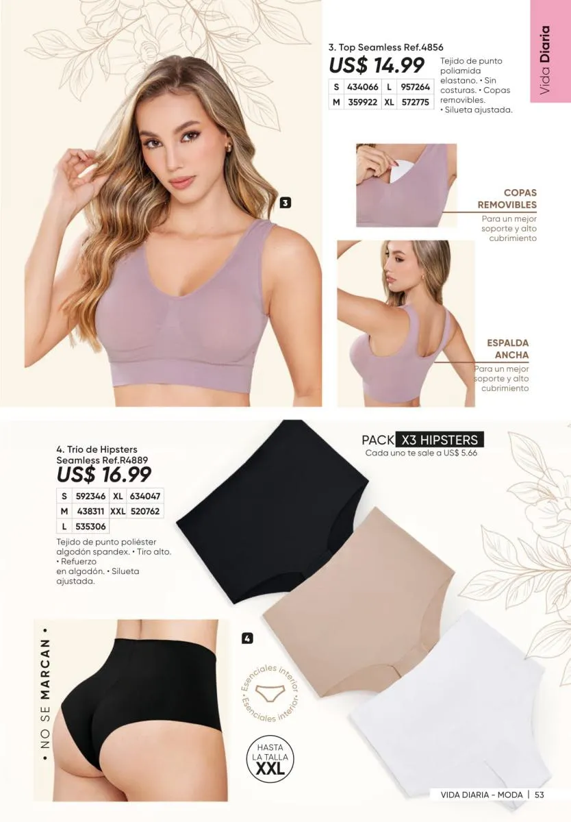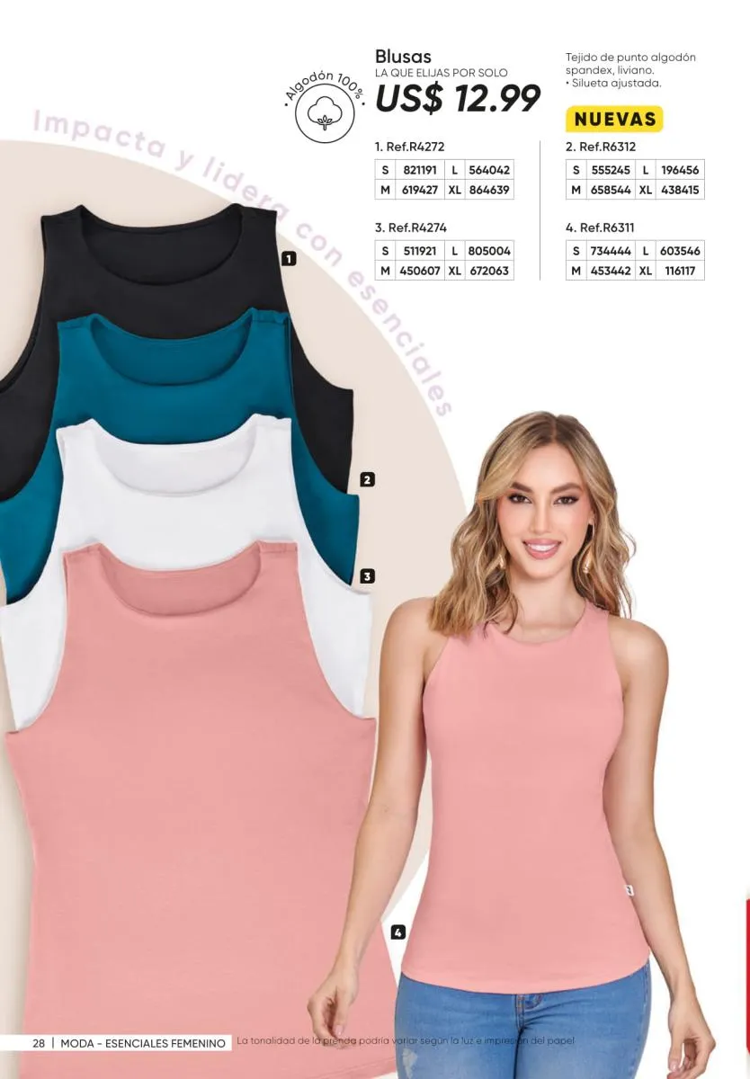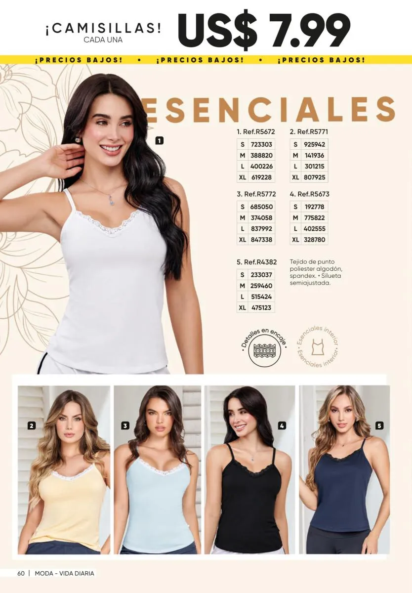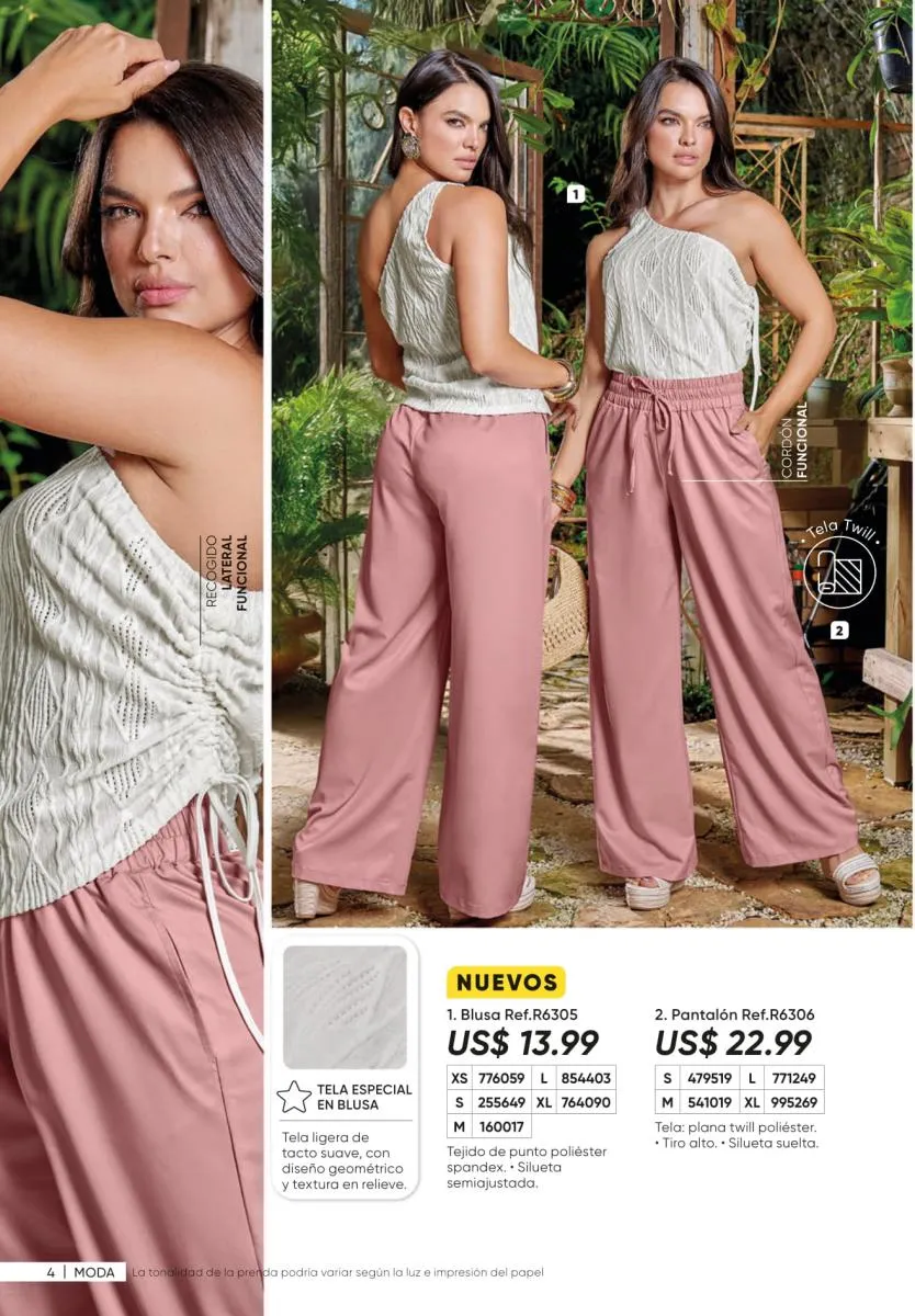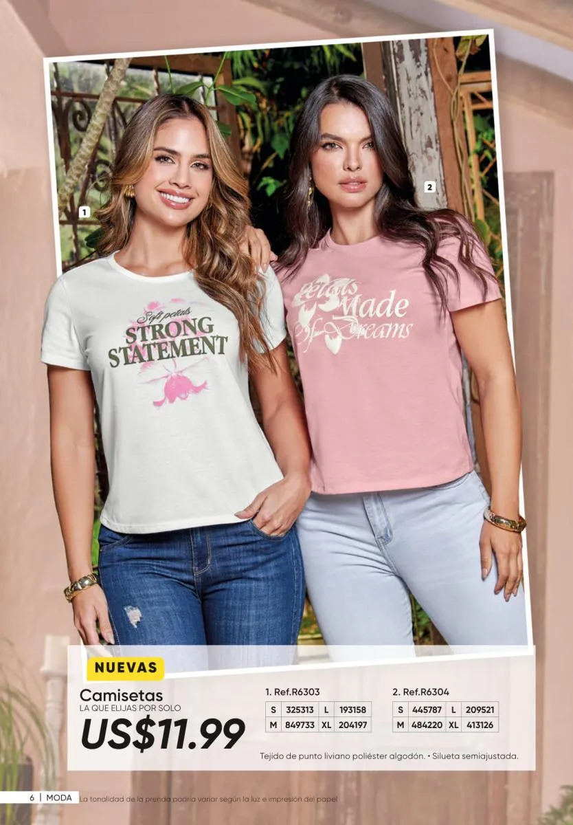 1. Estampados floreados: son una moda que siempre está presente y puedes conseguirla en vestidos como el Ligia de la página 7, en enterizos como el Marcela (pág. 11) o en una variedad de blusas.