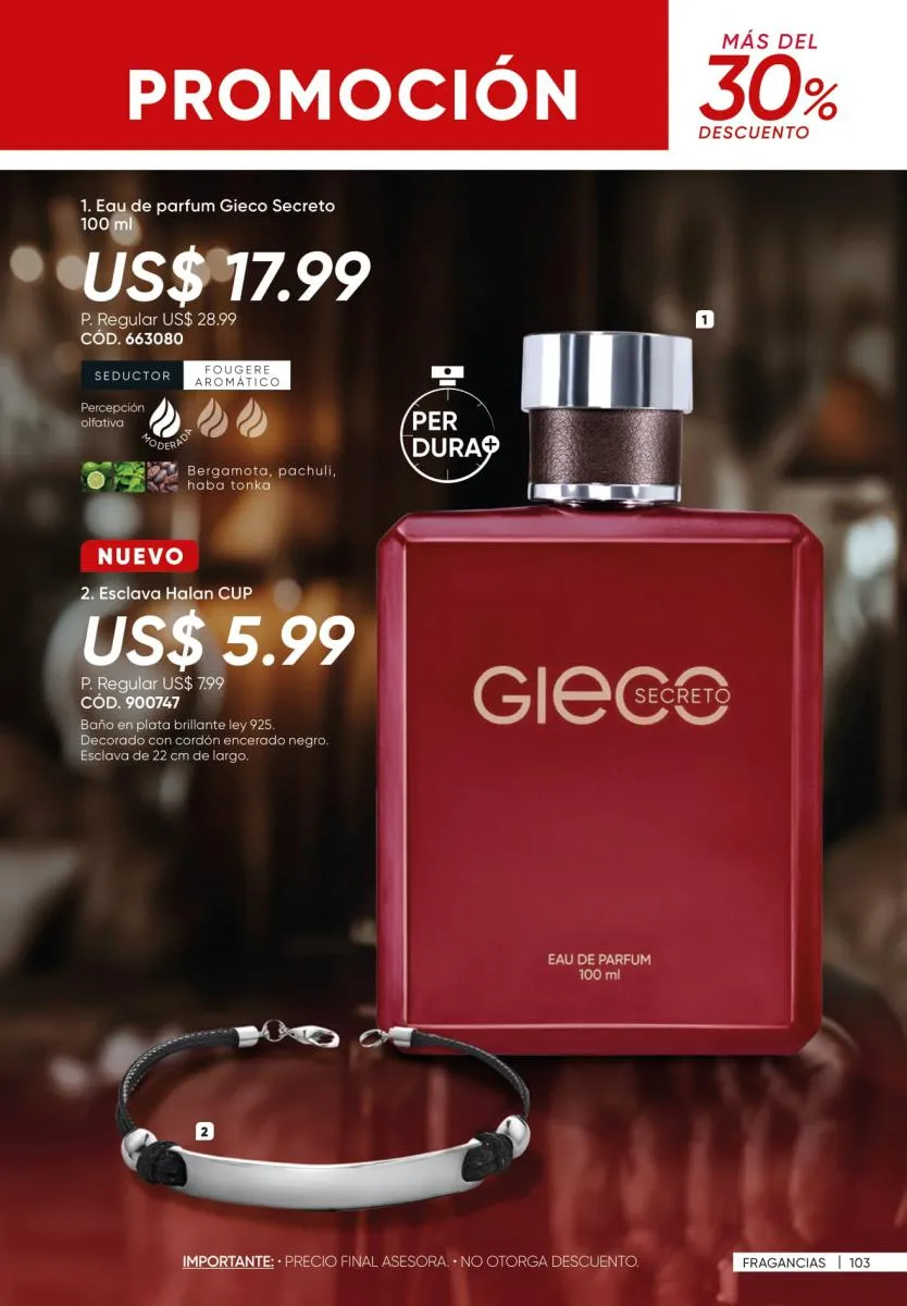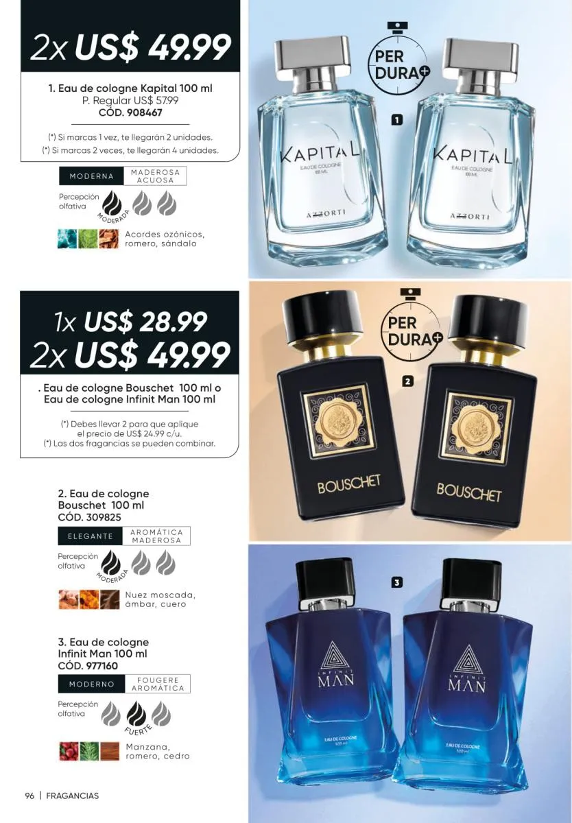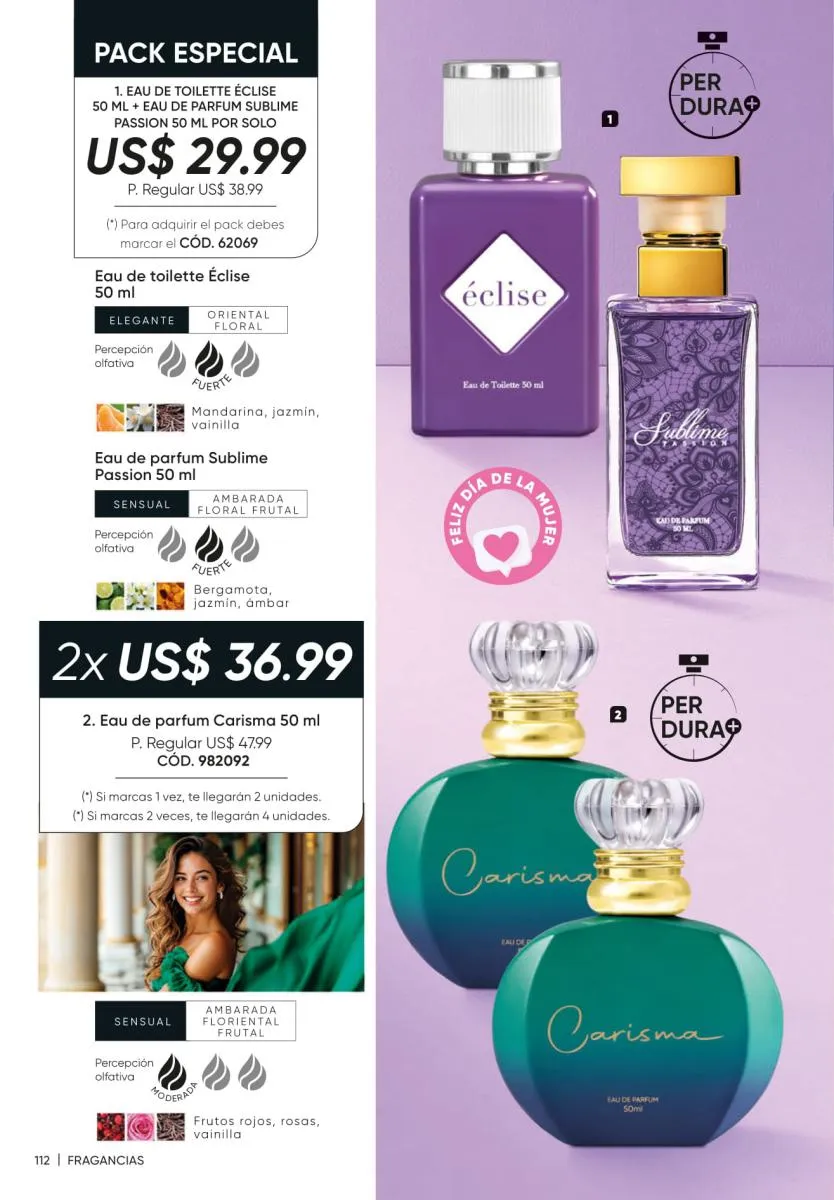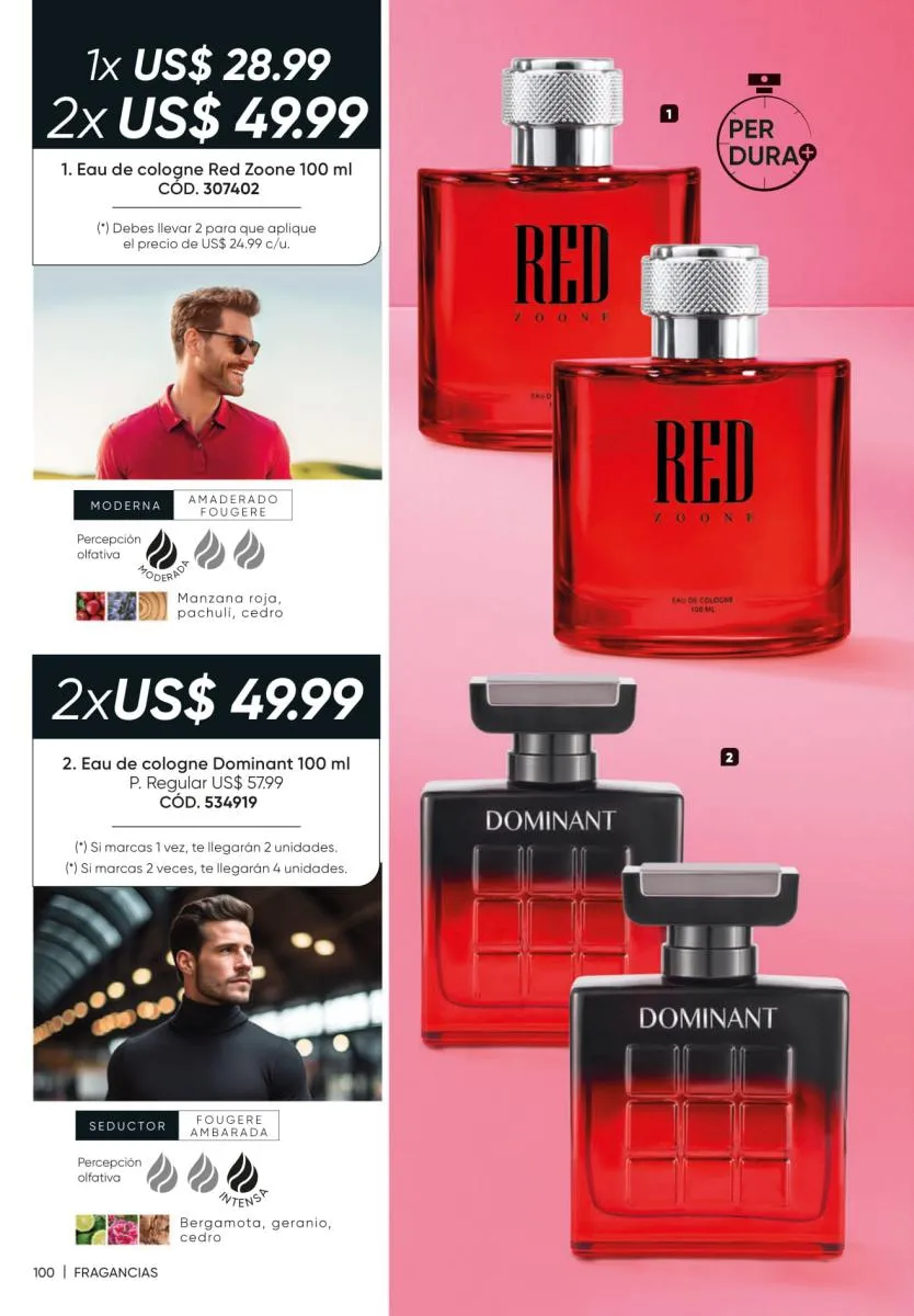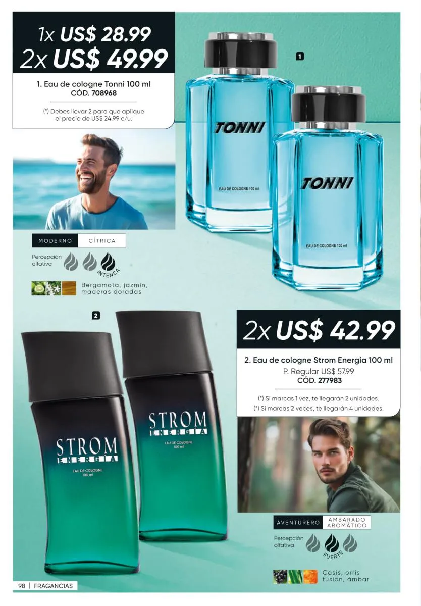 • El 60% de la fragancia femenina Pure Soul y en la masculina Tonni Attraction (pág. 149).