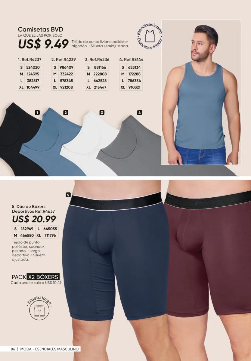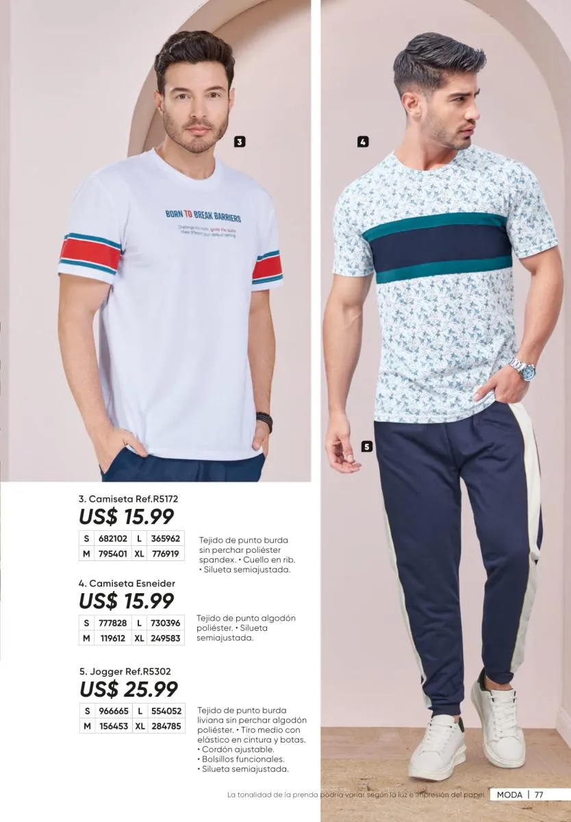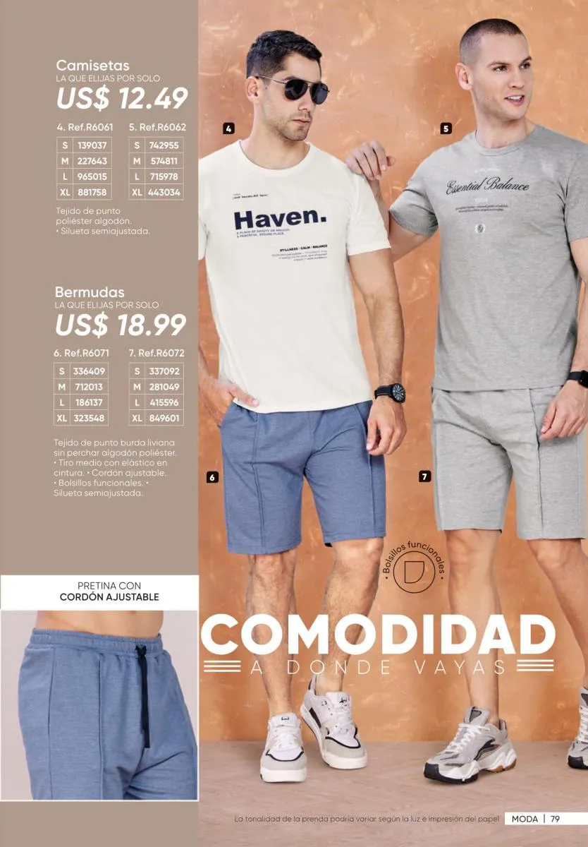 3. Colores neutros: que tienes presente en diversidad de piezas como la camiseta y bermuda de caballero de la página 63.