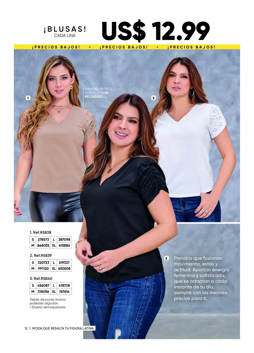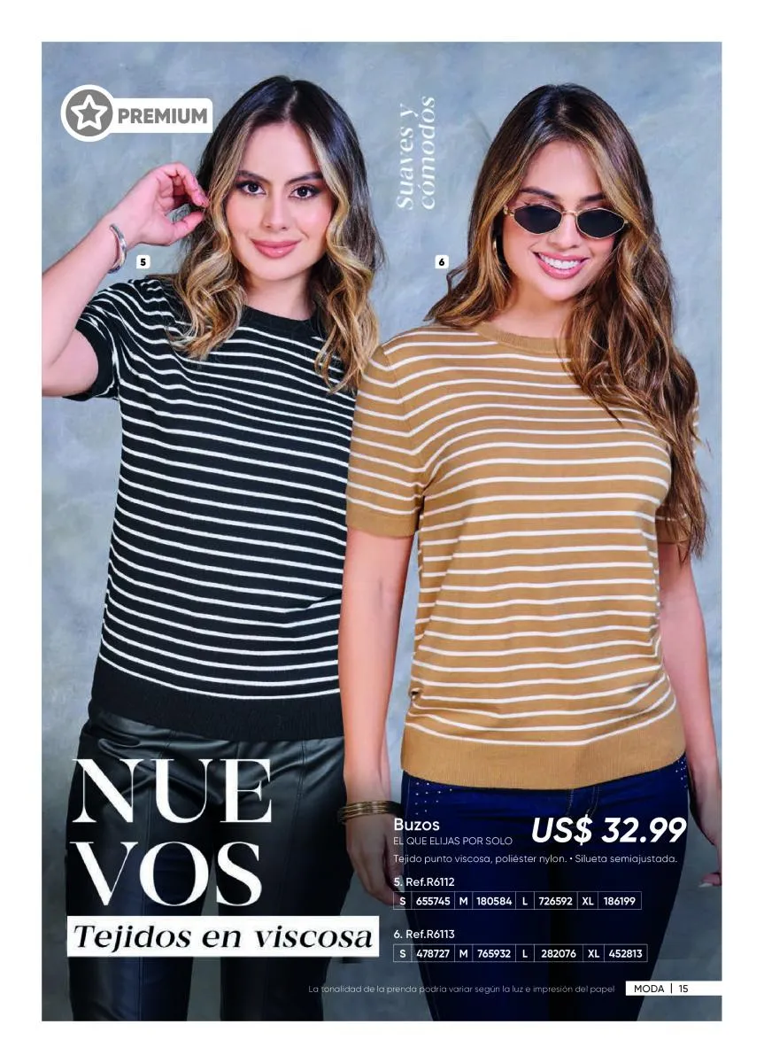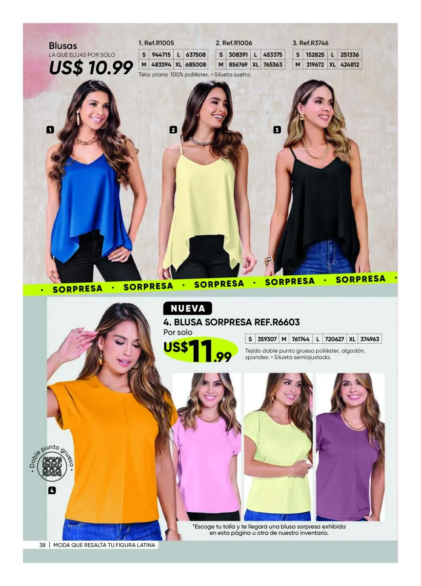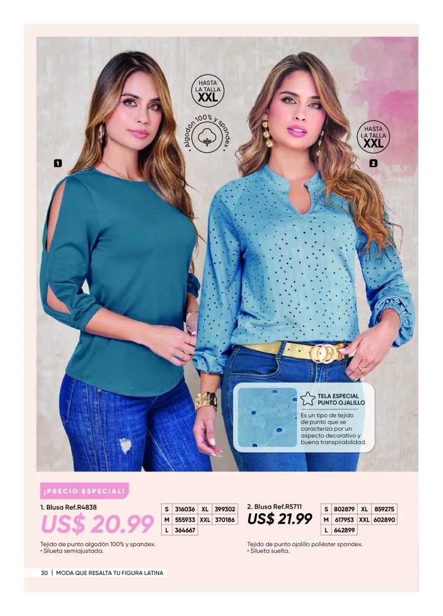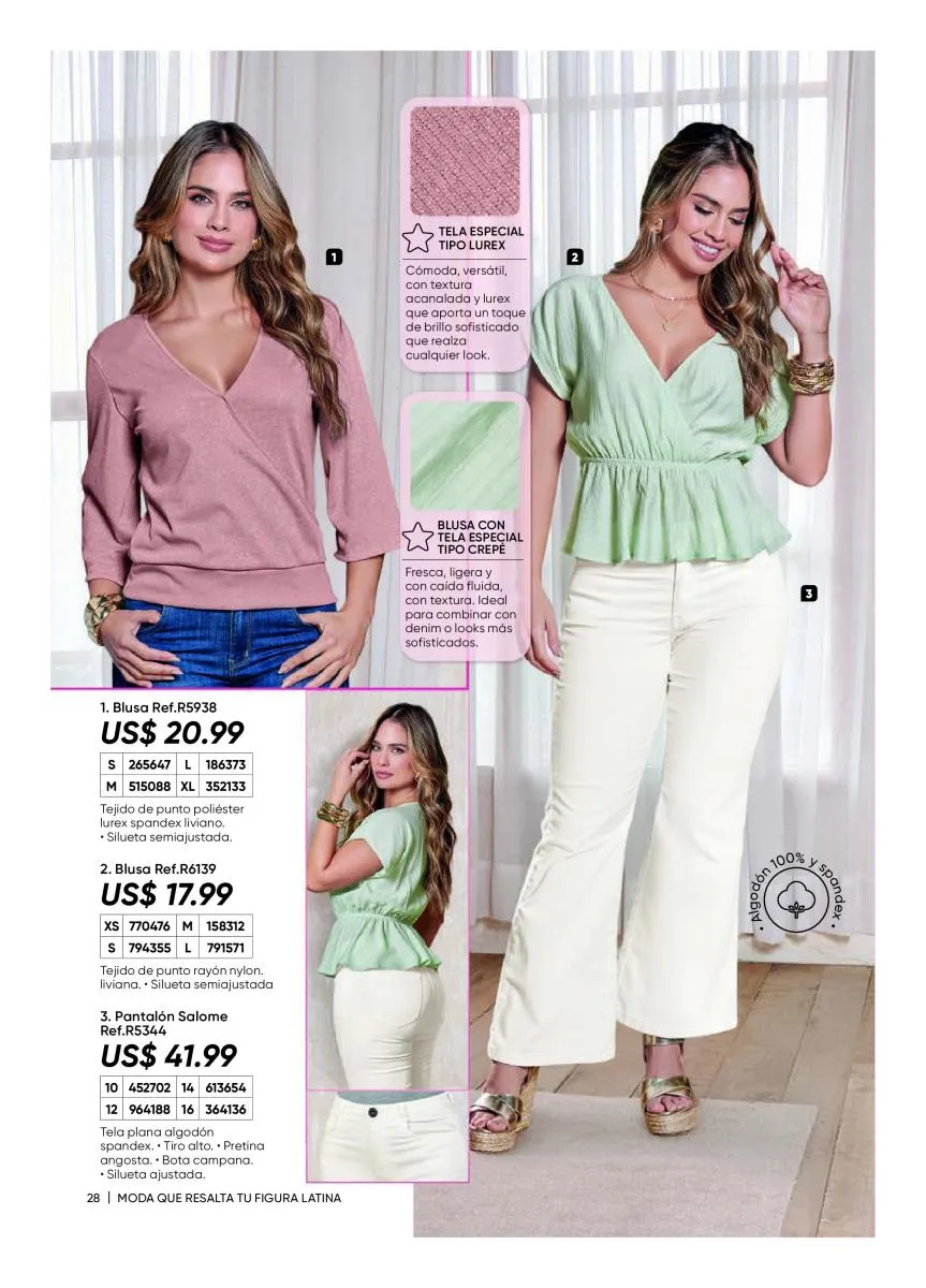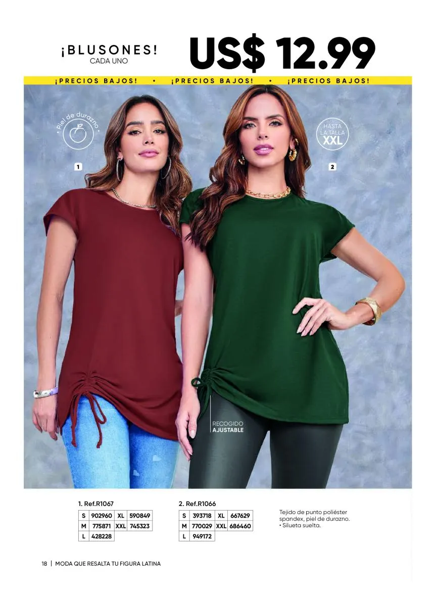 - Las blusas “Obsi” y “Marín” de la página 4 traen estampados muy adecuados para salidas a toques y fiestas.