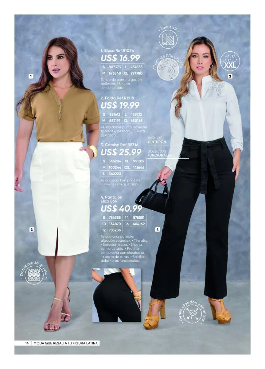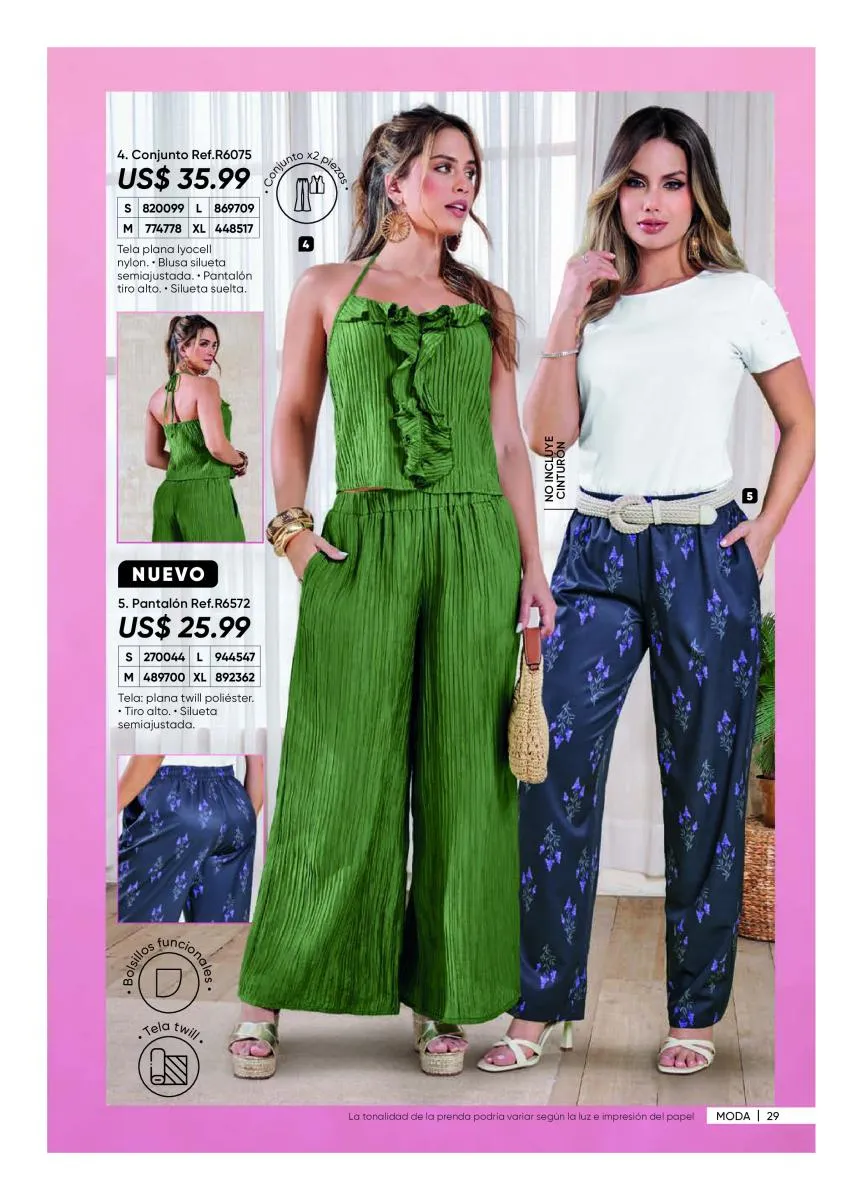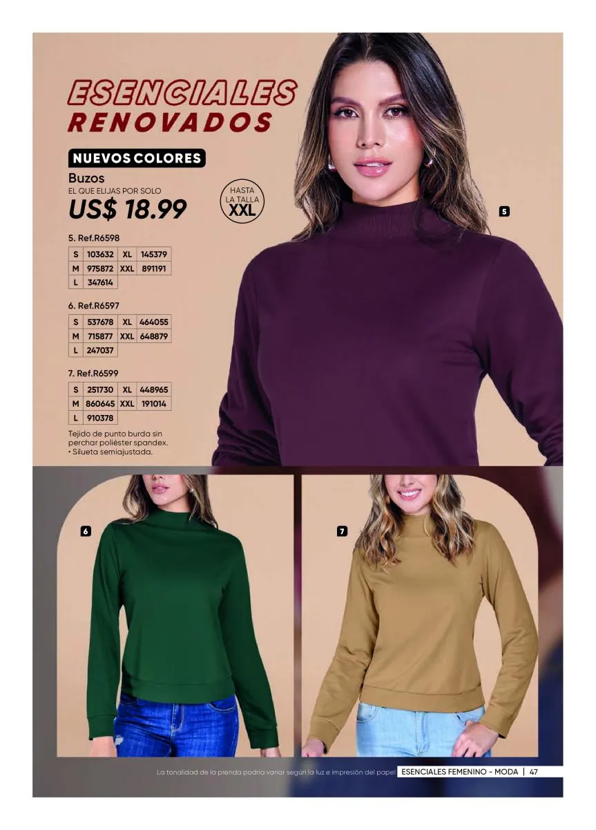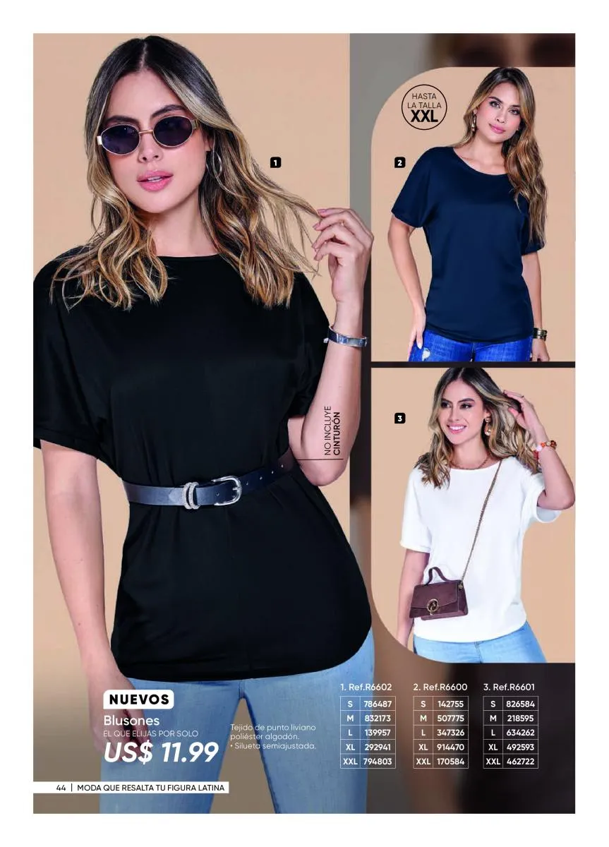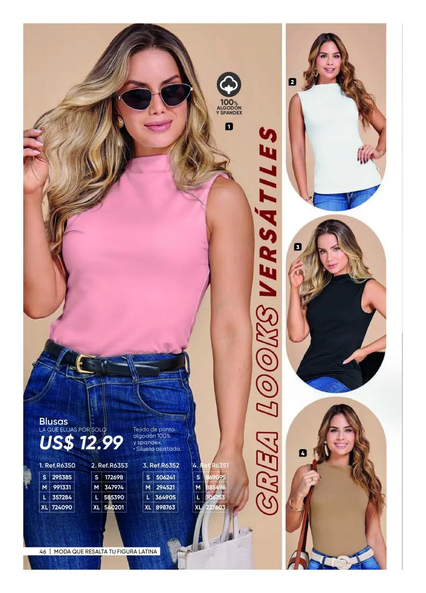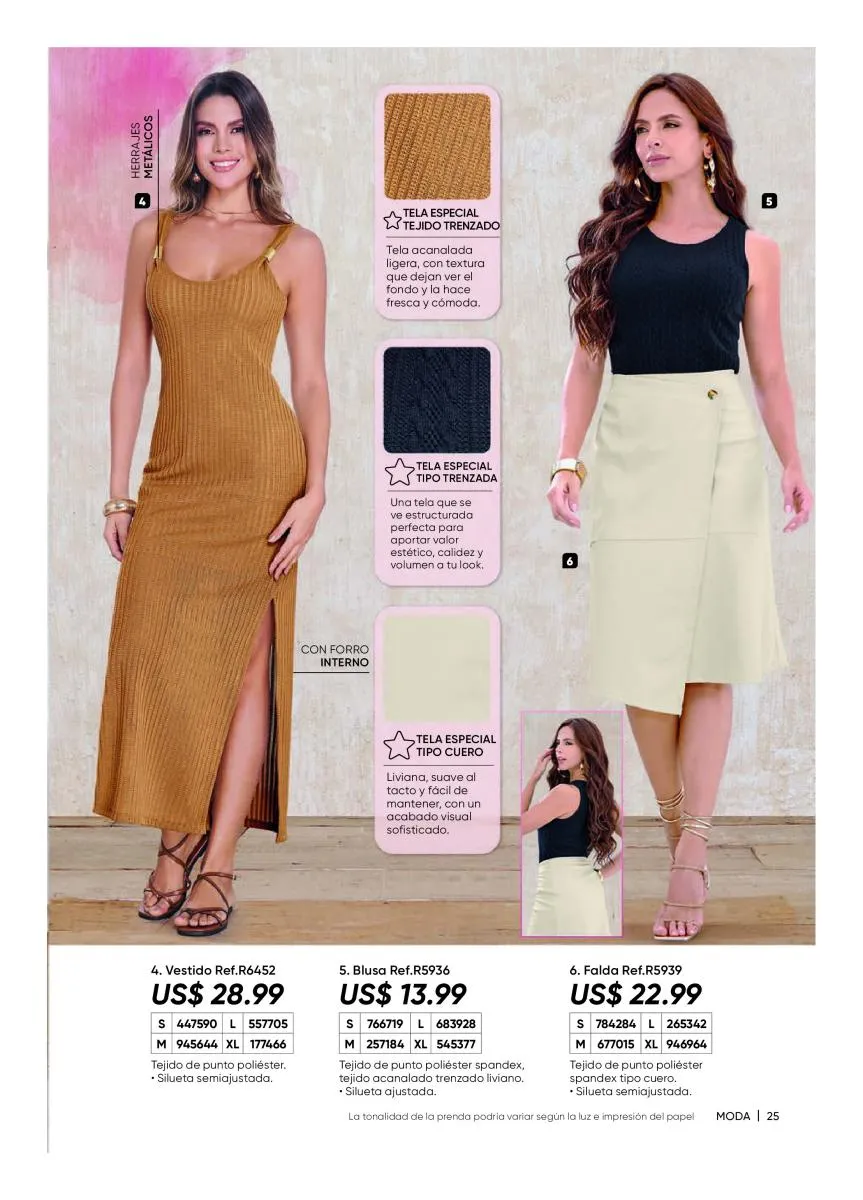 - Las blusas “Obsi” y “Marín” de la página 4 traen estampados muy adecuados para salidas a toques y fiestas.