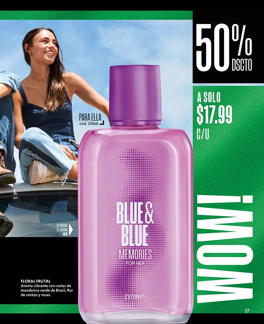 - Para ella te brindamos la exclusiva Blue & Blue For Her, genera una explosión de esencias frutales con aroma y frescura de los frutos rojos con frescas notas de fresa y hojas de violeta. Pag 19.