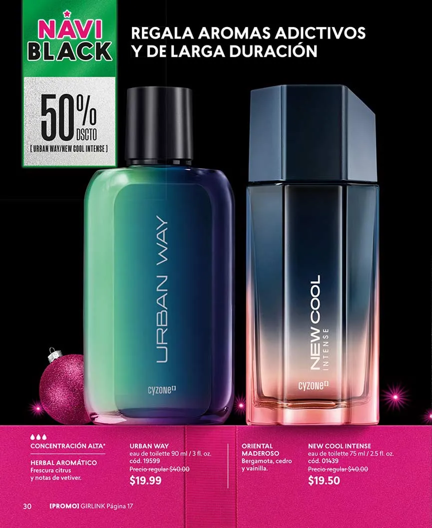 Disfruta de exóticas y exclusivas esencias afrodisíacas que despierten esa sensualidad latente y desprenden seguridad, y más en esta temporada de navidad para terminar el año de la mejor manera y con los mejores ánimos en esta catálogo Cyzone 17 2025 Ecuador.