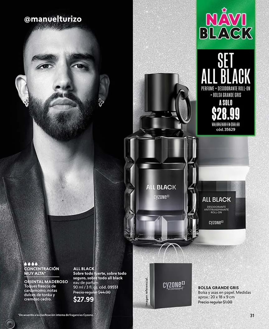 - Intensidad y poder en un solo paquete con el nuevo Set Sweet Black Intense: Fragancia + Labial + Delineador + Bolsa Grande. Pag 7.