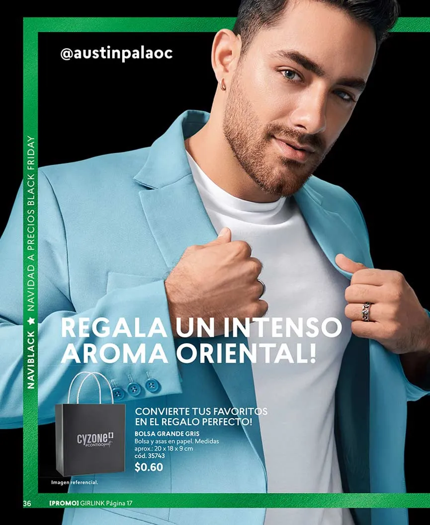 No solo para ti tenemos exclusividad, ahora puedes regalarle a él también lo mejor en aromas y artículos para la higiene y el cuidado diario que lo llenarán de vigor y confianza a donde sea que vaya, así que no pierdas tiempo y echa un vistazo al Cyzone campaña 17 2025 donde encontraras variedad de fragancias para lograr que ambos luzcan y se sientan fenomenales.