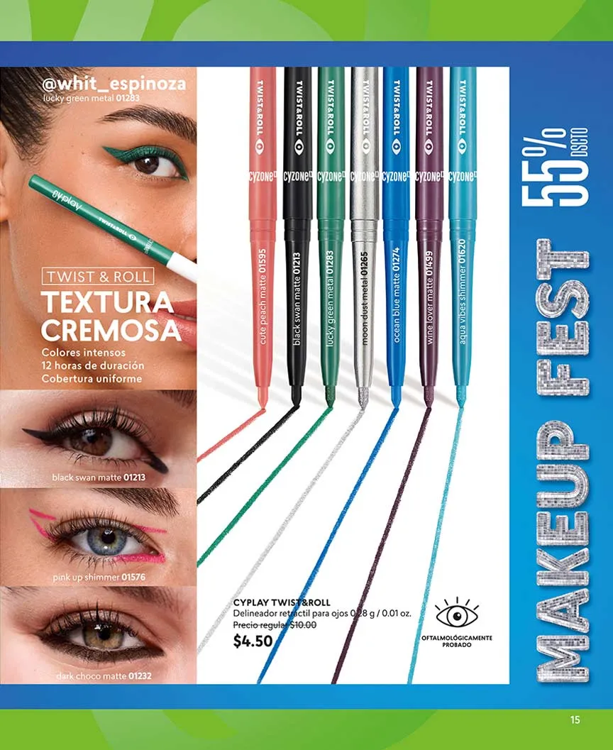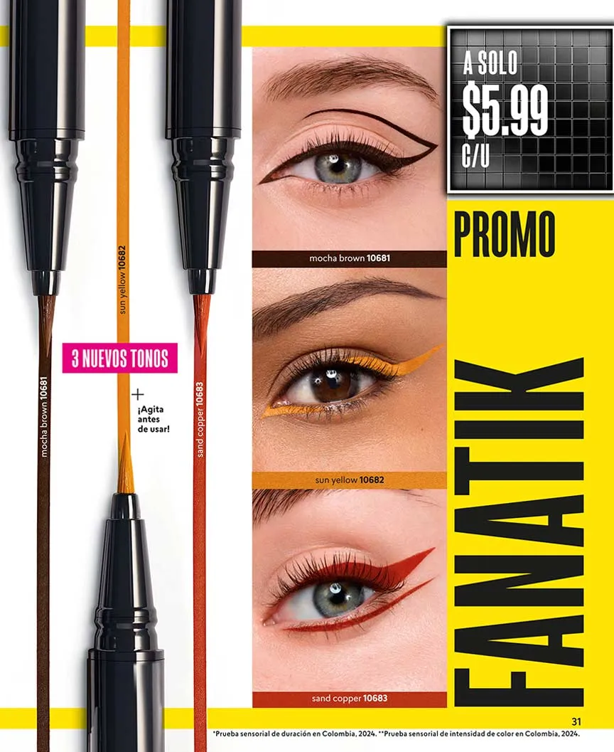 Encuentra disponible en el catálogo Cyzone 4 2026 Ecuador una colección de delineadores en colores clásico y brillantes ideales para un look moderno y vanguardista.