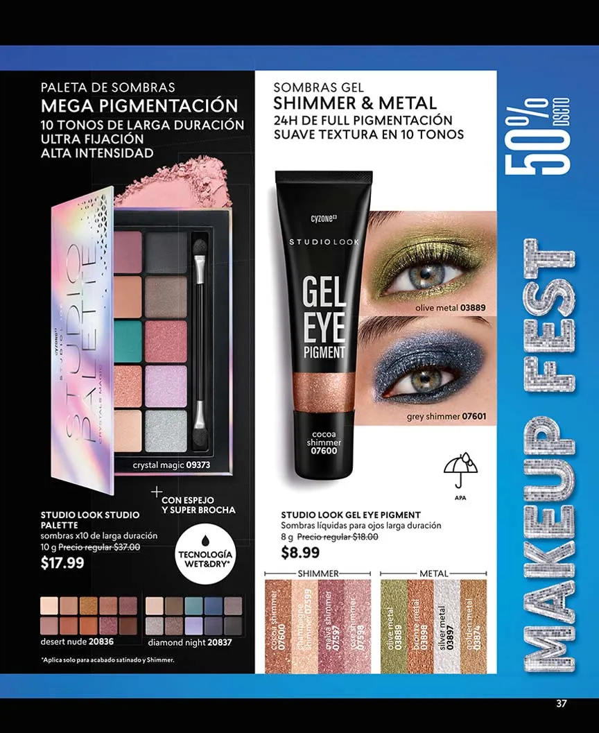 Descubre la variedad de sombras que te ofrecemos en el Cyzone campaña 4 2026. Diferentes texturas y tonalidades, que se adaptan perfectamente a tu estilo de vida. Anímate a elaborar nuevos Makeup con pigmentos intensos que adhieren a tu piel brindándote una duración de hasta 13 horas sin necesidad de retoques.