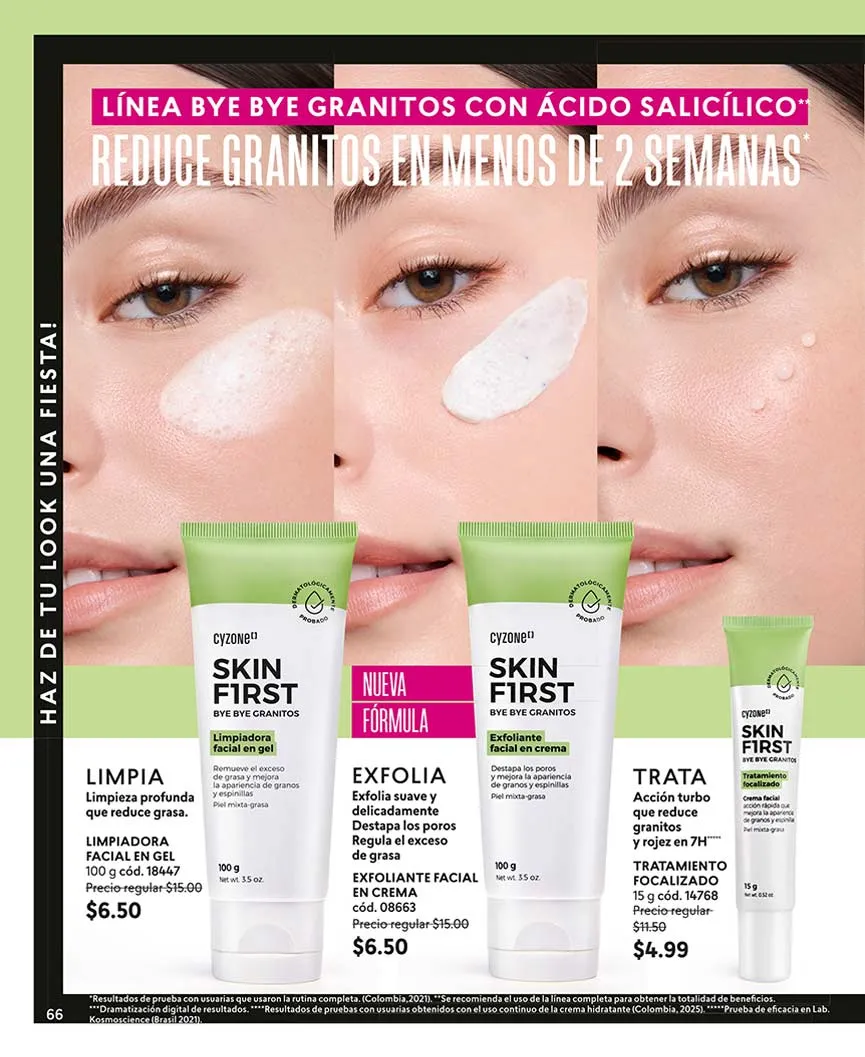 En el catálogo Cyzone campaña 4 2026 encuentras disponible la línea de cosméticos CY y Studio look la cuales fueron diseñadas exclusivamente para ti, están contigo en toda ocasión brindándote una amplia cobertura de textura suave dejando así una sensación placentera sobre tu piel en cada aplicación, además de otorgarle un efecto mate a tu rostro.