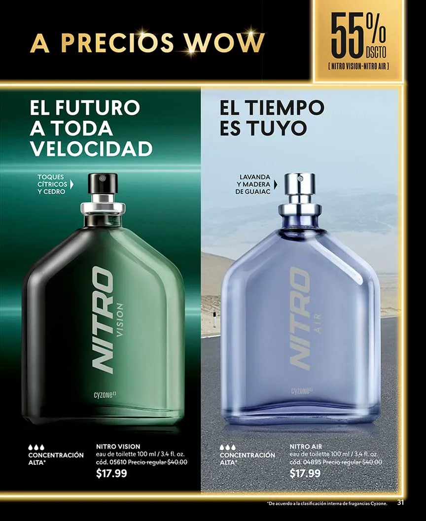 - La línea Nitro trae para ti a mitad de precio un Eau de toilette con aroma a frescas notas de lavanda y madera de 100 ml, disponible en la página 100.