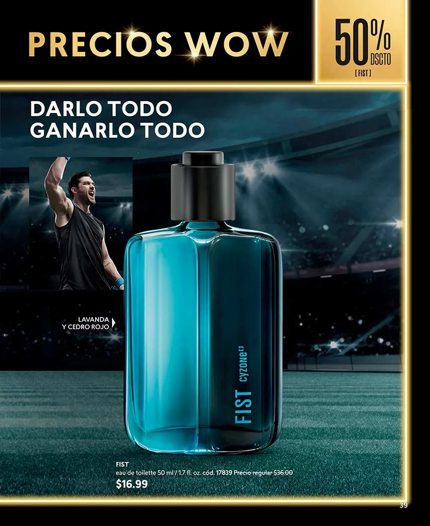 - Asegura la conquista con la combinación de las Irresistibles notas de cardamomo y cuero que te brinda Eau de toilette en su presentación Score, Oriental especiada, 50 ml. Pag 98.