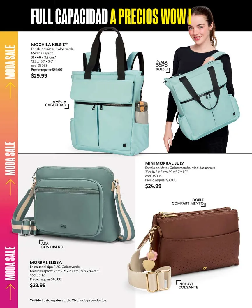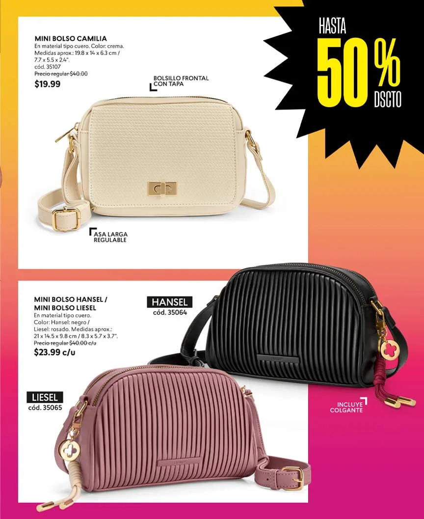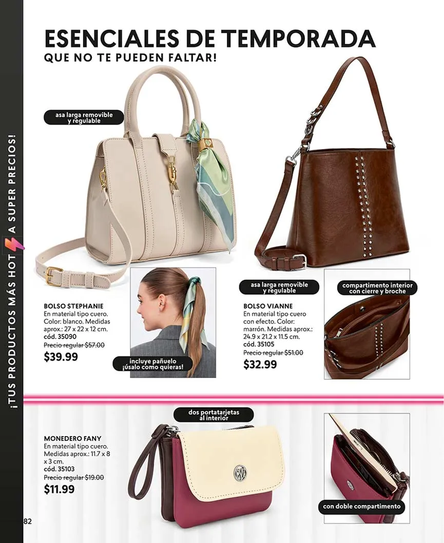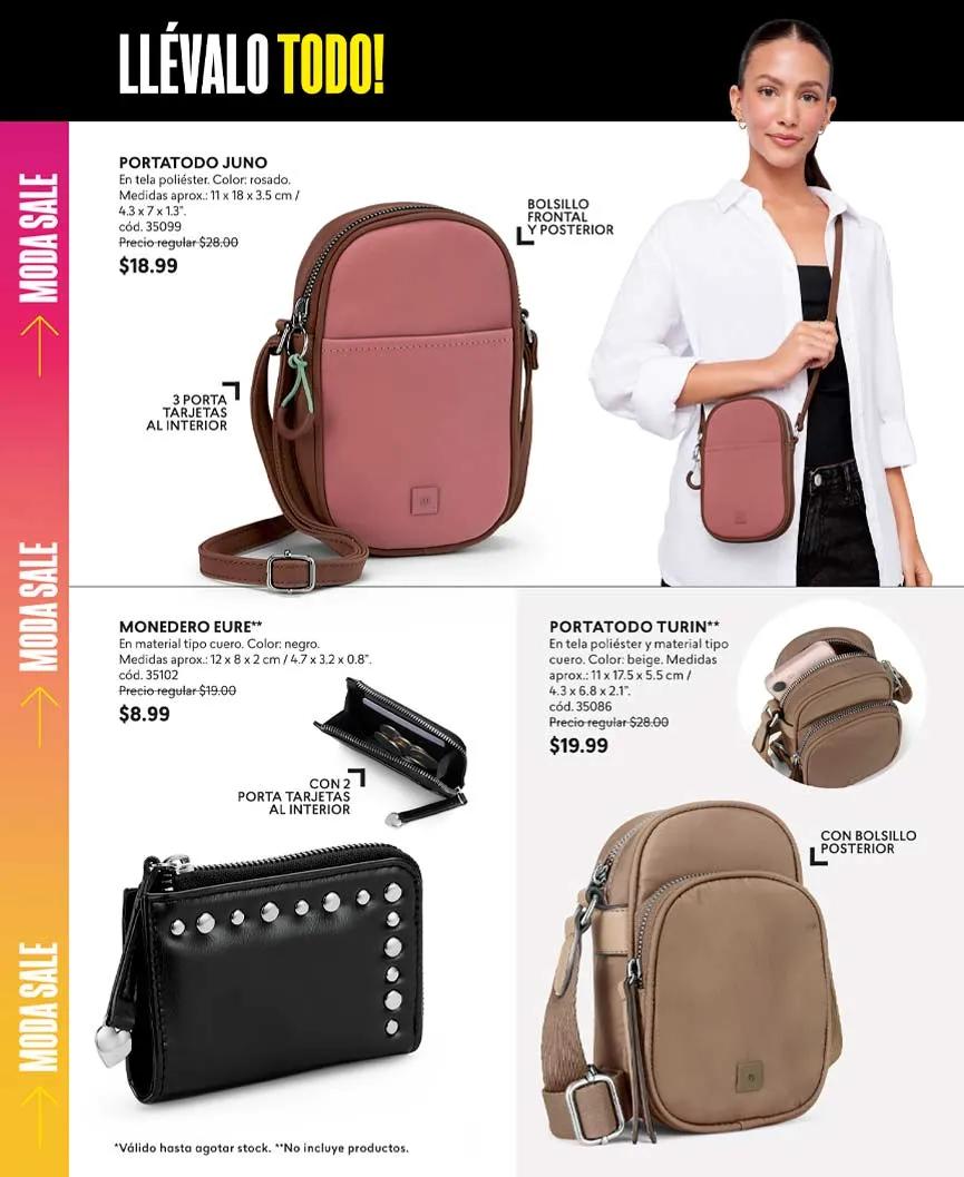 - Portatodo Asia/ Portatodo Alemania son accesorios con múltiples compartimientos, compuesta de un asa larga y corta para ofrecerte mayor comodidad. Medidas aprox: 19 x 12, 3 x 3 cm. Pag 75.