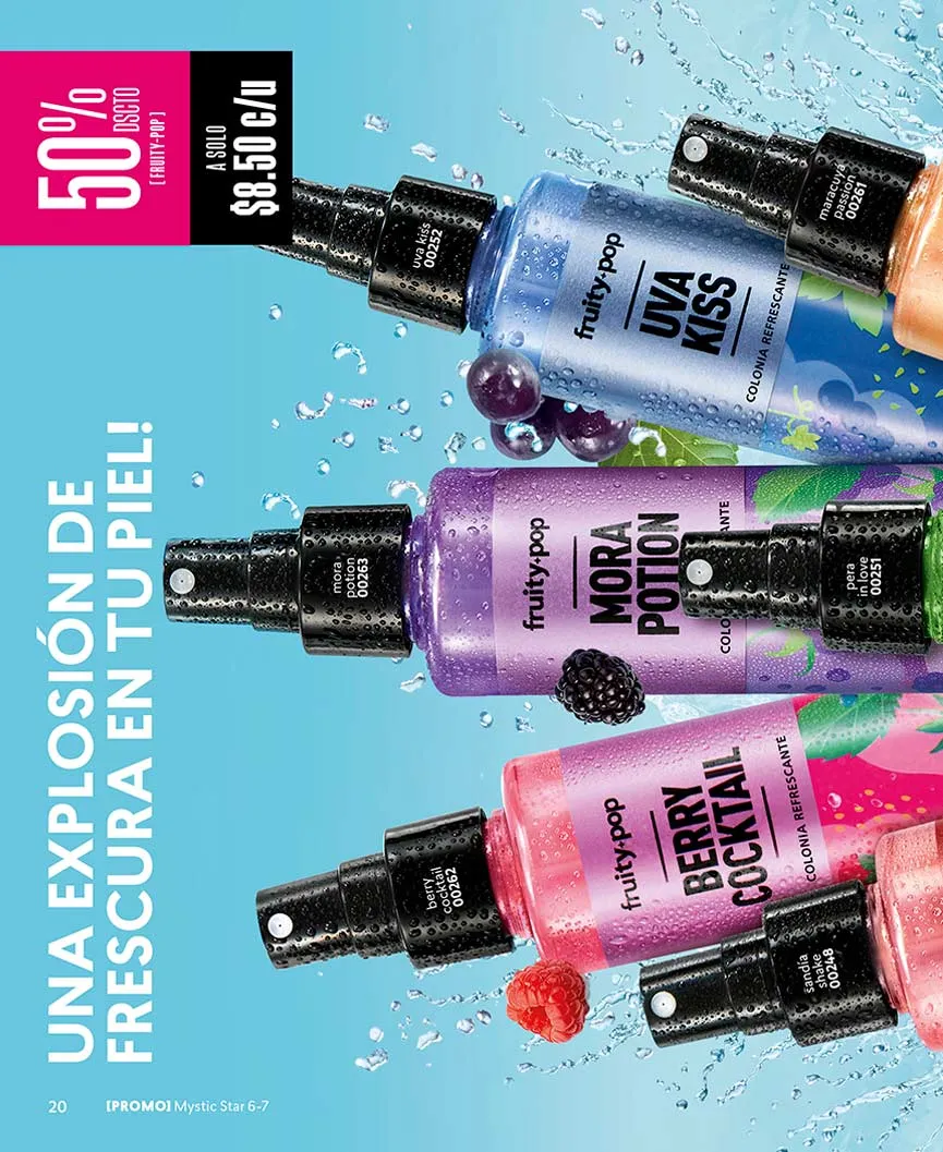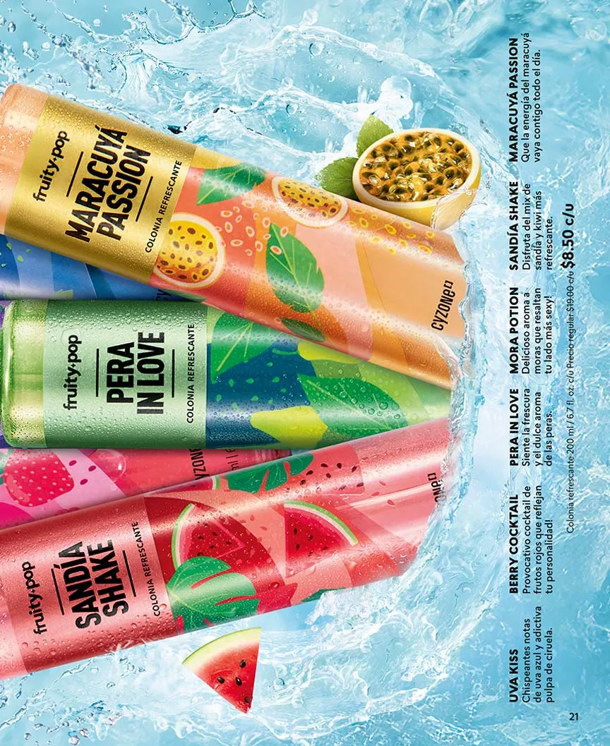 - Una combinación de extractos frutales colocados a tu disposición en la presentación de Colonias refrescantes Berrylicius, disponible en aromas:
