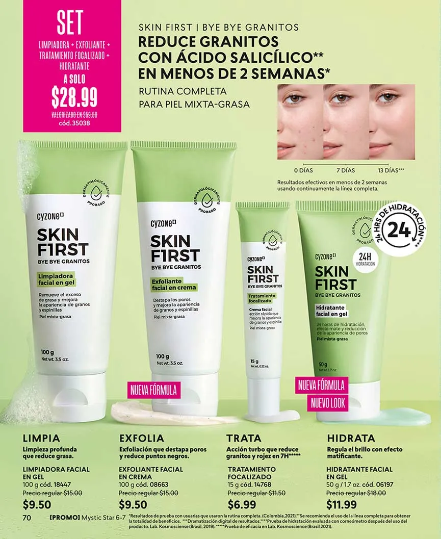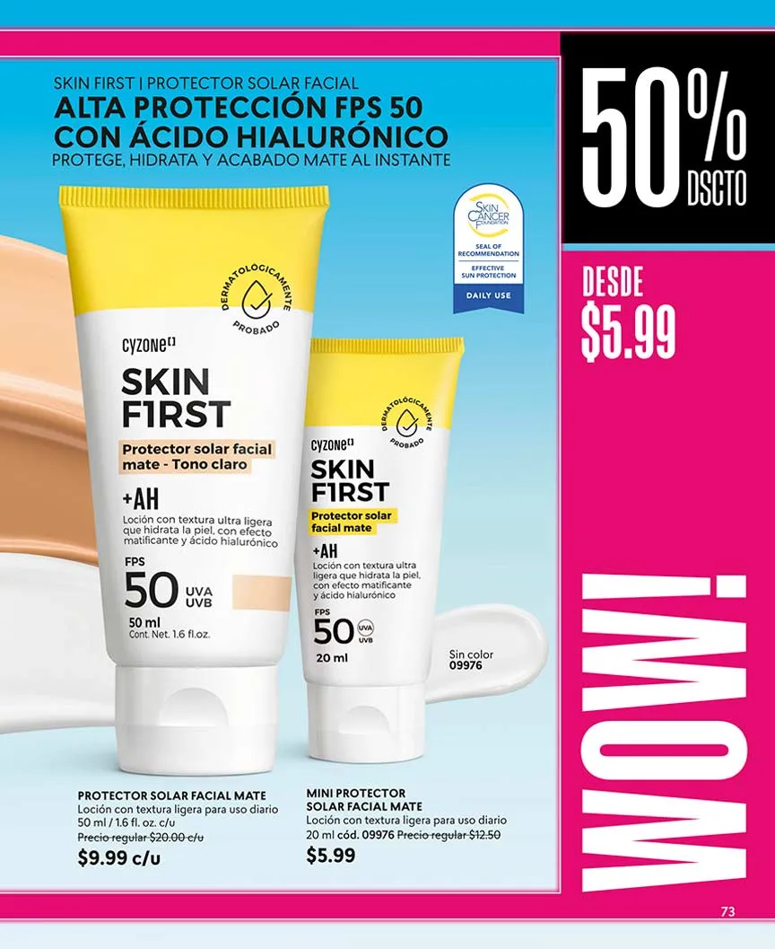En el catálogo Cyzone 9 2026 Ecuador Cuidamos la salud de tu piel, evitando los daños de agentes externos ofreciendo en todo momento productos dermatológicamente aprobados.