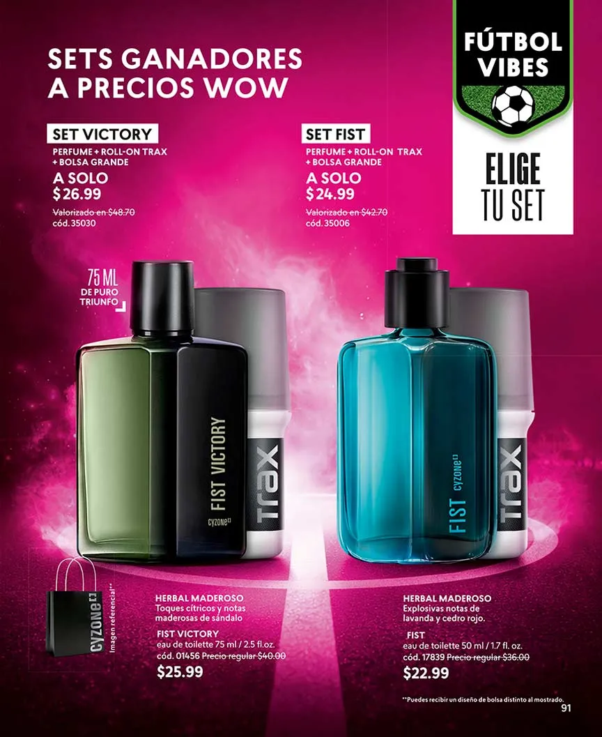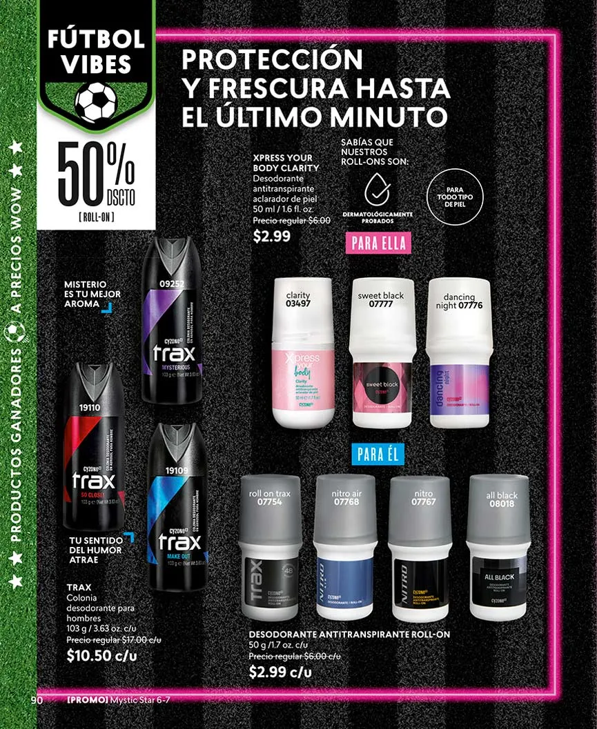 - Colonia desodorante de la línea Trax. Disfruta de sus presentaciones: So close/ Make Out/ Mysterious, 103 g. Pag 88.