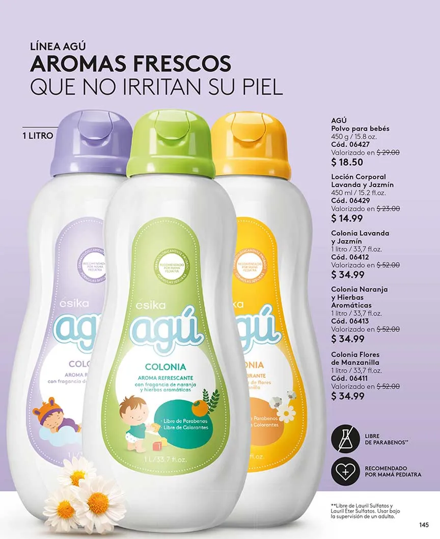- Agú de 450ml. Colonia para bebes con agradable aroma de flores de manzanilla +